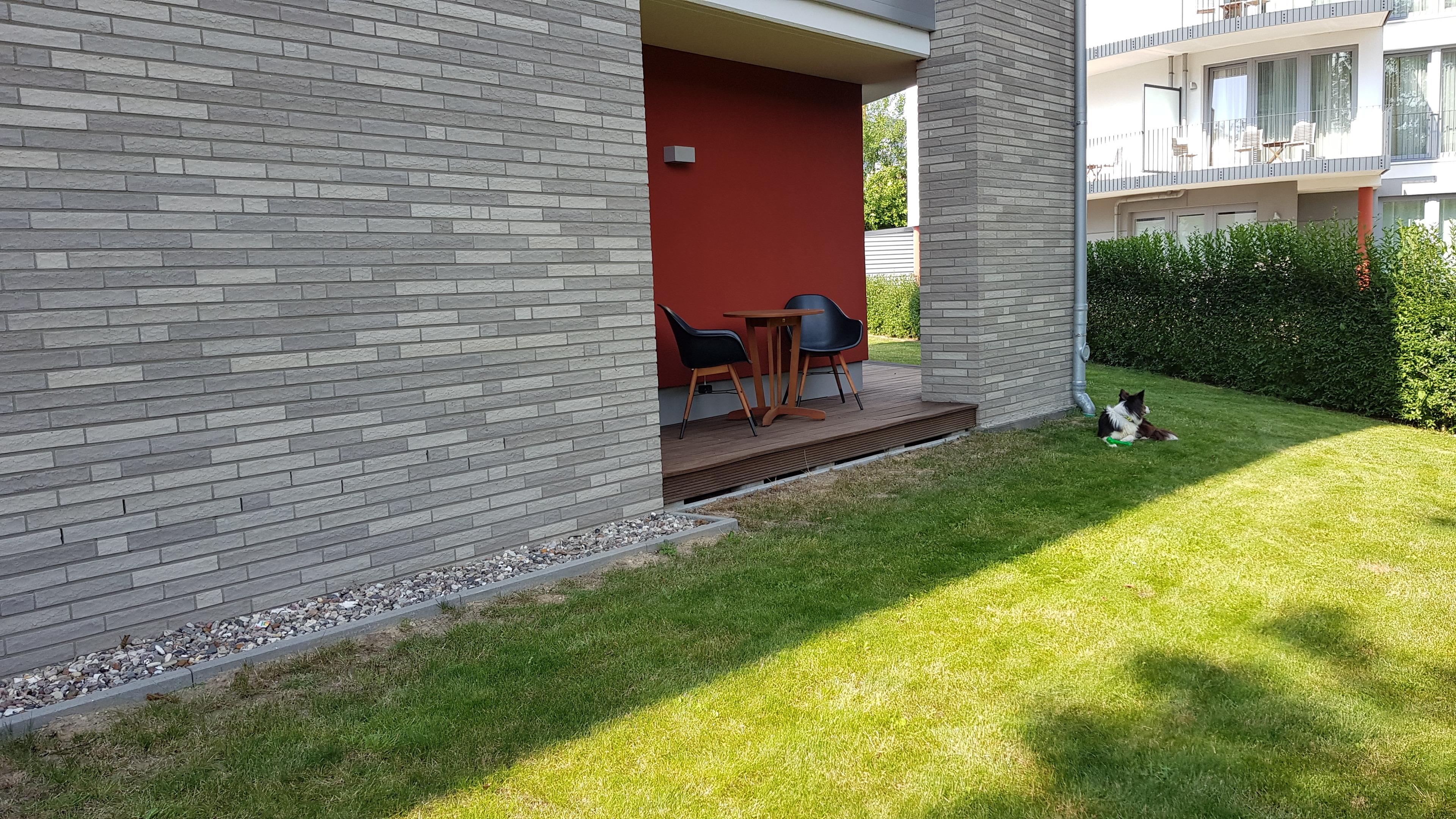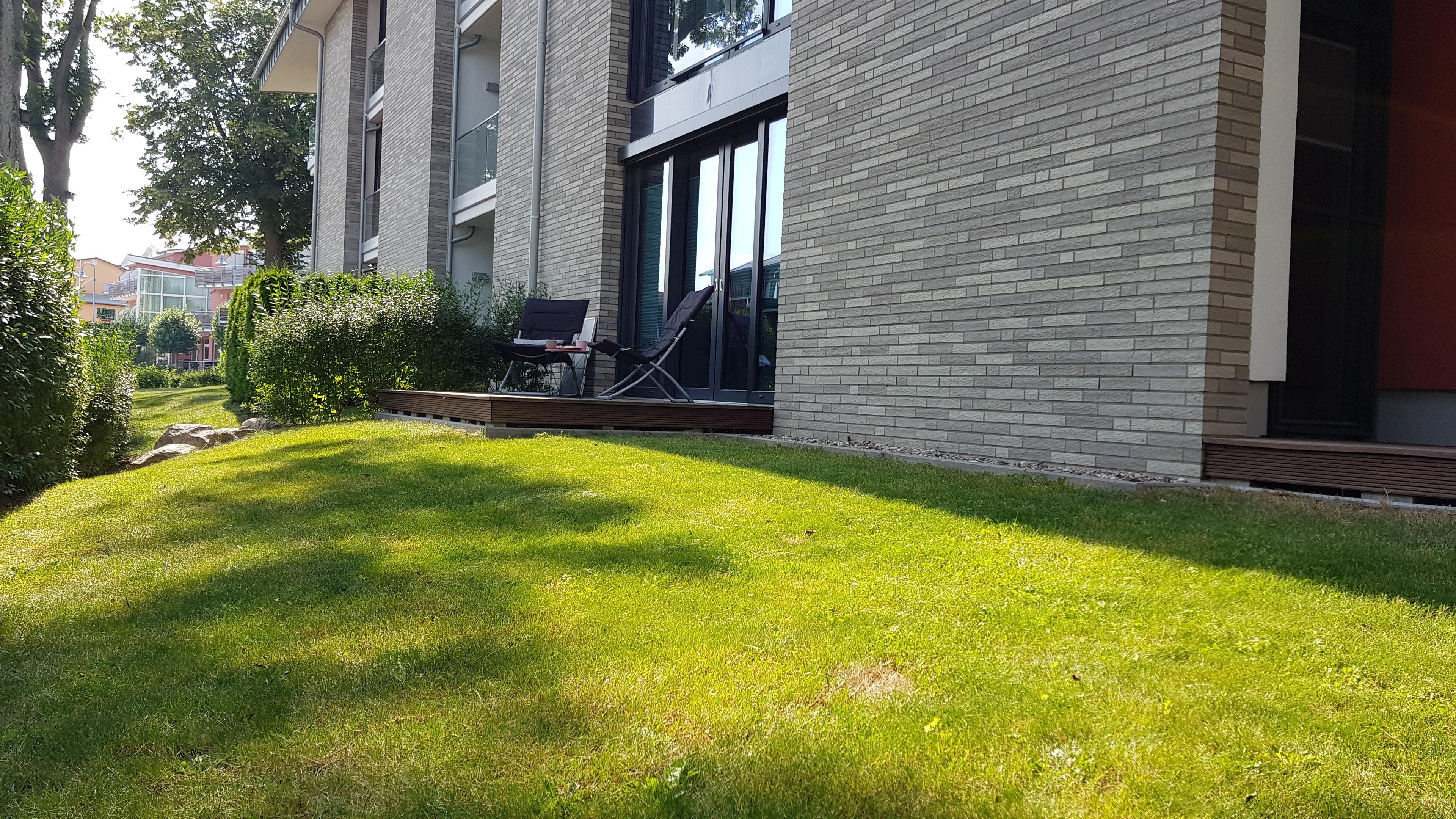 Moderne Ferienwohnung in unmittelbarer Hafennähe für 3 Personen, ebenerdig, mit zwei Terrassen in traumhafter Lage mit viel Grün in der Umgebung.