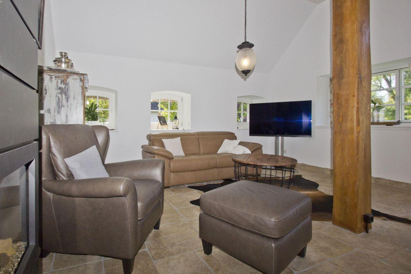 WOHNEN // Wohnraum mit Essbereich, Sitzgarnitur mit bequemer Couch, Flachbild-TV (Kabel), Gaskamin ++