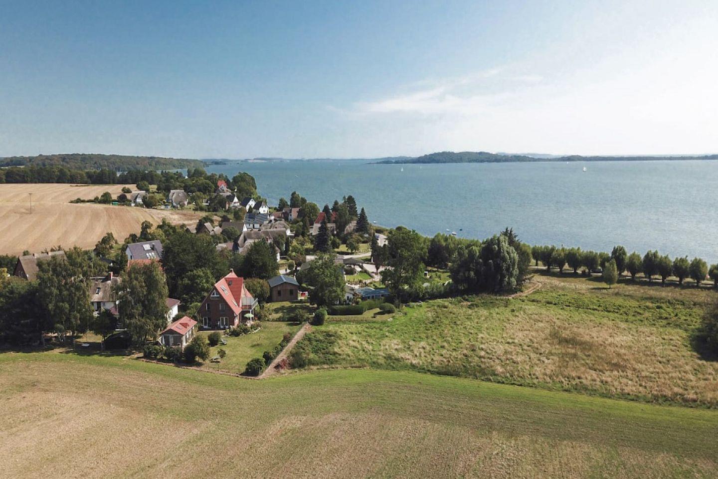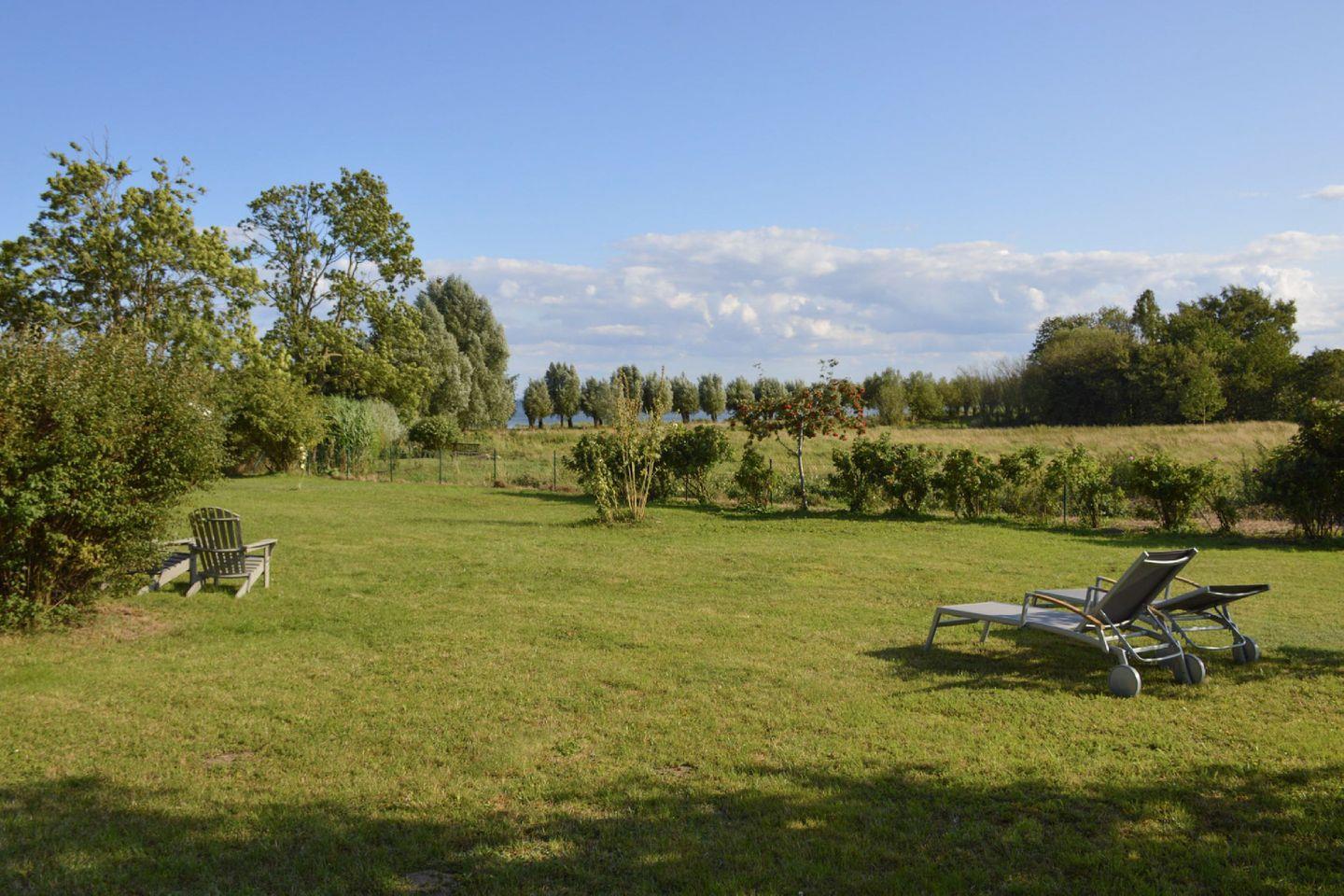 Ca. 100 Meter von dem Ferienhaus entfernt liegt der Greifswalder Bodden, die älteste Badestelle Rügens mit einem Sandstrand und der historischen Weidenallee. Hier und an den Sandbuchten im nahegelegenen Wald kann man sich die Füße vertreten, seine Bahnen schwimmen, surfen oder Stand-Up-Paddeln. Die umliegende schöne und romantische Landschaft eignet sich hervorragend für Rad- und Wandertouren. In wenigen Minuten erreichen Sie die weiße Fürstenstadt Putbus, welche im klassizistischen Stil erbaut wurde und mit einem großen Schlosspark mit Wildgehege, der kleinen Schlosskirche, einem Theater, einer Orangerie, dem berühmten Circus sowie einigen Lädchen ein attraktives Touristenziel darstellt.