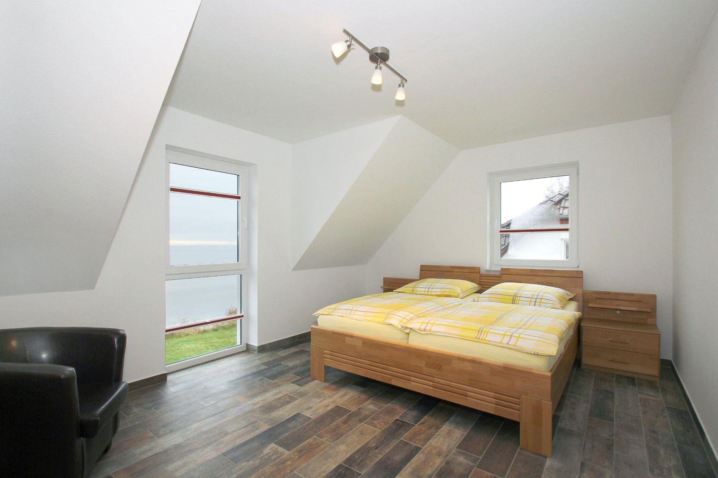 Es ist in Neuendorf auf Rügen, mit direktem Blick auf´s Wasser. Sie trennt nur ein Katzensprung vom Greifswalder Bodden. Neuendorf ist ein ruhiger Ort, abseits der Touristenströme. Hier finden Sie Erholung und Entspannung und können Kraft für den stressigen Alltag tanken. Viele attraktive Ausflugsziele befinden sich in unmittelbarer Nähe. Die weiße Stadt Putbus ist durch den historischen Schloßpark zu Fuß erreichbar und ist als alte Fürstenresidenz unbedingt einen Besuch wert. Im nahe gelegenen Lauterbach lockt der Hafen mit seinen Fischerbooten, hier gibt es nach der Anlandung auch mal frischen Fisch zu kaufen, mit den Schiffen und Seglern und den Schwimmhäusern im Jaich. Die Lauterbacher Mole ist auch der Startpunkt für den Rasenden Roland, der Sie über Süd-Ost-Rügen durch die Badeorte bringt.