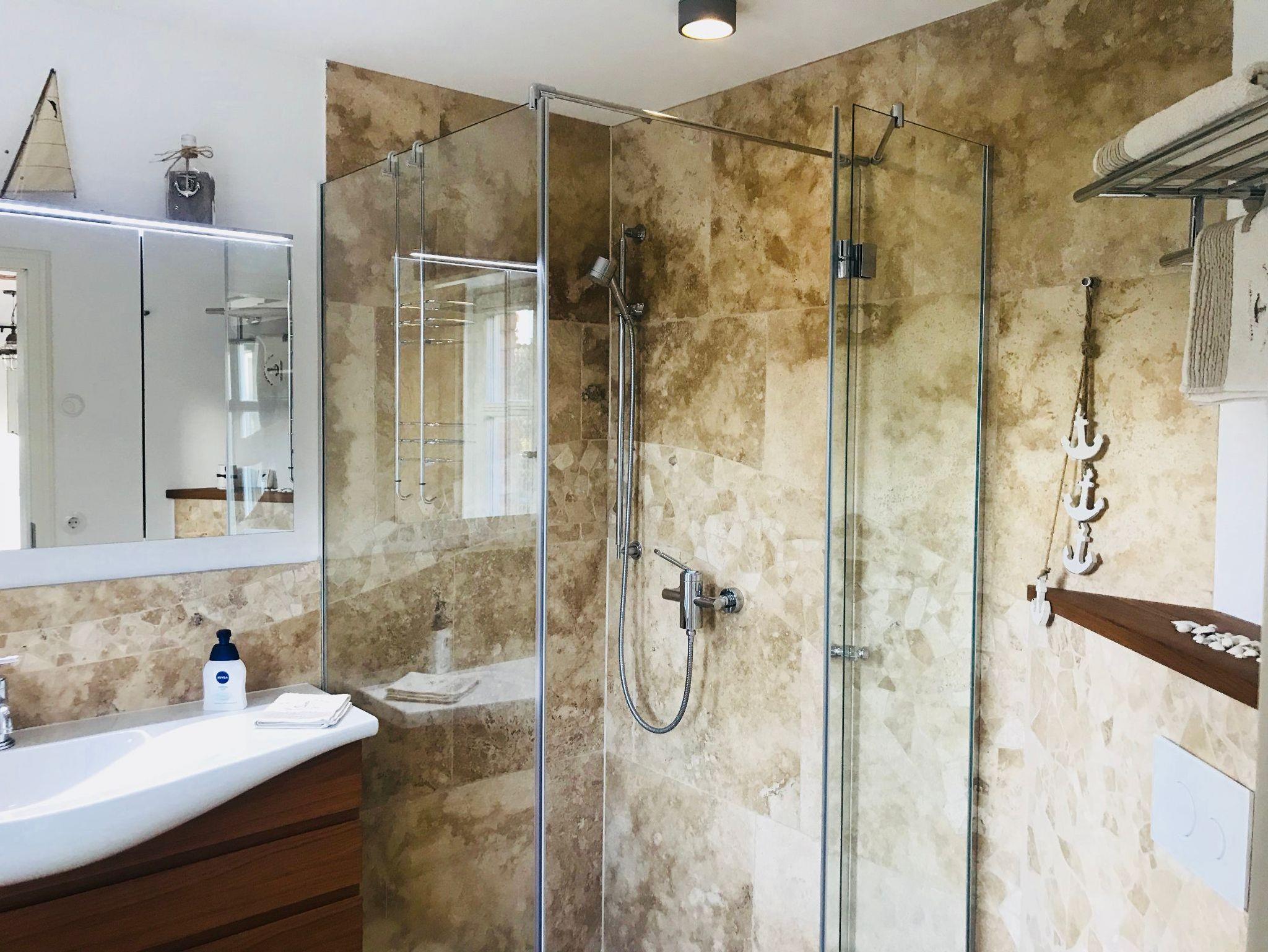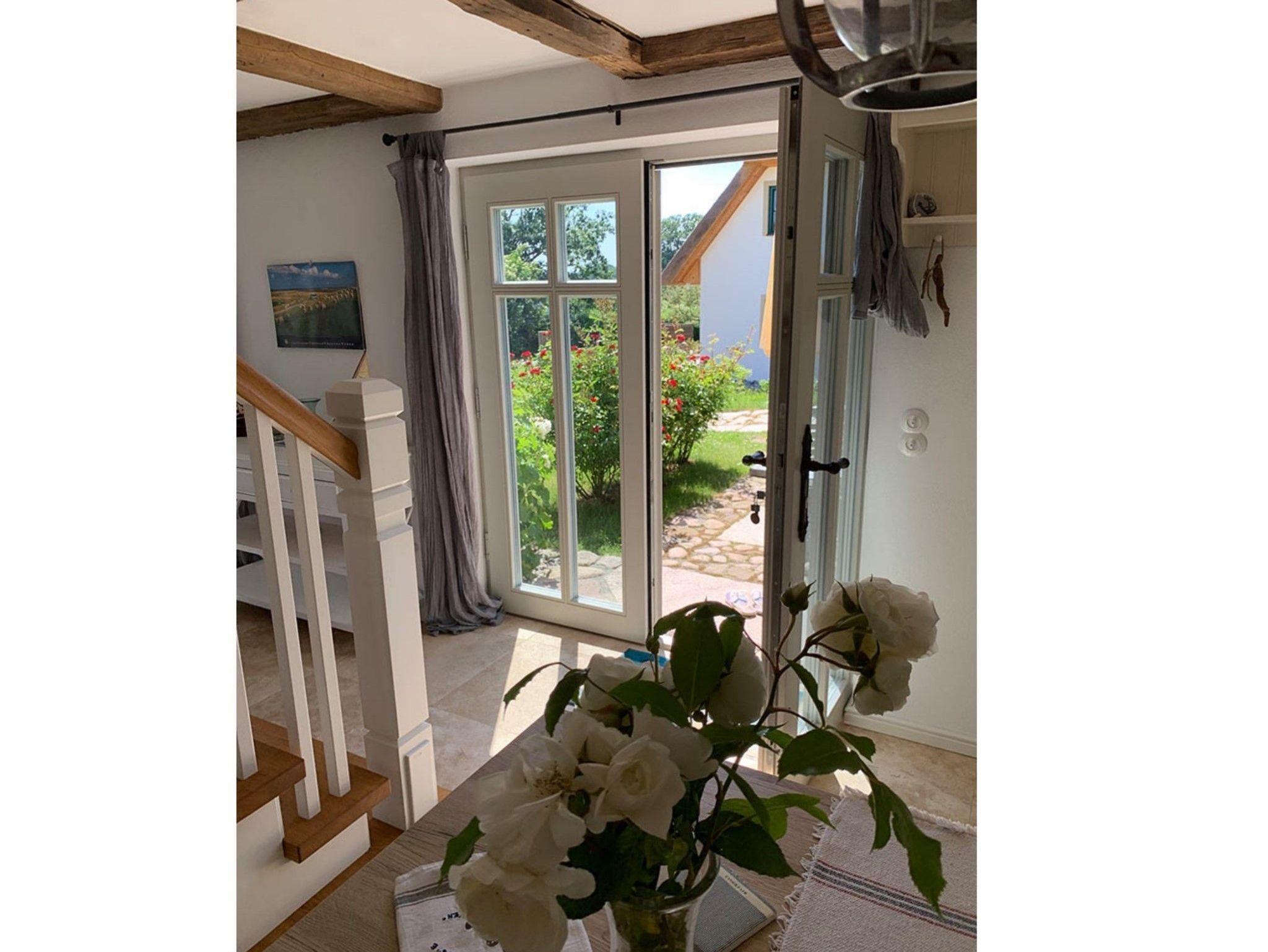 Idyllisches Ferien-Appartement (ca. 50 m²) für 2 - 3 Personen unmittelbar am Natur-Badestrand in der Stresower Bucht, mit eigener Terrasse und eigenem Strandkorb im Garten, Parkplatz direkt am Haus (Wallbox für E-Auto,11 kW), Wohn- und Essbereich im Erdgeschoss mit vollausgestatteter Küche (u. a. mit Mikrowellenherd/-Grill, Cerankochfeld, Kühlschrank und Geschirrspüler), Schlafzimmer mit Doppelbett im Dachgeschoss (optional: Aufbettung für 1 Person im Wohnzimmer; bei Bedarf kann ein Babybett zur Verfügung gestellt werden). Hochwertige Ausstattung, Satelliten-TV, Fußbodenheizung; zur Mitbenutzung (nach Absprache) sind vorhanden: Fahrräder, ein Surfbrett und Stand-Up Paddle (SUP), Kanu (3er), Sonnenliegen, XXL-Strandkorb, Waschmaschinennutzung möglich. Eine Ladebox für ein E-Auto ist vorhanden. Handtücher- und Bettwäschepaket sind auf Anfrage buchbar.