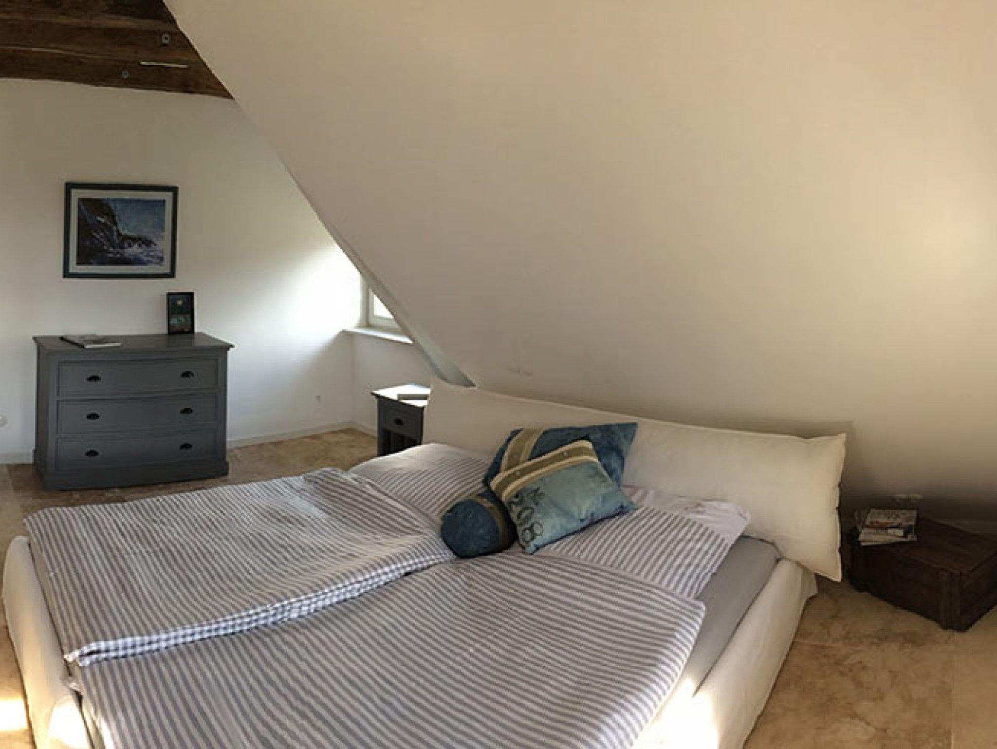 idyllisches Ferien-Appartement (ca. 50 m²) für 2 - 3 Personen unmittelbar am Natur-Badestrand in der Stresower Bucht, mit eigener Terrasse im Garten, Parkplatz direkt am Haus, Wohn- und Essbereich im Erdgeschoss mit vollausgestatteter Küche (u. a. mit Mikrowellenherd/-Grill, Cerankochfeld, Kühlschrank und Geschirrspüler), Schlafzimmer mit Doppelbett im Dachgeschoss (optional: Aufbettung für 1 Person im Wohnzimmer; bei Bedarf kann ein Babybett zur Verfügung gestellt werden). Hochwertige Ausstattung, Satelliten-TV, Fußbodenheizung; zur Mitbenutzung (nach Absprache) sind vorhanden: Fahrräder, ein Surfbrett und Stand-Up Paddle (SUP), Kanu (3er), Sonnenliegen, XXL-Strandkorb, Waschmaschinennutzung möglich. Eine Ladebox für ein E-Auto ist vorhanden. Handtücher- und Bettwäschepaket sind auf Anfrage buchbar.