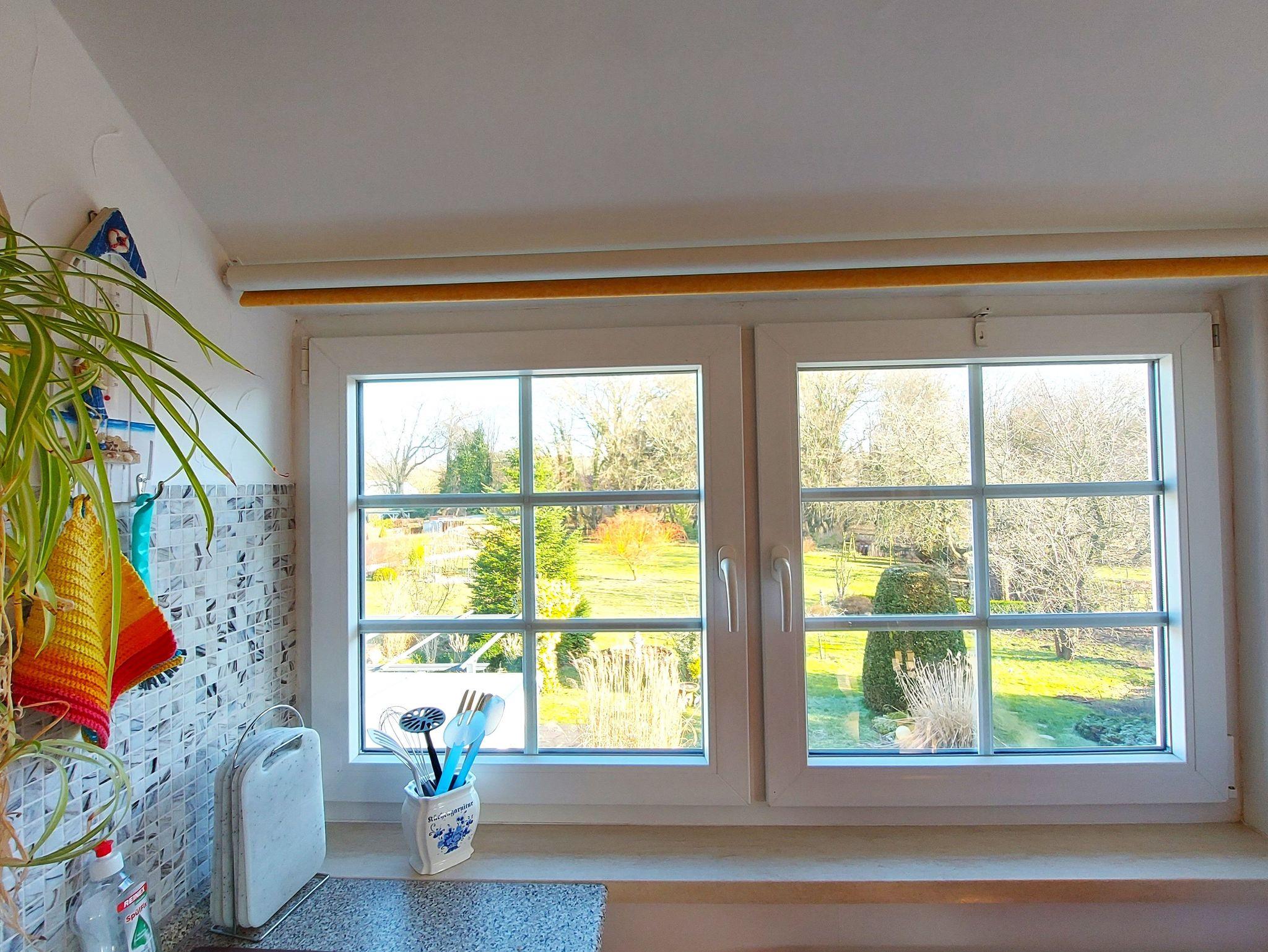 Ferienwohnung Putbus OT Kasnevitz. Im Dachgeschoss unseres Reetgedeckten Landhauses erstreckt sich diese schicke Wohnung über 2 Etagen.Das Haus liegt in einem schönen Dorf 3km von der Rosenstadt Putbus entfernt. Sie besteht aus dem Eingangsbereich mit Garderobe,einem grossen Wohn-Schlafraum ,schicke Einbauküche mit allem Komfort(4 Platten Ceranfeld,Backofen mit Umluft,Kühl-Gefrierkombi,Geschirrspüler,Kaffeemaschine,Toaster,Wasserkocher,Mikrowelle) und ein Esstisch mit 4 Sitzplätzen. Von der Küche haben sie einen herrlichen Ausblick auf den Garten, Der Wohn-Schlafbereich hat ein Doppelbett, auf dieser Etage erwartet sie ein sehr schickes Natursteinbad mit Dusche. Über eine Holztreppe gelangen sie ins Obergeschoss wo sich ein Schlafbereich mit 2 Einzelbetten und ein WC-Bad mit Waschbecken befindet. Im Garten haben sie eigene Sitzecken mit hochwertigen Holzmöbeln und Sonnenliegen.