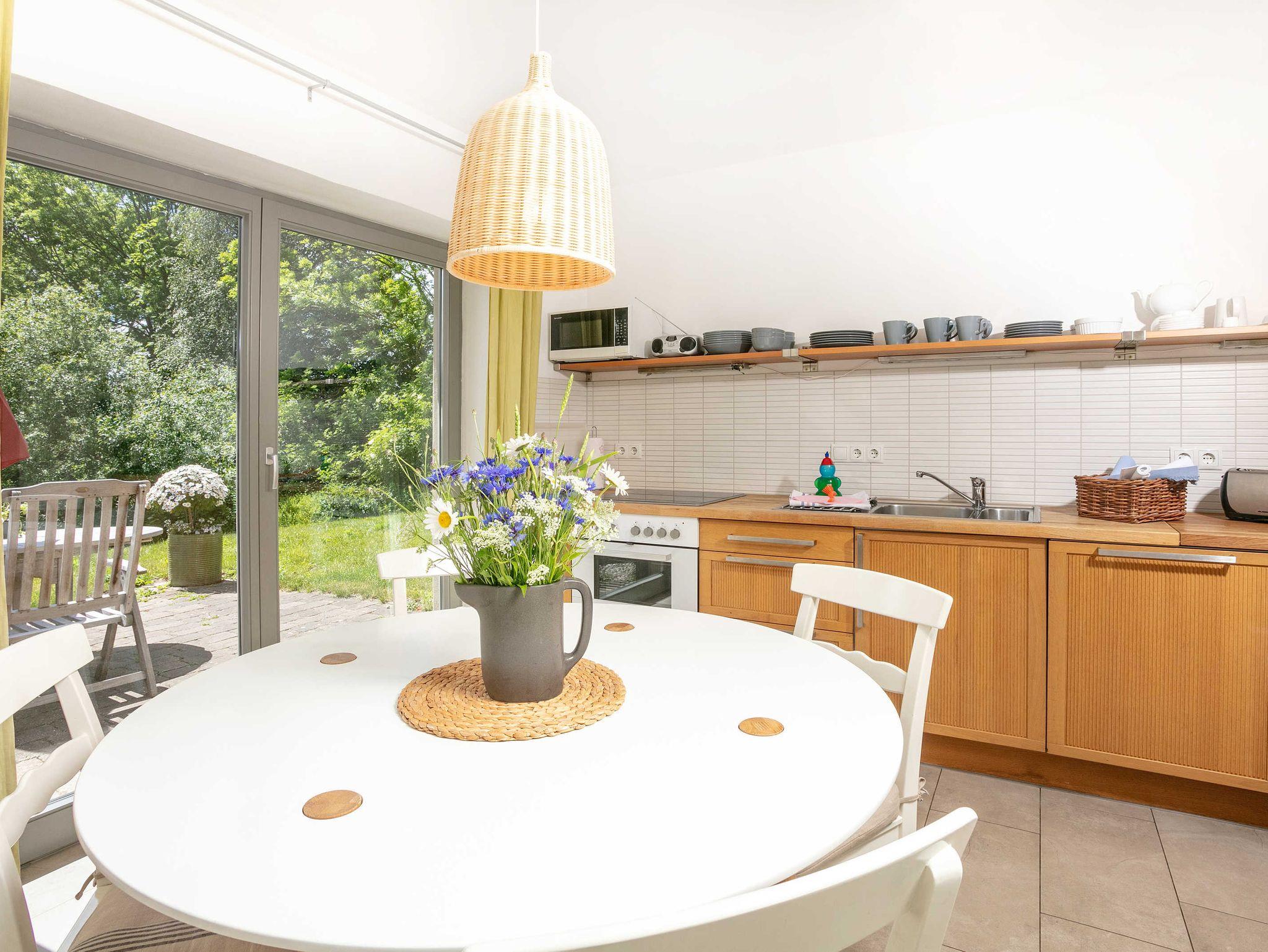 Unser Sonnenhaus ist mit Reet gedeckt und beherbergt 4 Ferienwohnungen für 3 bis max. 4 Personen je Wohnung, die über eine Terrasse bzw. über einen Balkon verfügen.
