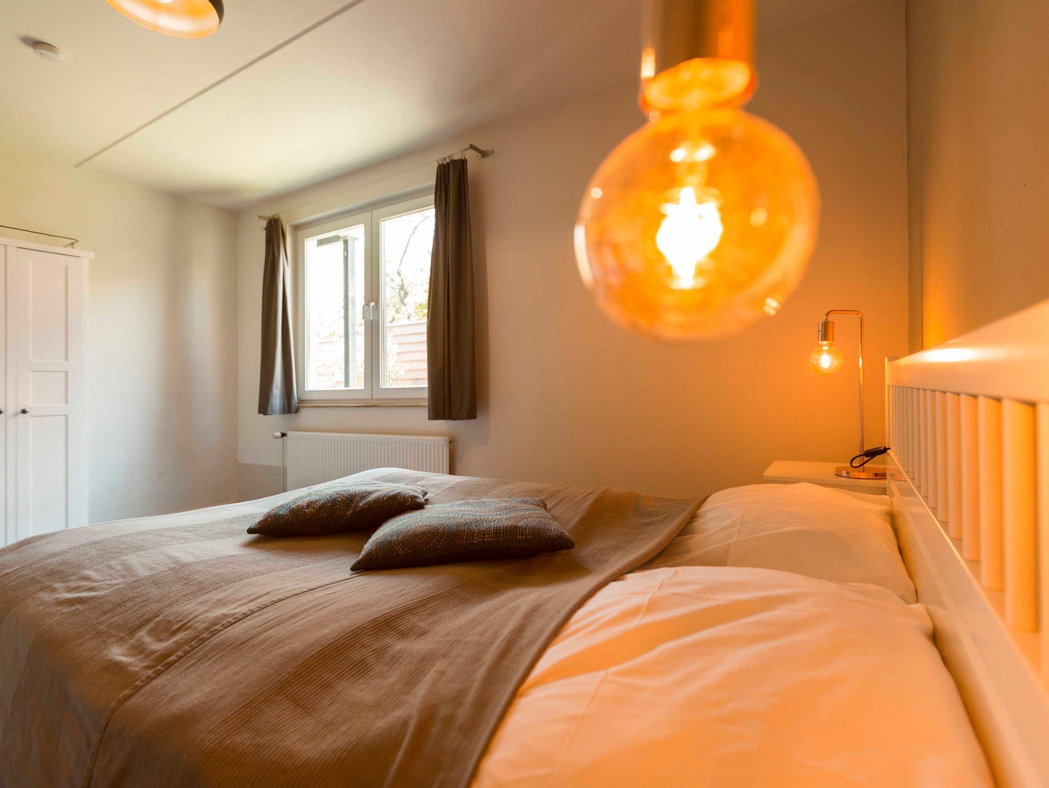 Ein Schlafraum mit Doppelbett und ein Wohnraum mit Aufbettung für zwei Personen (Schlafcouch),