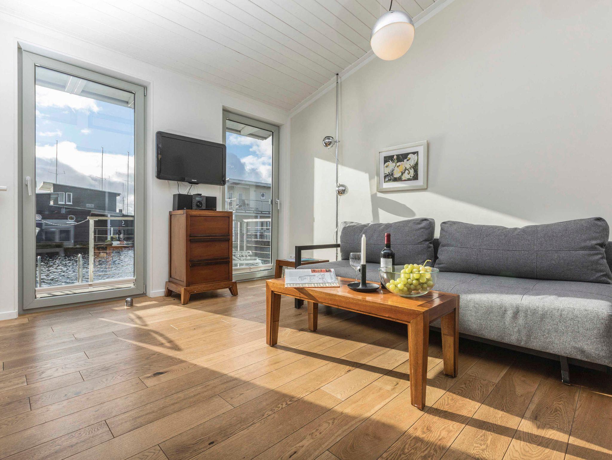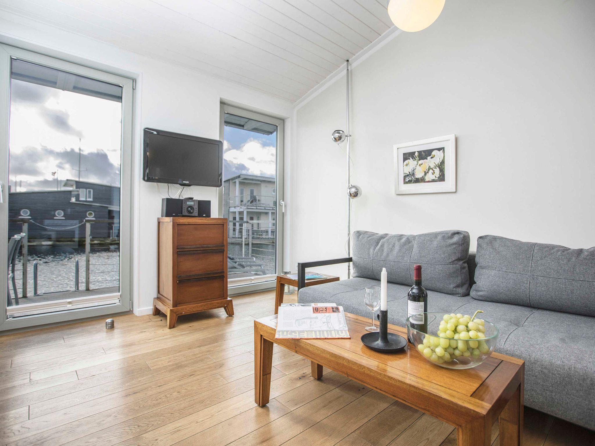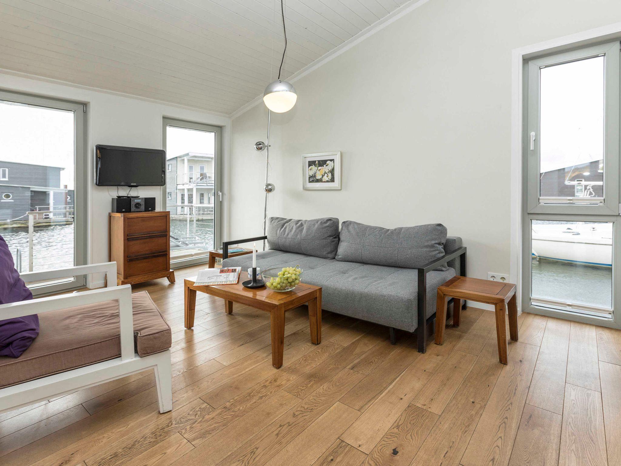 Ein Schlafraum mit Doppelbett, ein Wohnraum mit Aufbettung für zwei Personen (Schlafcouch). SAT-TV, Musikanlage, Küchenzeile, Dusche, WC, möblierte Terrasse, Bootsliegeplatz inkl.
