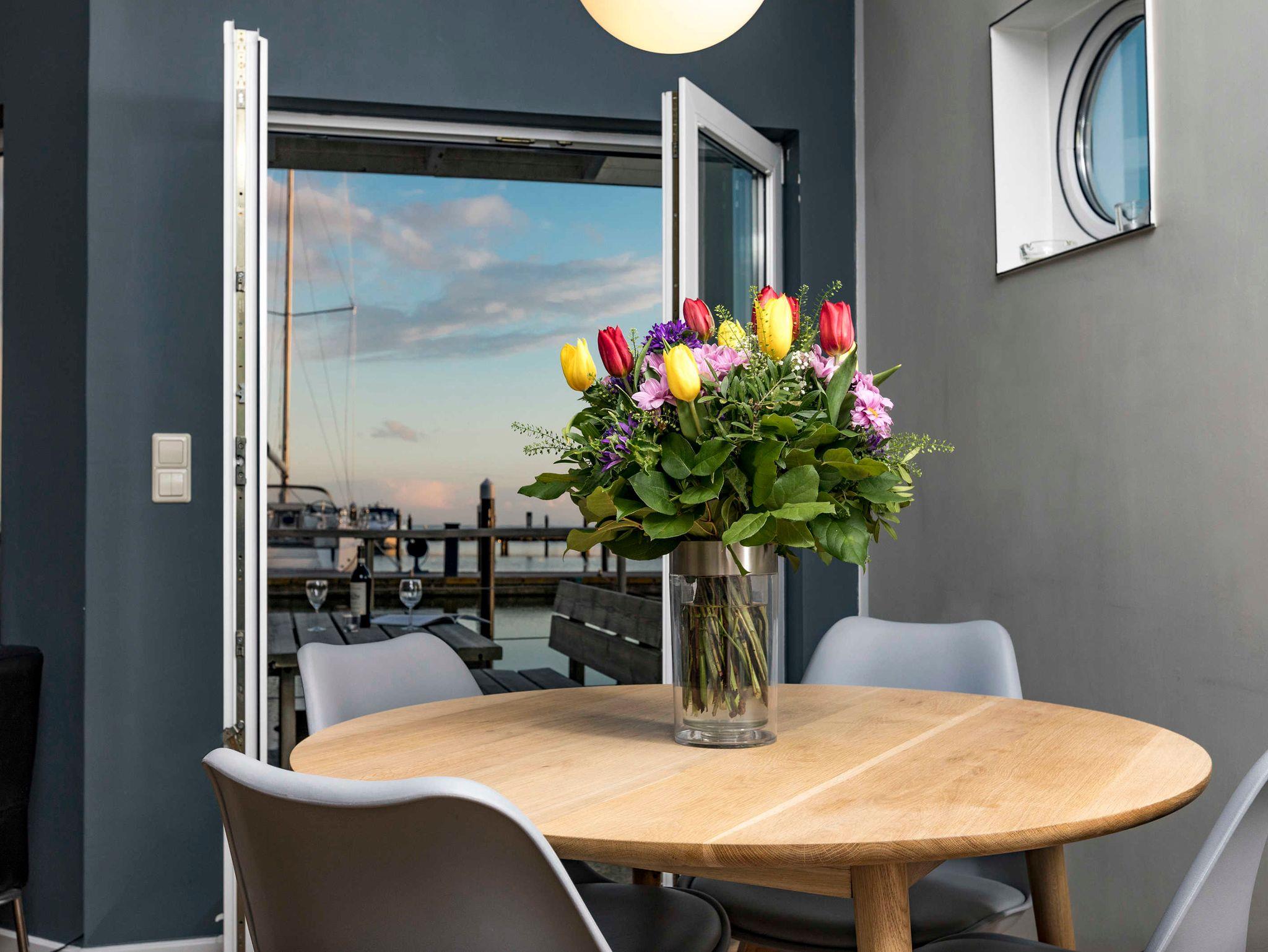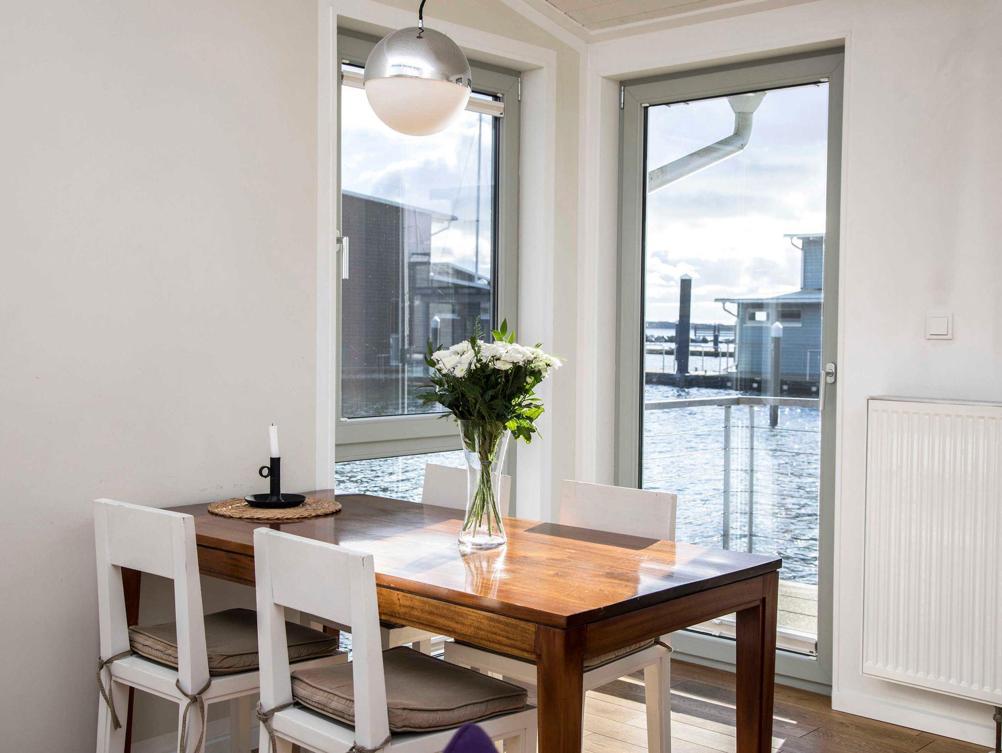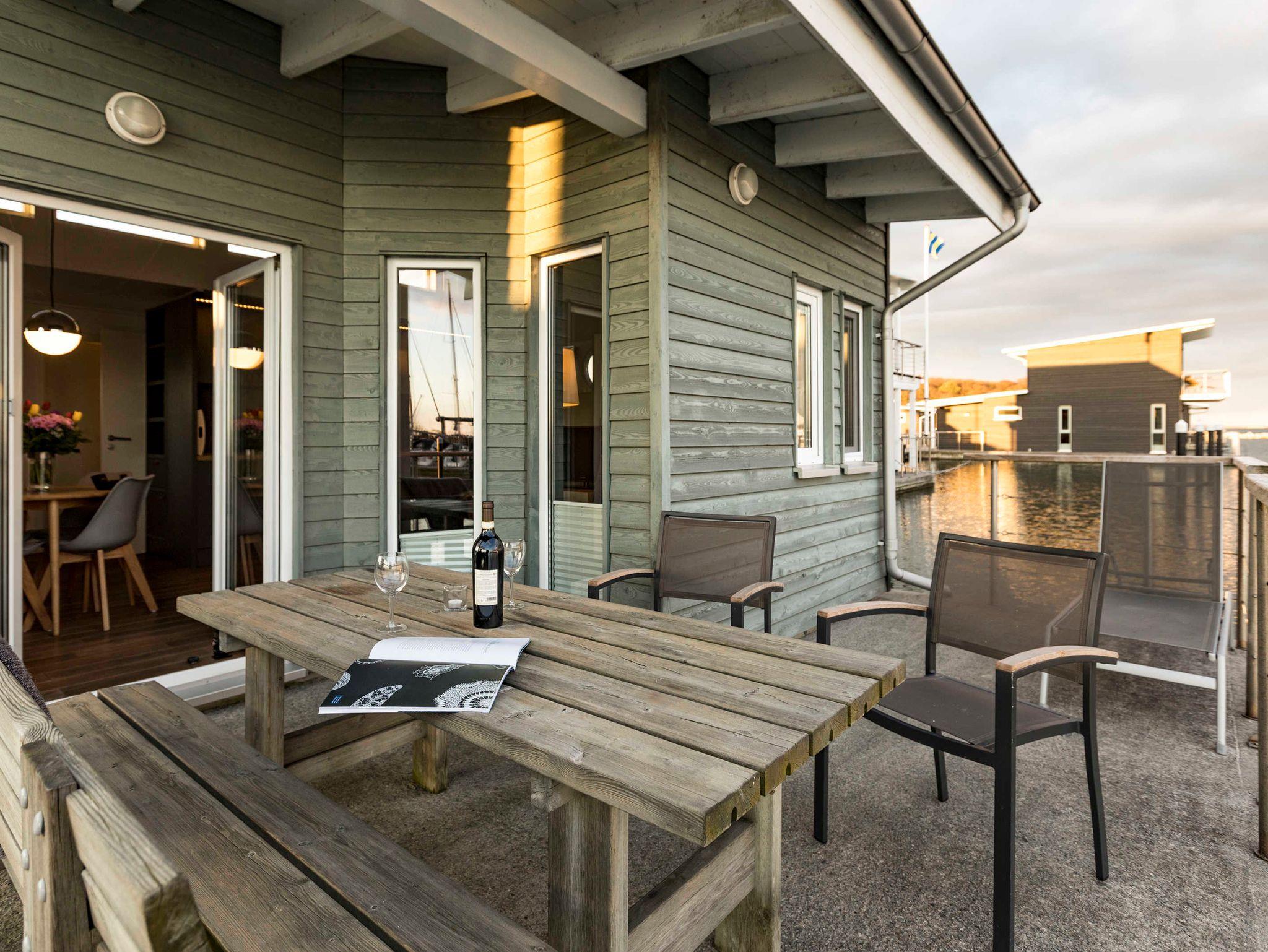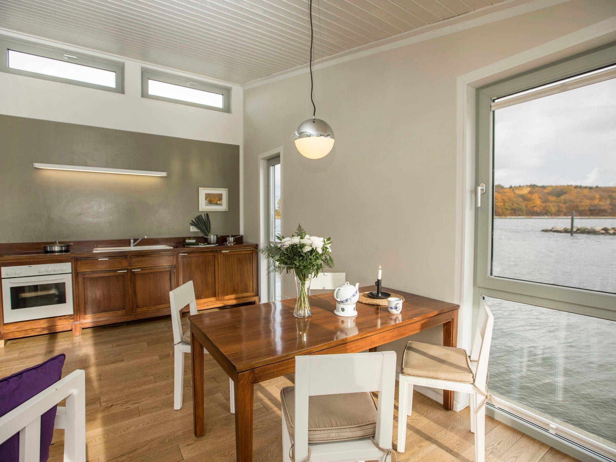 Ein Schlafraum mit Doppelbett, ein Wohnraum mit Aufbettung für zwei Personen (Schlafcouch). SAT-TV, Musikanlage, Küchenzeile, Dusche, WC, möblierte Terrasse, Bootsliegeplatz inkl.
