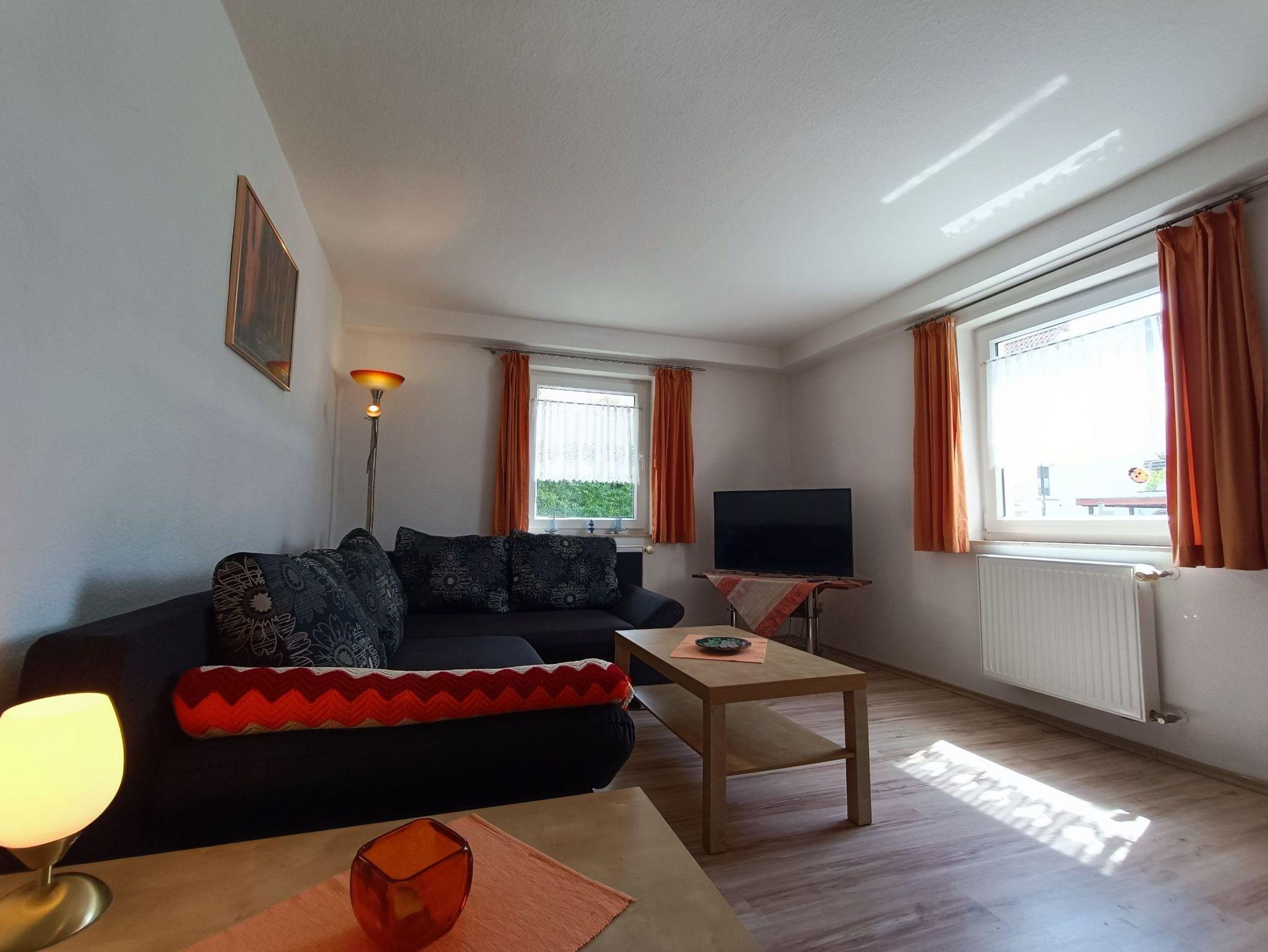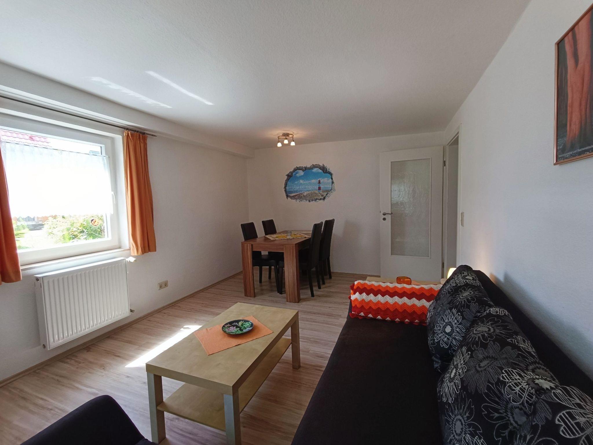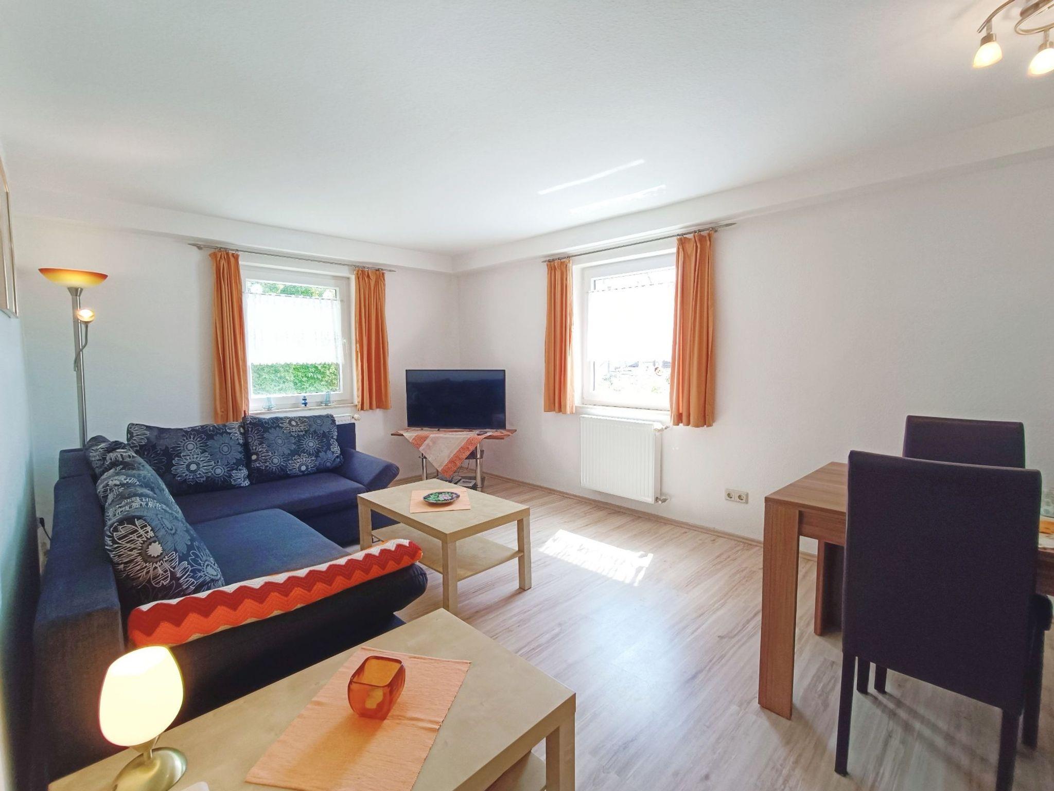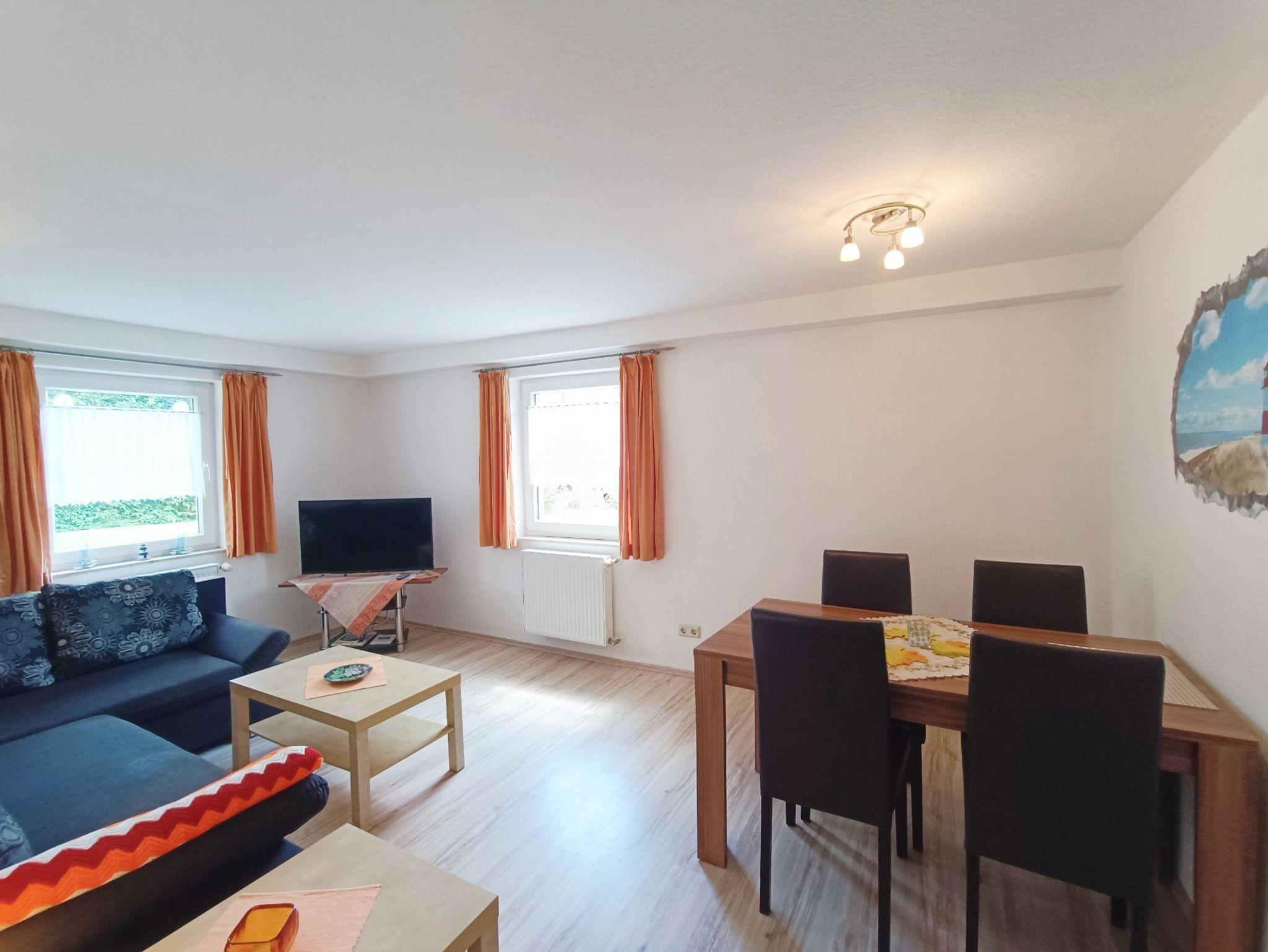 geräumiges Wohnzimmer mit Couchgarnitur (weitere Schlafmöglichkeit), Essecke, Flachbild-TV mit DVD-Player
