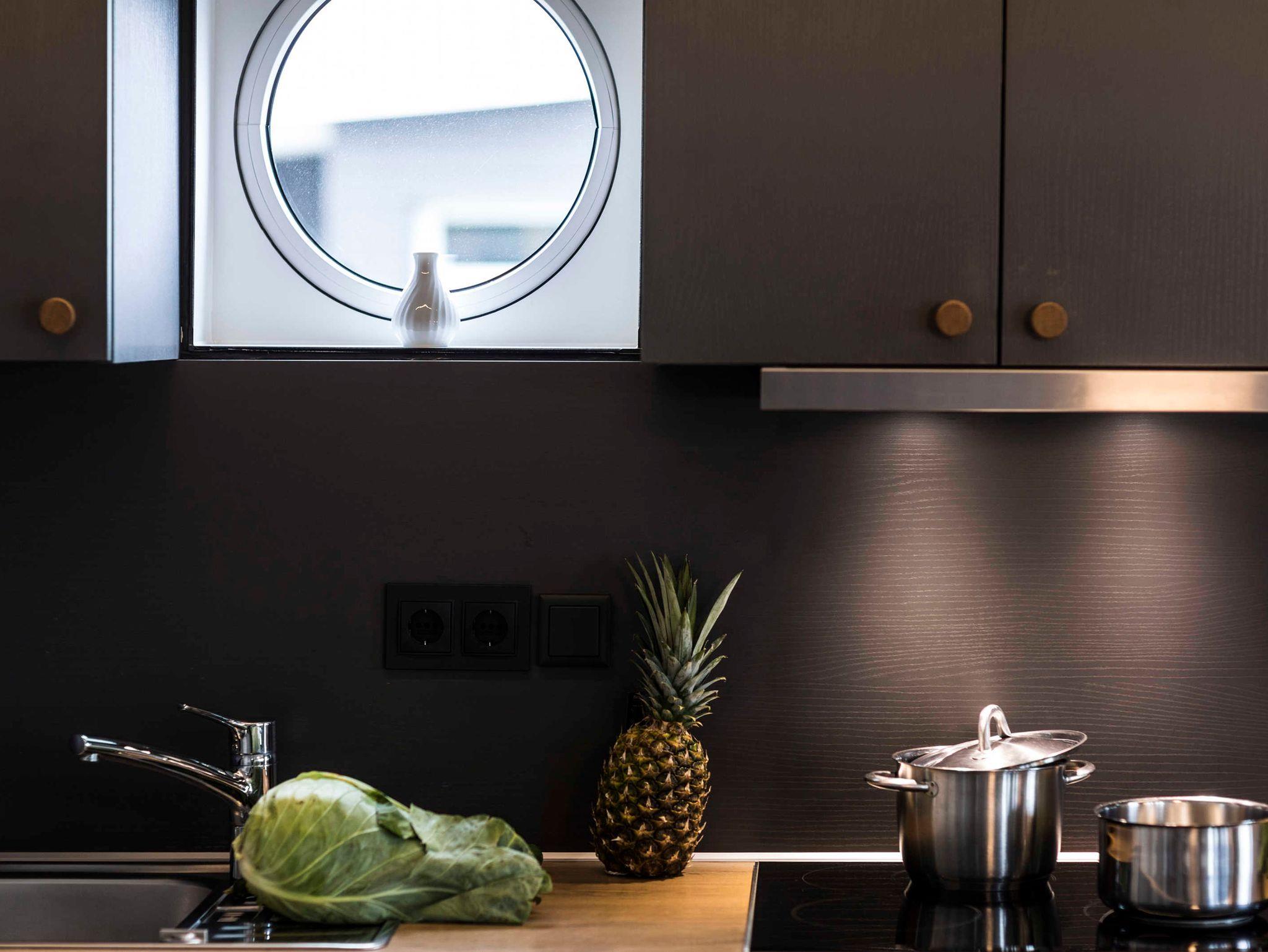 4 Räume auf 2 Etagen – Küche und Wohnraum, 2 Schlafräume mit Doppelbett / franz. Bett, Kinderzimmer