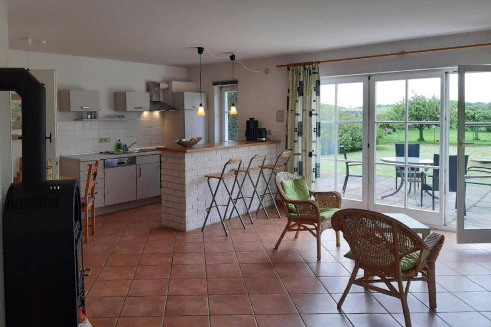 Stueetage: (Stue(dobbeltsovesofa, Fjernsyn(parabol), pejs, radio), åbent køkken(spisebord(4 personer), kogeplade(Komfur med fire kogeplader, glaskeramisk), elkedel, brødrister, emhætte, kaffemaskine, ovn, opvaskemaskine , køleskab(+ fryser)), soveværelse(dobbeltseng(180 x 200 cm)), badeværelse(bruser, håndvask, toilet)) grill, varme, terrasse, havemøbler, parkering, Håndklæder/sengelinned (ekstra gebyr)