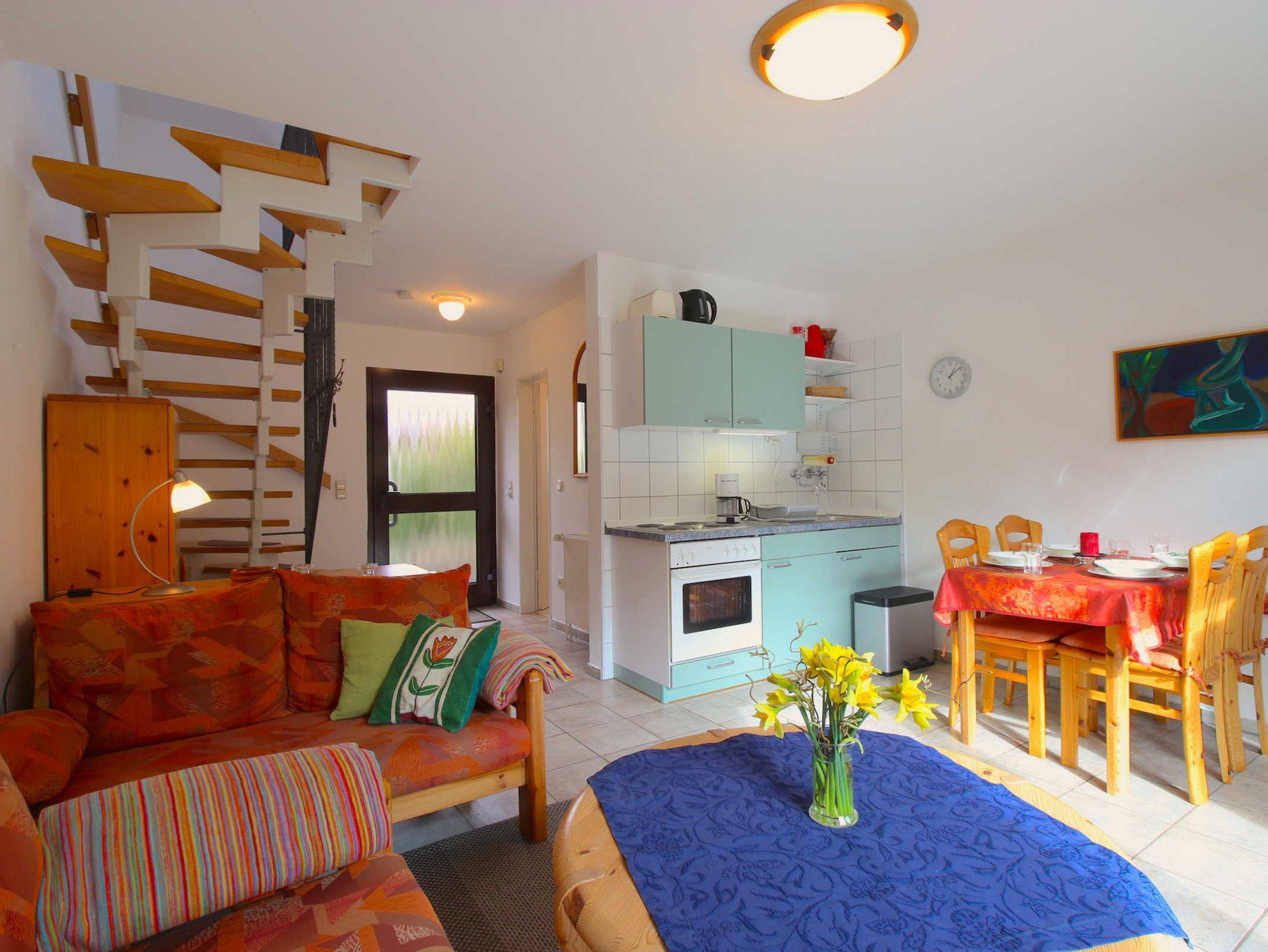 Im Ferienhaus des Vermieters befinden sich zwei identisch eingerichtete Ferienwohnungen. Diese haben jeweils eine Größe von ca. 50 qm. Im Erdgeschoss der Wohnung befindet sich jeweils ein Bad mit Dusche/WC, ein großer heller Wohnraum mit komplett ausgestatteter Küchenzeile, einem Essplatz und gemütlicher Sitzecke. Ein Kinderhochstuhl, Fußbodenheizung, Flachbild-TV mit Satellitenempfang und ein kostenloser Internetzugang (DSL) runden die Ausstattung ab.