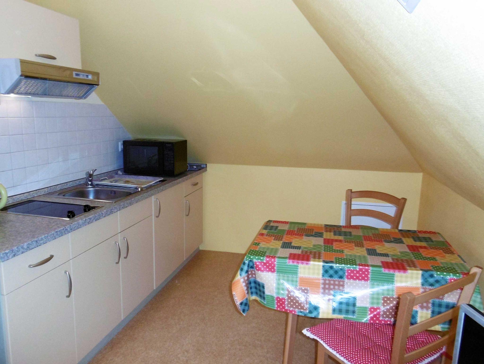 Die Ferienwohnungen bestehen aus je einem kombinierten Wohn-Schlafraum mit offener Küche mit Esstisch und dem Duschbad.