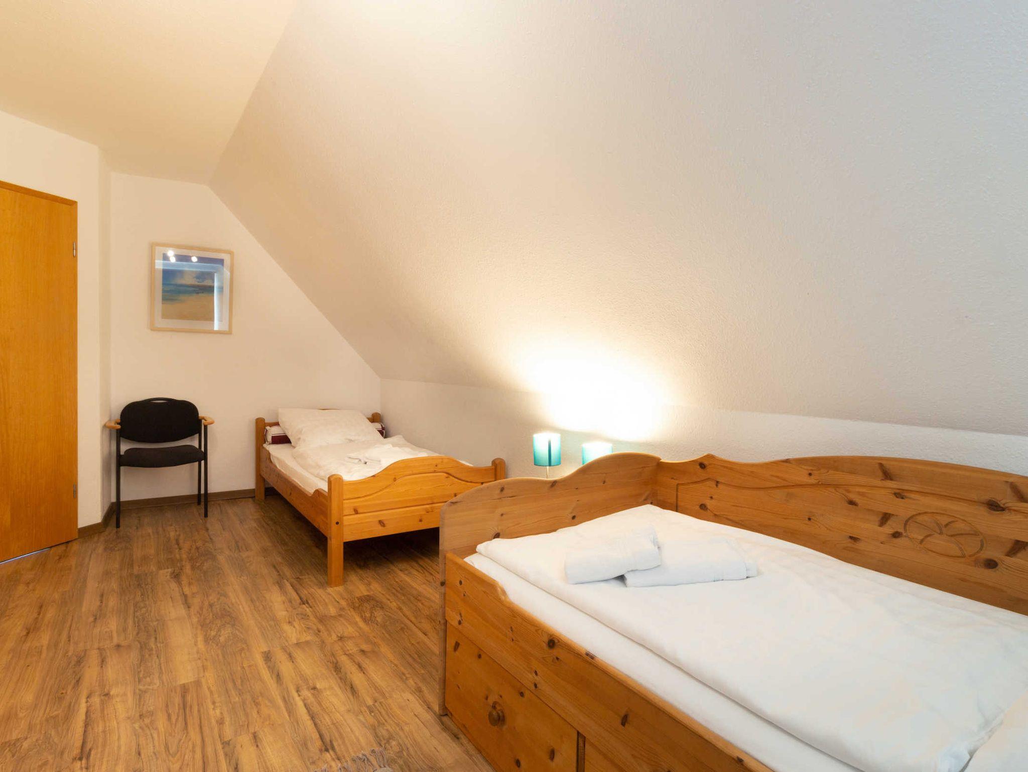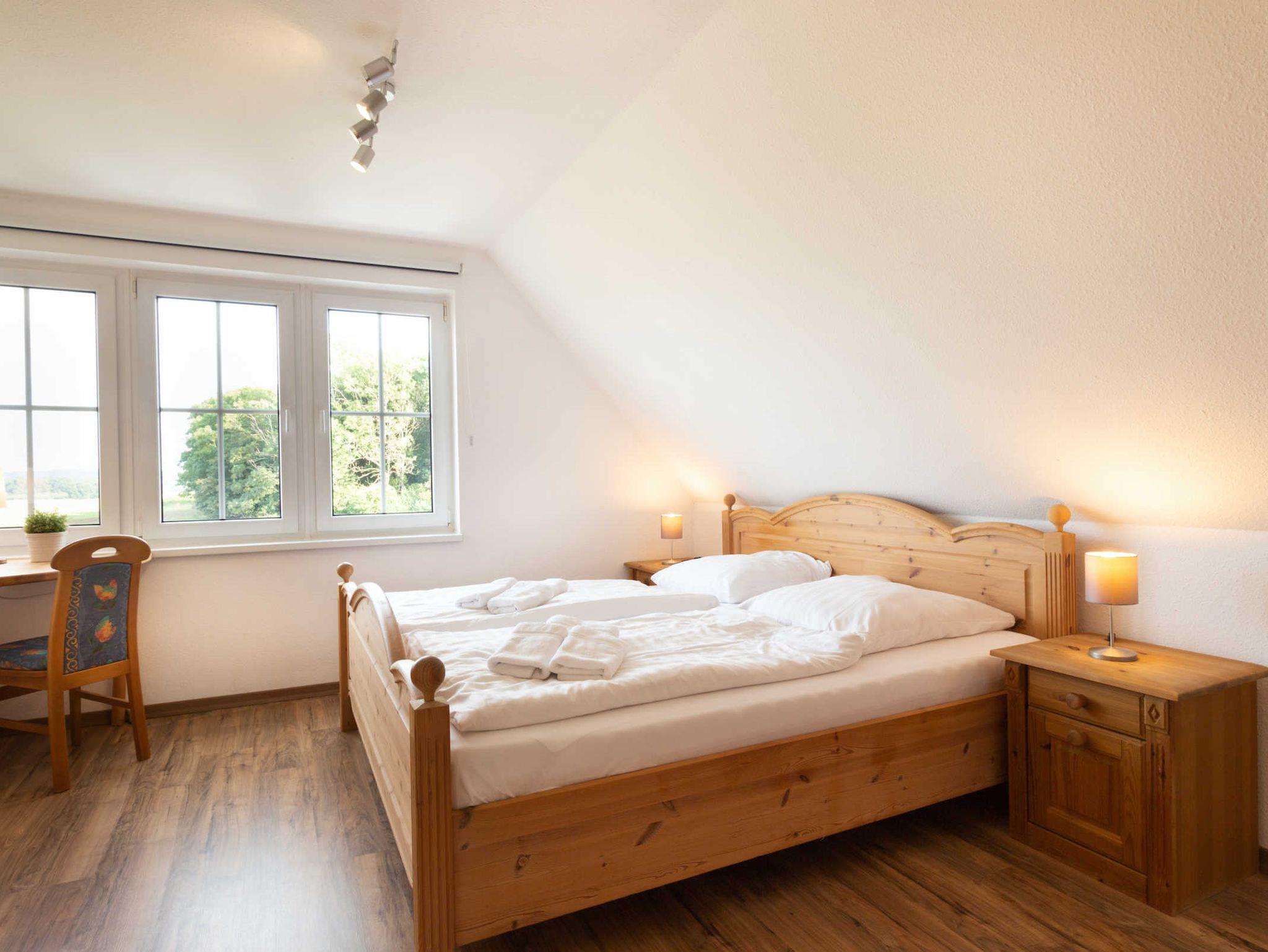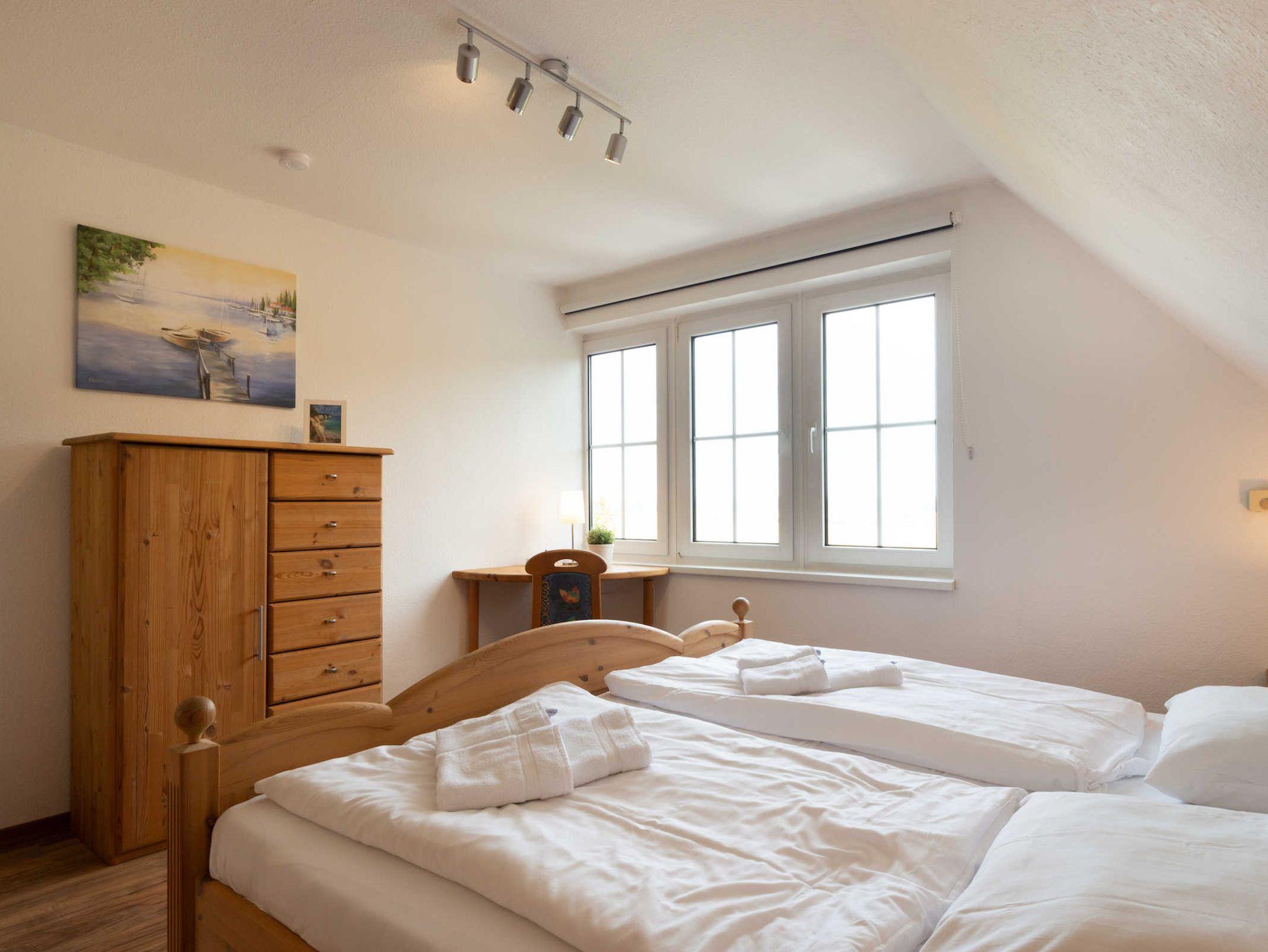 Zwei der Schlafzimmer sind dabei mit jeweils einem Doppelbett ausgestattet. Das dritte Schlafzimmer verfügt über zwei Einzelbetten.