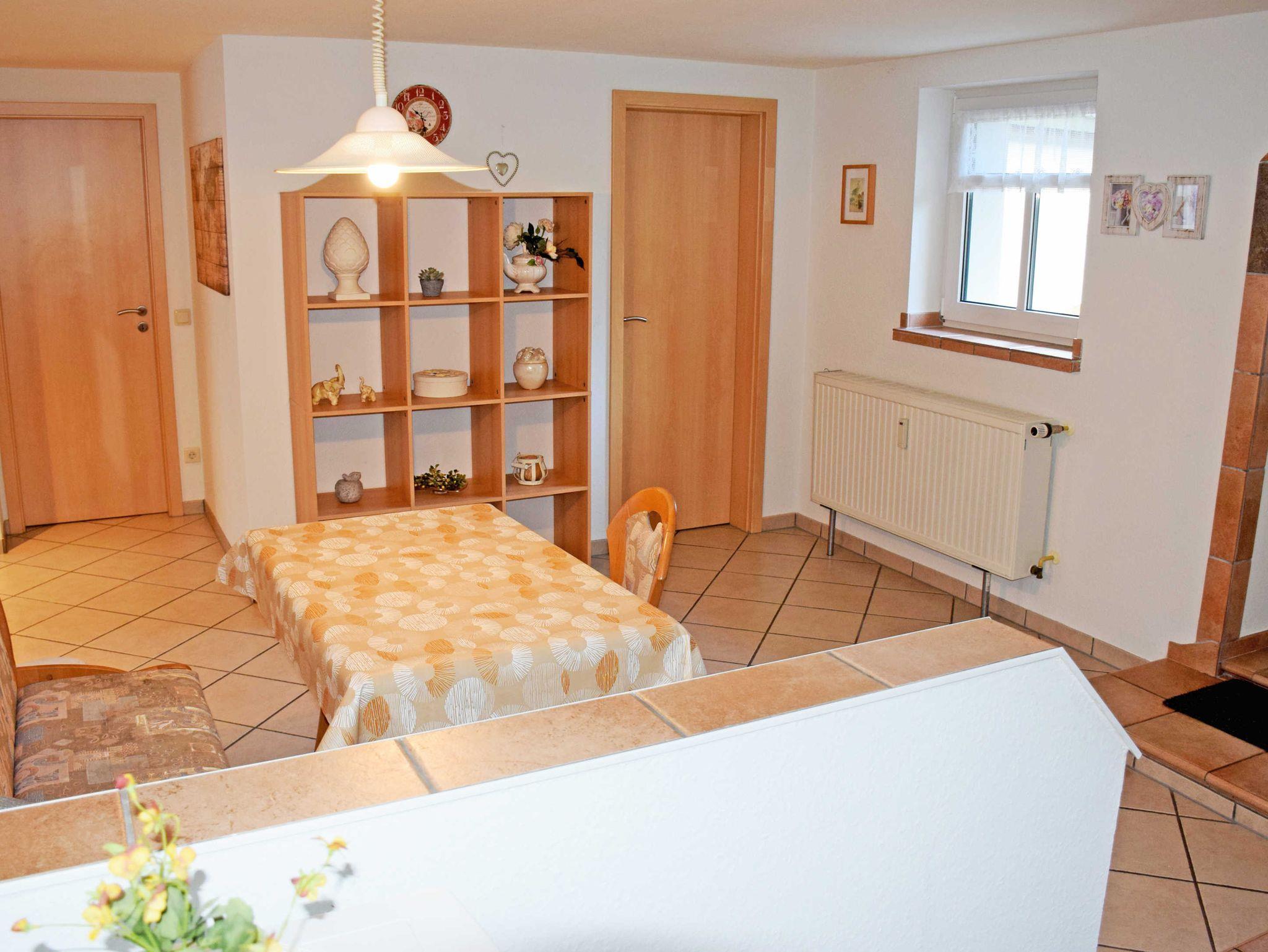 Wir vermieten hier in ruhiger Lage zwei modern und komfortabel eingerichtete Ferienwohnungen (78 qm, max. 4 Gäste und ein Kind im Kinderreisebett, 2 Schlafzimmer, Wohnzimmer, Küchenzeile, Terrasse, WLAN) in einem Doppelhaus. Bitte beachten Sie, dass es sich hierbei um ein reines Urlaubsdomizil handelt, daher nicht als Unterkunft für Monteure sowie Handwerker möglich.