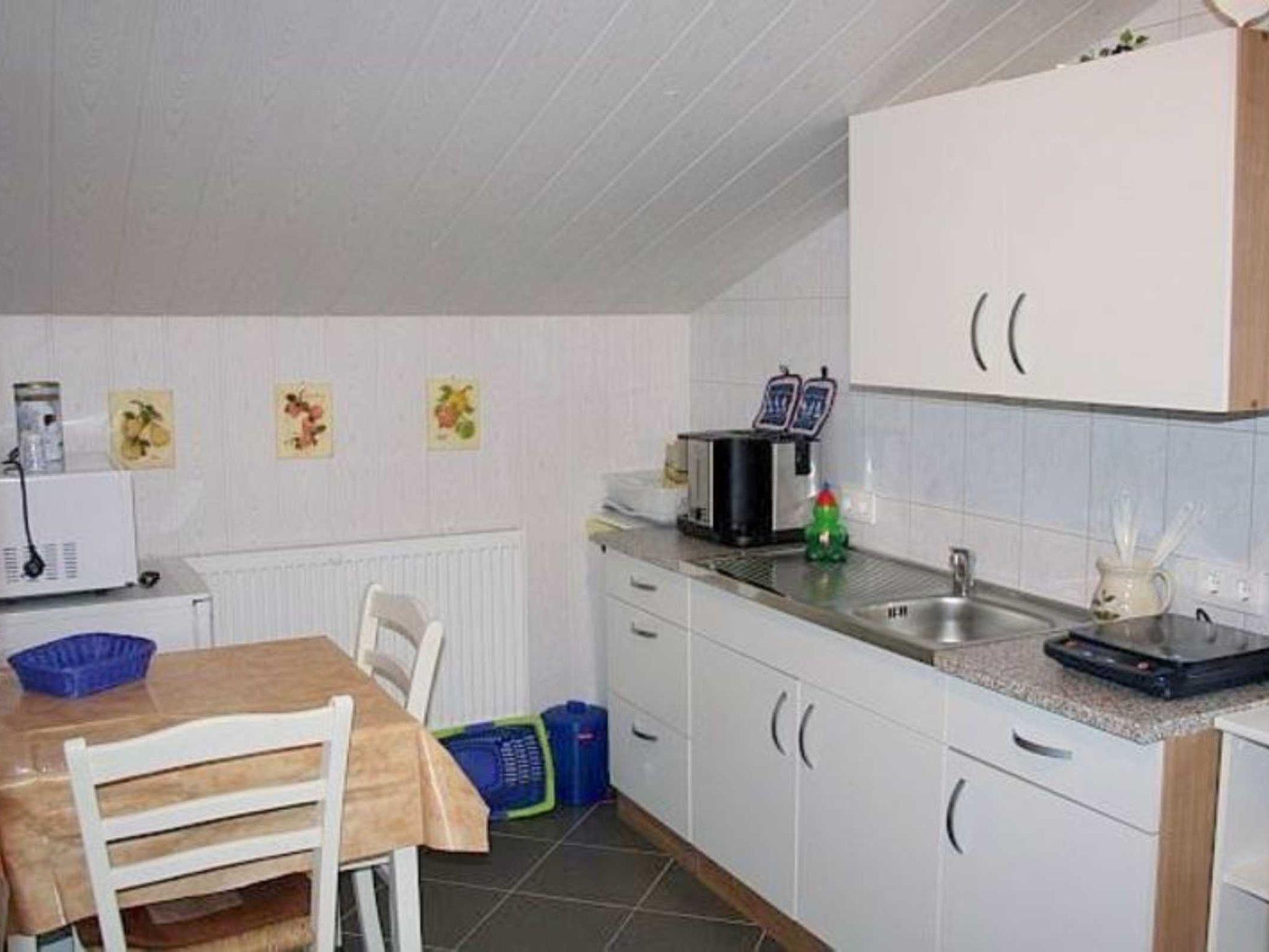 Die gemütlich eingerichtete Ferienwohnung befindet sich im Dachgeschoß und besteht aus einem kombinierten Wohn-/Schlafraum mit einer Küchenzeile und dem Duschbad. Sie ist, wegen der offenen Treppe, für Kinder unter 10 Jahren nicht geeignet.