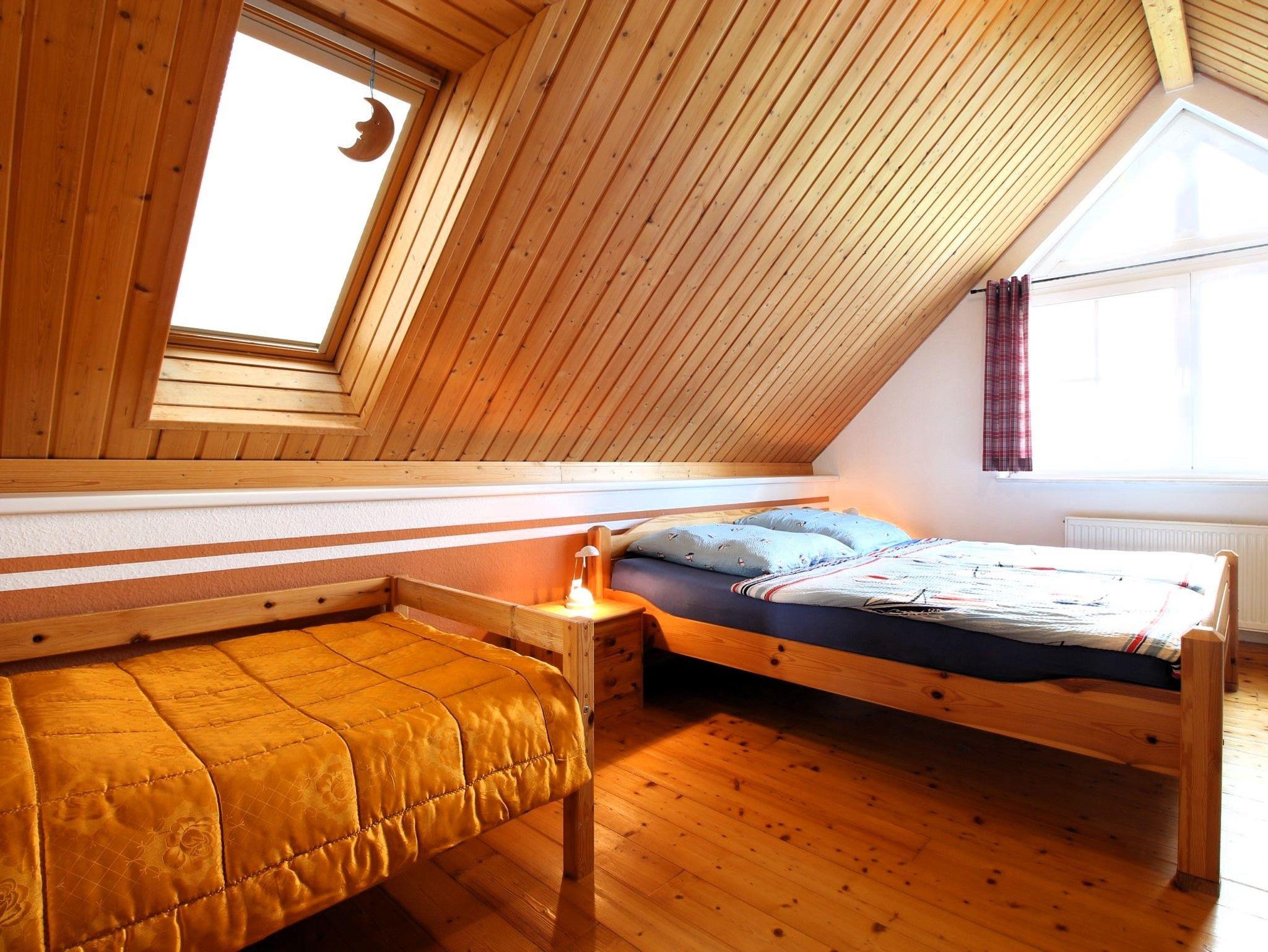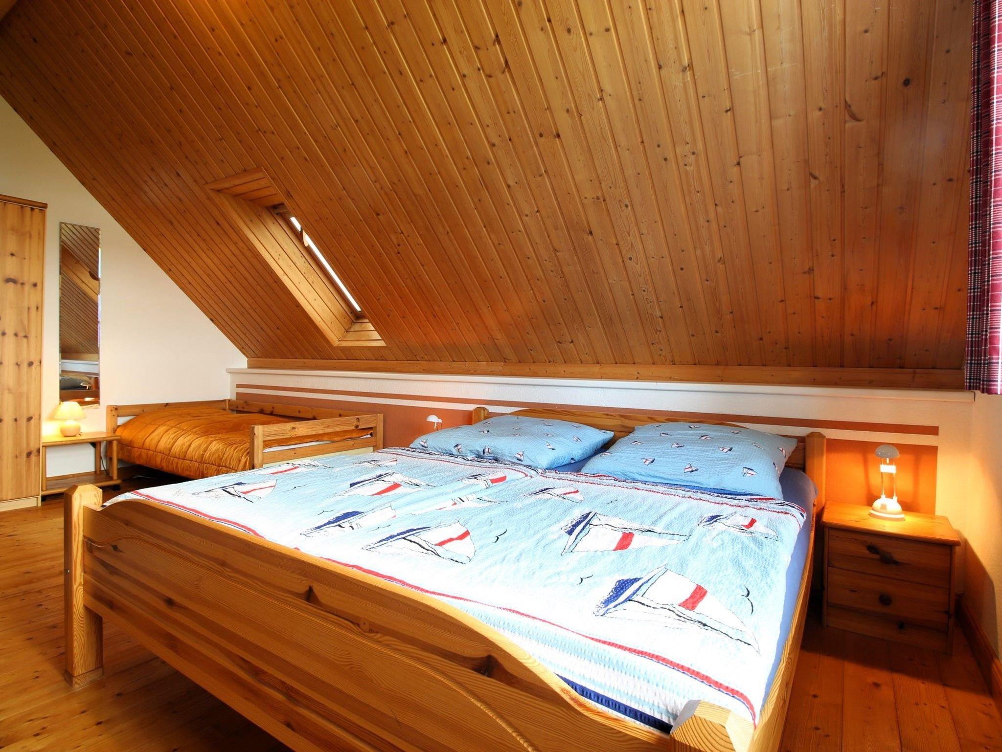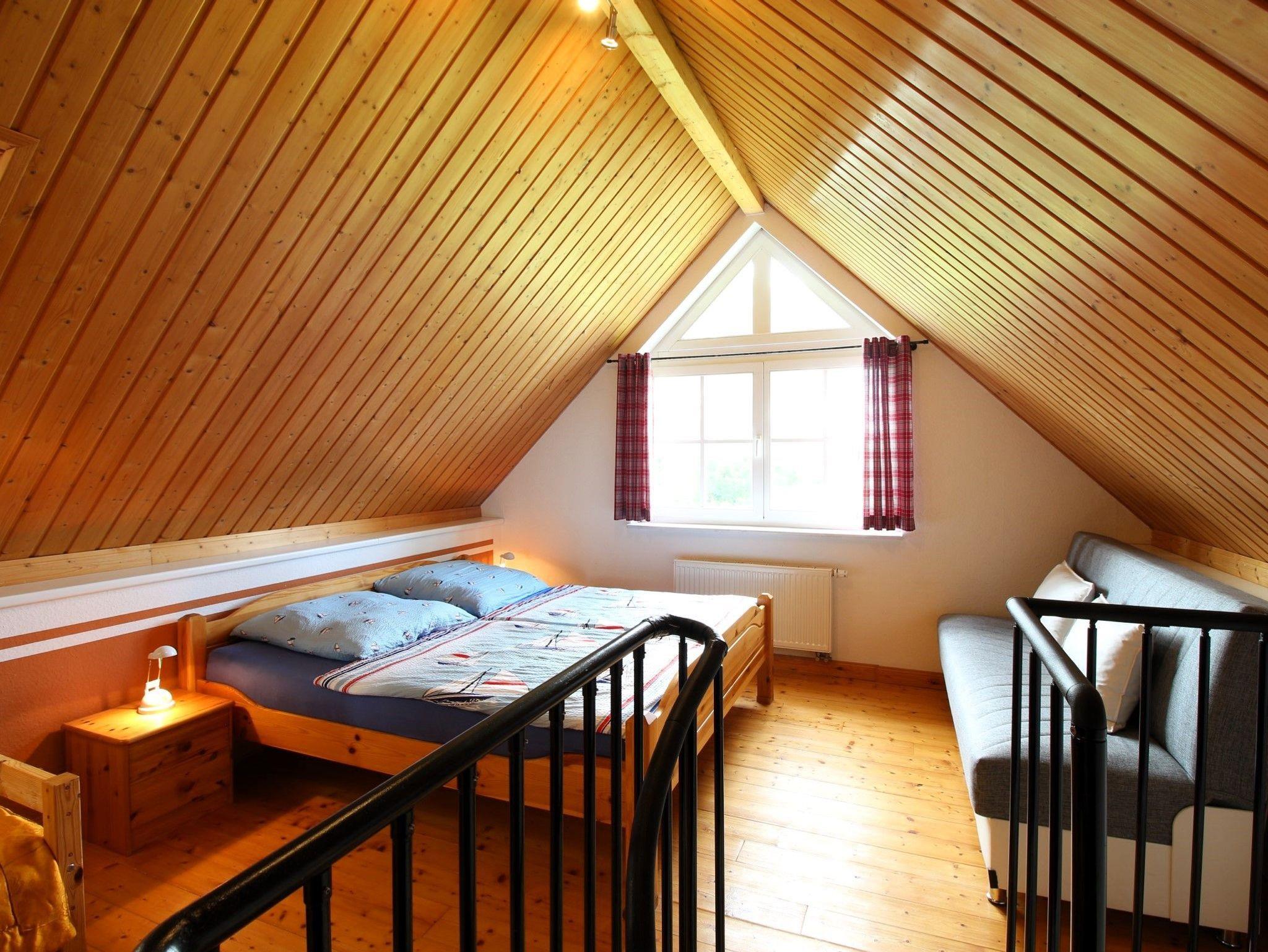 • Schlafraum in oberer Etage: drei Betten + eine Aufbettung