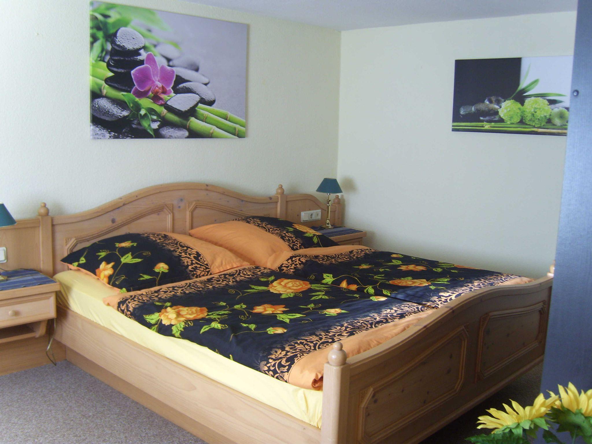 Ausstattung: 1 Wohnzimmer und Sitzgarnitur, eine Anbauwand, ein Dreiersofa, ein Zweier und ein Sessel mit Tisch. Einen Fernseher mit Sat.-Empfang stellen wir ebenfalls zur Verfügung. Sollte es abends mal etwas kühler werden, werden Sie vom Kaminofen gewärmt. 1 Schlafzimmer mit Doppelbett und Sofa zum Aussziehen (Aufbettung), 1 Küche - vorhanden sind eine Kaffeemaschine, ein Toaster, eine Kochgelegenheit, eine Mikrowelle, ein Kühlschrank, Geschirr sowie eine Spüle. Dusche und WC.