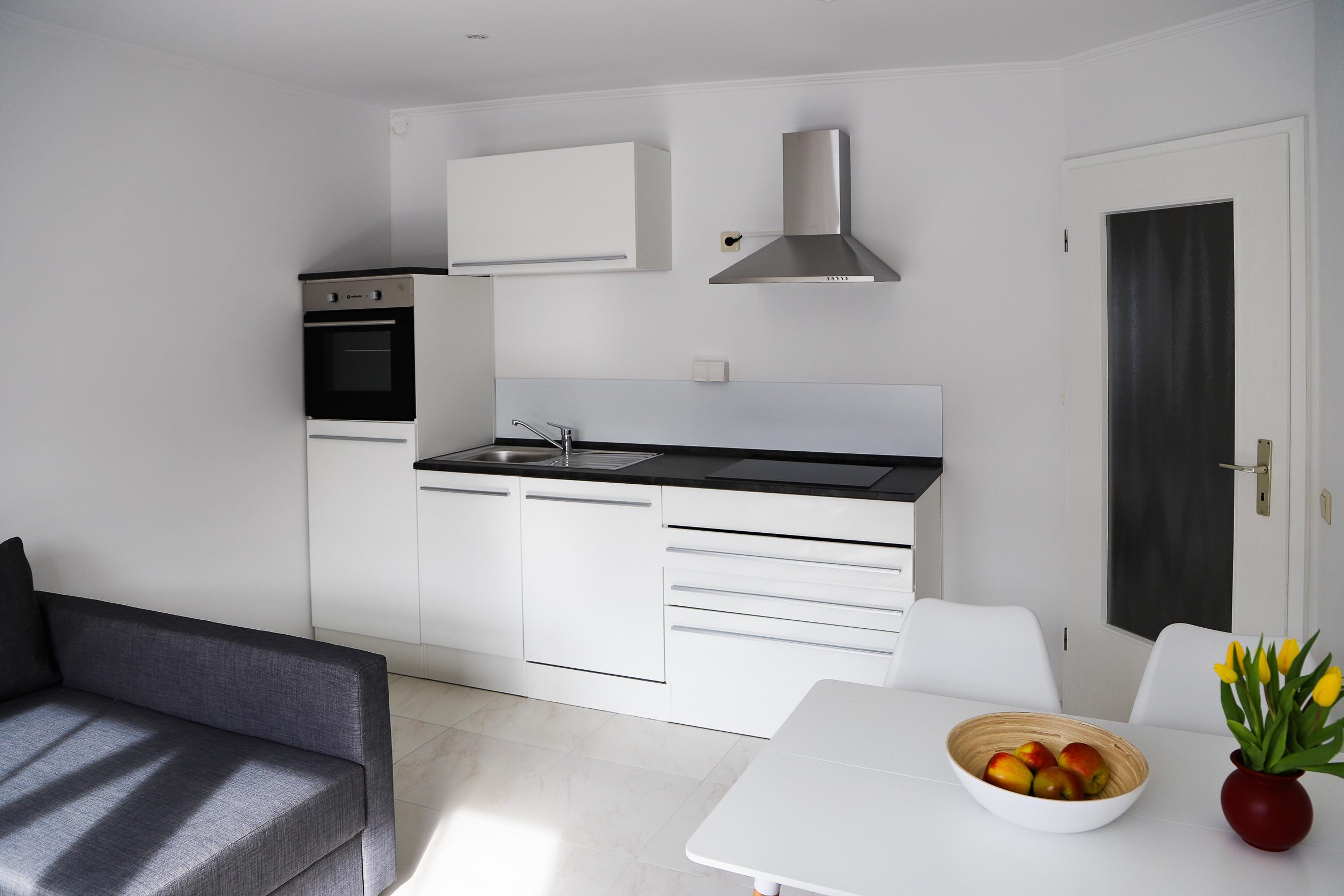 Die neu modernisierte und möblierte Ferienwohnung befindet sich im Erdgeschoss. Sie besteht aus einen Wohnzimmer mit Küche und Esstisch, mit ausklappbarer Schlafcouch, einem Schlafzimmer und einem Duschbad.