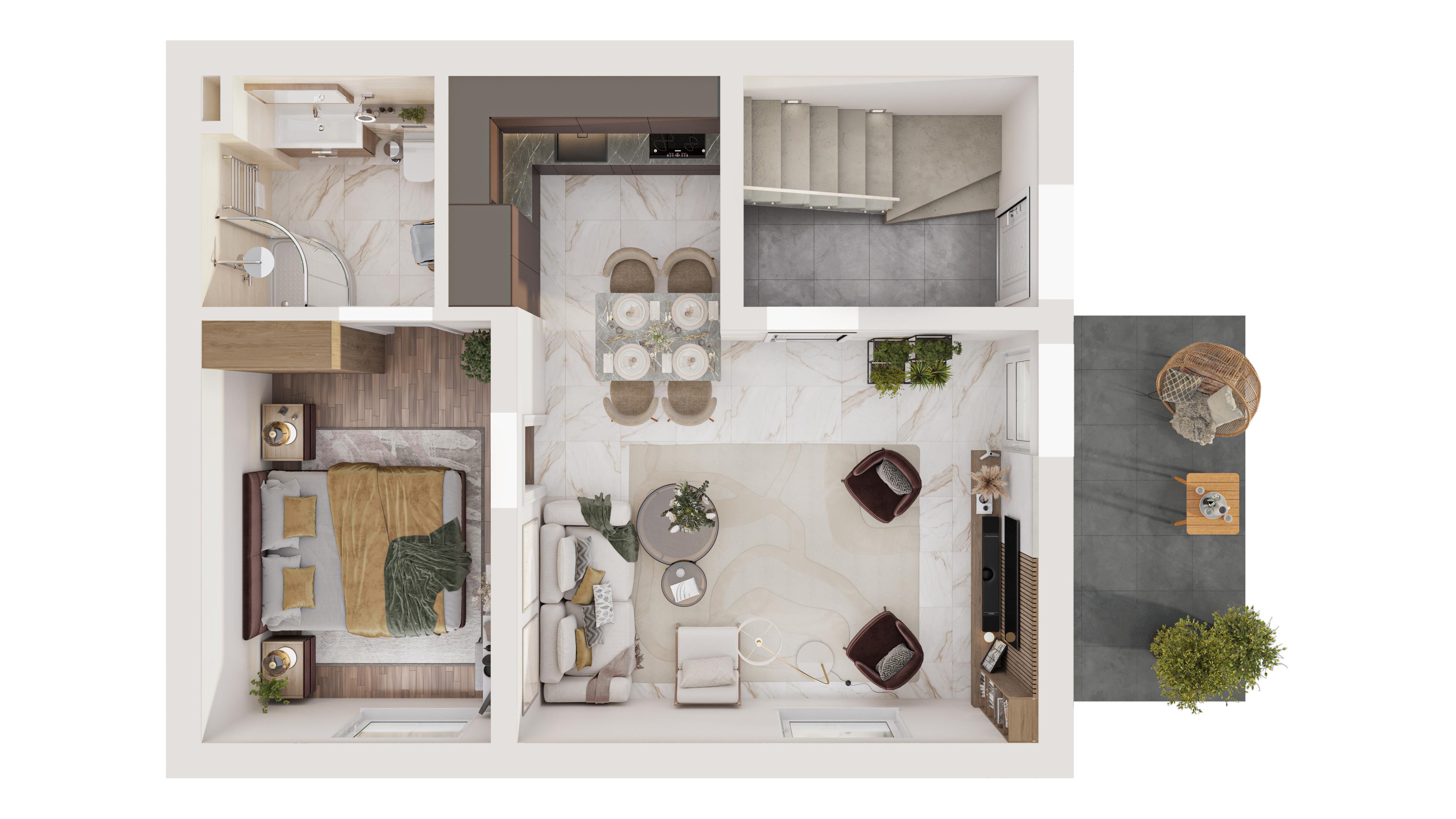 Die neu modernisierte und möblierte Ferienwohnung befindet sich im Erdgeschoss. Sie besteht aus einen Wohnzimmer mit Küche und Esstisch, mit ausklappbarer Schlafcouch, einem Schlafzimmer und einem Duschbad.
