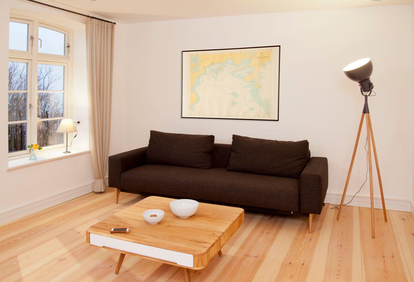 In der Ferienwohnung Klassenzimmer genießen Sie Ihren Urlaub mit allem Komfort und traumhaften Blick aufs Meer. Das 41 m² große Appartement ist hochwertig eingerichtet und bestens für Ihren Urlaub ausgestattet. Der helle und großzügig geschnittene Wohnbereich ist mit einer gemütlichen Couchgarnitur und Flachbild TV versehen. WLAN steht Ihnen kostenfrei zur Verfügung.