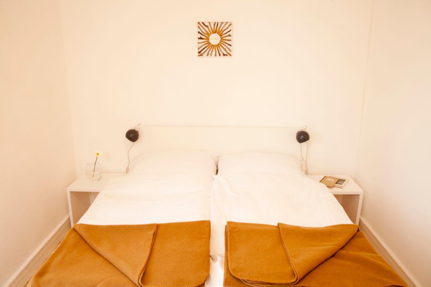 Die Wohnung verfügt weiterhin über 1 Schlafzimmer mit einem bequemen Doppelbett (1,60m) sowie ein Tageslichtbad mit Dusche und WC.
