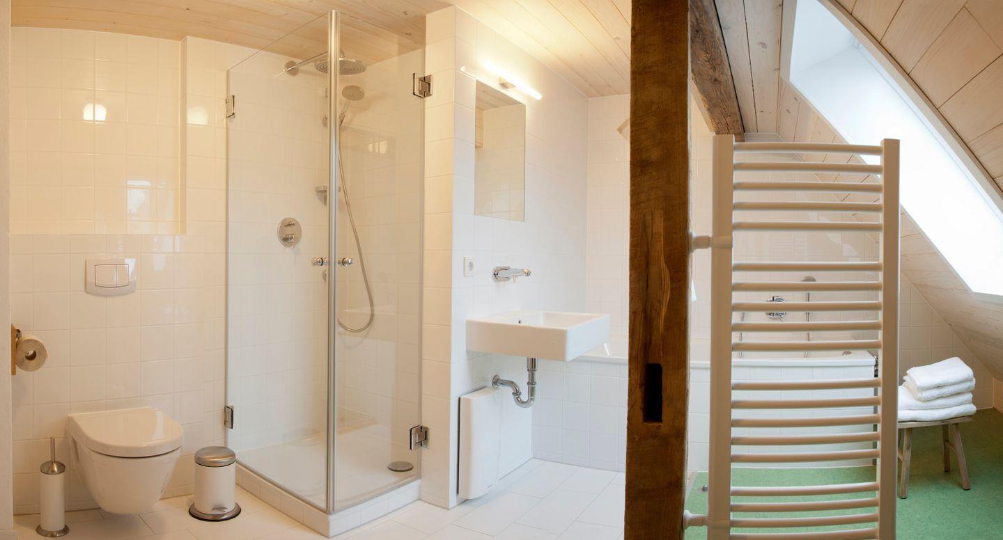 Ein Tageslichtbad mit Wanne und Dusche, sowie ein weiteres Duschbad lassen keinen morgendlichen Stau aufkommen.