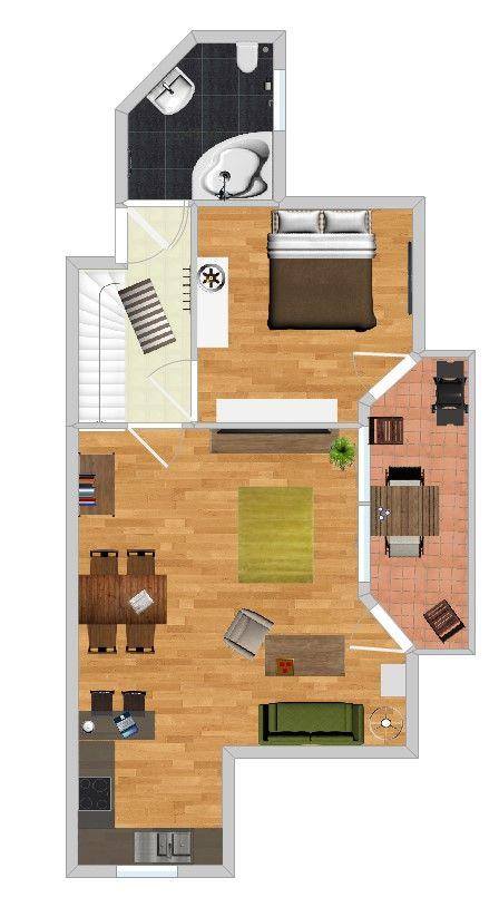 Auf dieser Ebene liegt auch ein komfortables Schlafzimmer mit Doppelbett und eigenem Balkonzugang. Das moderne Tageslichtbad mit Badewanne bietet zusätzlichen Komfort. Ein weiteres Schlafzimmer mit Doppelbett befindet sich im ausgebauten Spitzboden – gemütlich, ruhig und ideal für längere Aufenthalte.