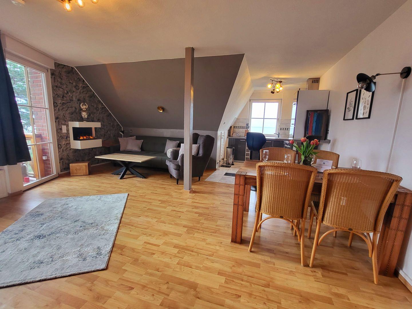Willkommen in der Ferienwohnung Blick auf Vilm – einem Platz, an dem Ruhe und Natur ihre ganz eigene Magie entfalten. Im ersten Obergeschoss einer kleinen Wohnanlage gelegen, erwartet Sie auf 73 m² eine liebevoll gestaltete Wohlfühloase, nur wenige Schritte vom Naturstrand der Neuendorfer Wiek entfernt.