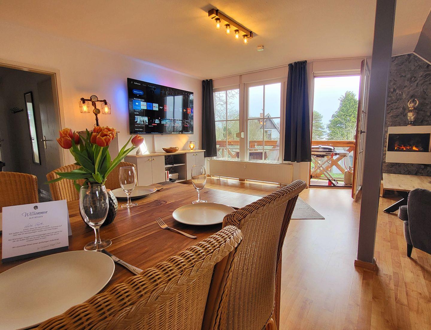 Nur ein paar Schritte vom Naturstrand entfernt öffnet die Ferienwohnung Blick auf Vilm den Blick auf Wasser, Weite und die stille Silhouette der Insel Vilm. Morgens fällt das erste Licht auf den Balkon, abends glüht der Horizont über der Bucht. Ein Kamin, zwei gemütliche Schlafzimmer und viel Raum zum Durchatmen machen diese Wohnung zu einem warmen Rückzugsort für Tage voller Küstenruhe.