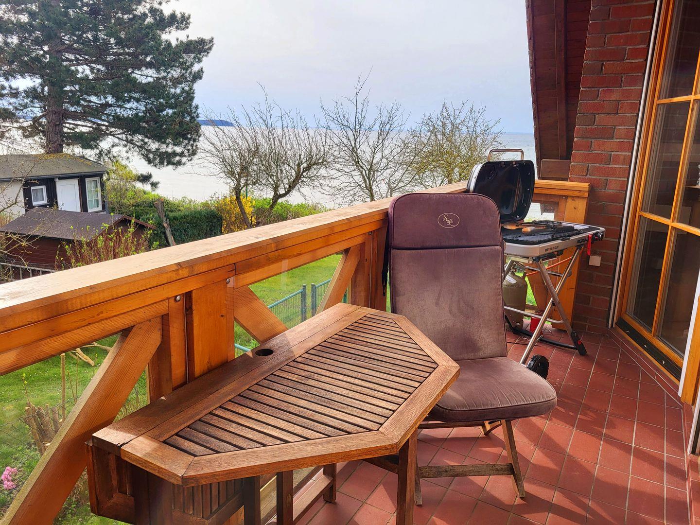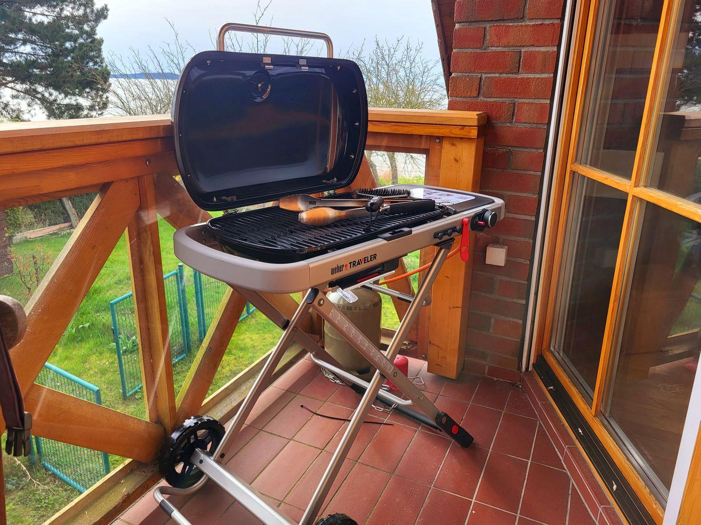 Von hier aus betreten Sie den sonnigen Balkon – ein Lieblingsplatz für jede Tageszeit. Genießen Sie den weiten Blick über die Bucht bis zur Insel Vilm, lauschen Sie dem Wasser und lassen Sie sich von den Farben des Himmels verzaubern. Für gesellige Abende steht ein Weber-Gasgrill bereit.