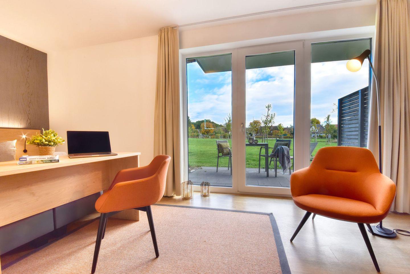 Wohnzimmer: Im gemütlichen Wohnzimmer erwartet Sie ein großzügiges Doppelbett, Hier können Sie nach einem erlebnisreichen Tag entspannen, TV schauen oder einfach den Blick in die Natur genießen.