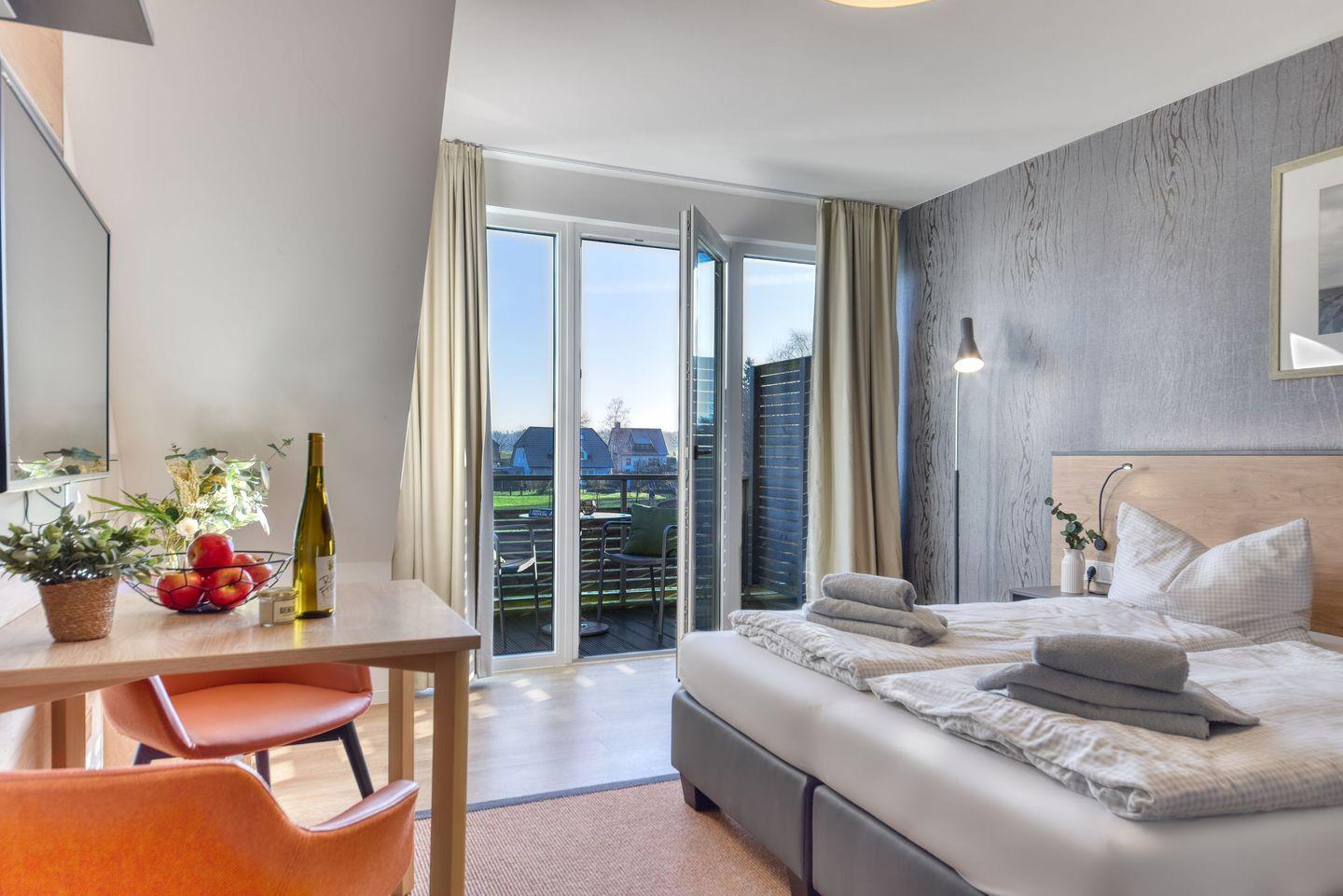 Wohnzimmer: Das gemütliche Wohnzimmer ist mit einem großzügigen Doppelbett ausgestattet, das Ihnen eine erholsame Nachtruhe garantiert. Hier können Sie nach einem erlebnisreichen Tag entspannen, TV schauen oder einfach den Blick in die Natur genießen.