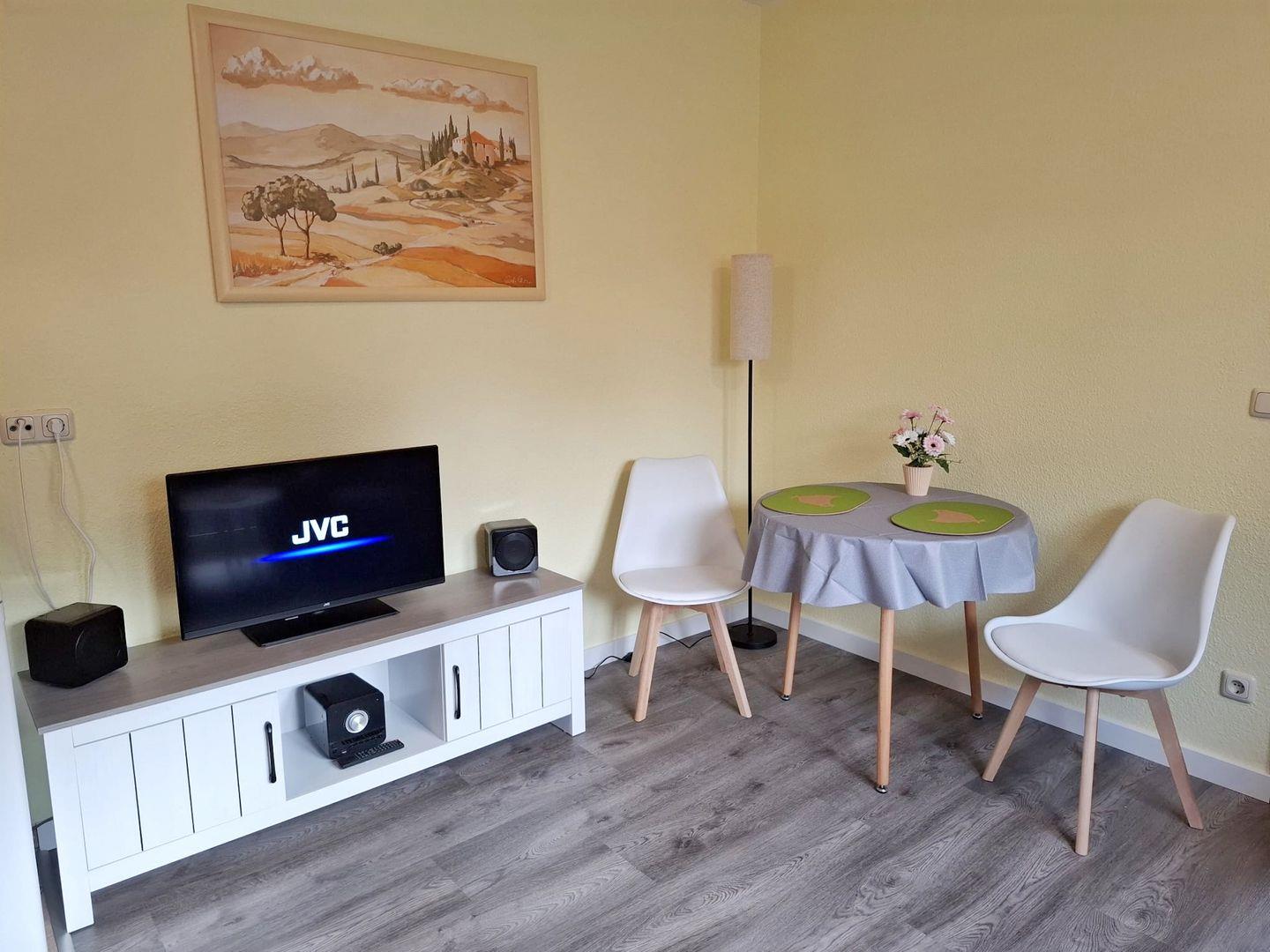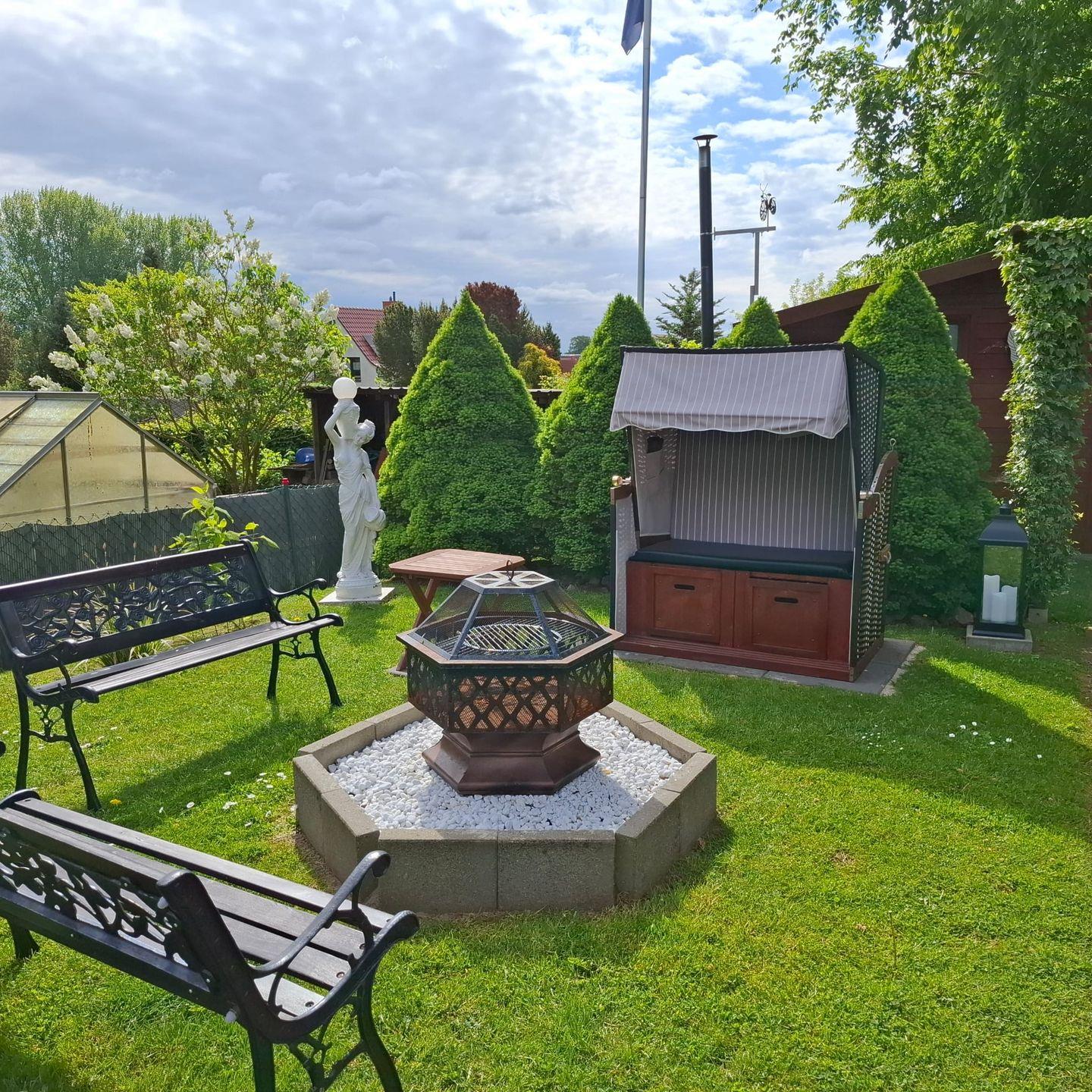 Gemütlichkeit strahlt die gesamte Wohnung durch ihre stilvoll gewählten Elemente aus. Vinylböden im Wohn- und Schlafzimmer sorgen nicht nur für ein einladendes Ambiente, sondern sind auch praktisch in der Reinigung. Ein Fernseher und ein Radio sind ebenfalls vorhanden, sodass Sie sich nach einem erlebnisreichen Tag entspannen können. Im großen Garten des Hauses gibt es für Sie ein gemütliches Plätzchen mit Strandkorb und Grill, um schöne Sommerabende draußen genießen zu können.