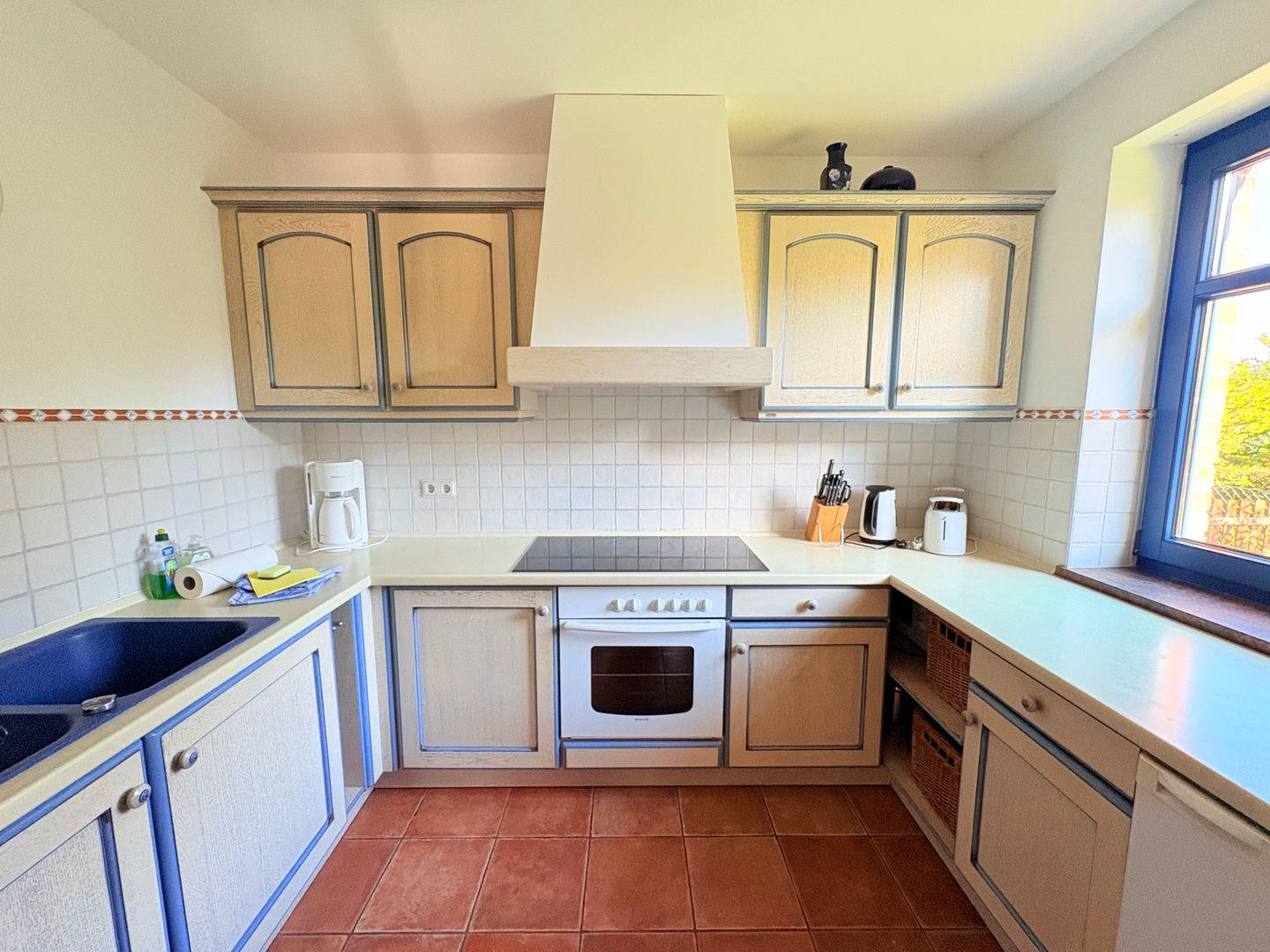 Die Küche ist durch eine Glas-/Fachwerkwand mit Glastür vom Wohn-/Essbereich abgetrennt und verfügt über einen Dunstabzug nach außen. (Besonders wichtig für Leute, die gerne kochen.)