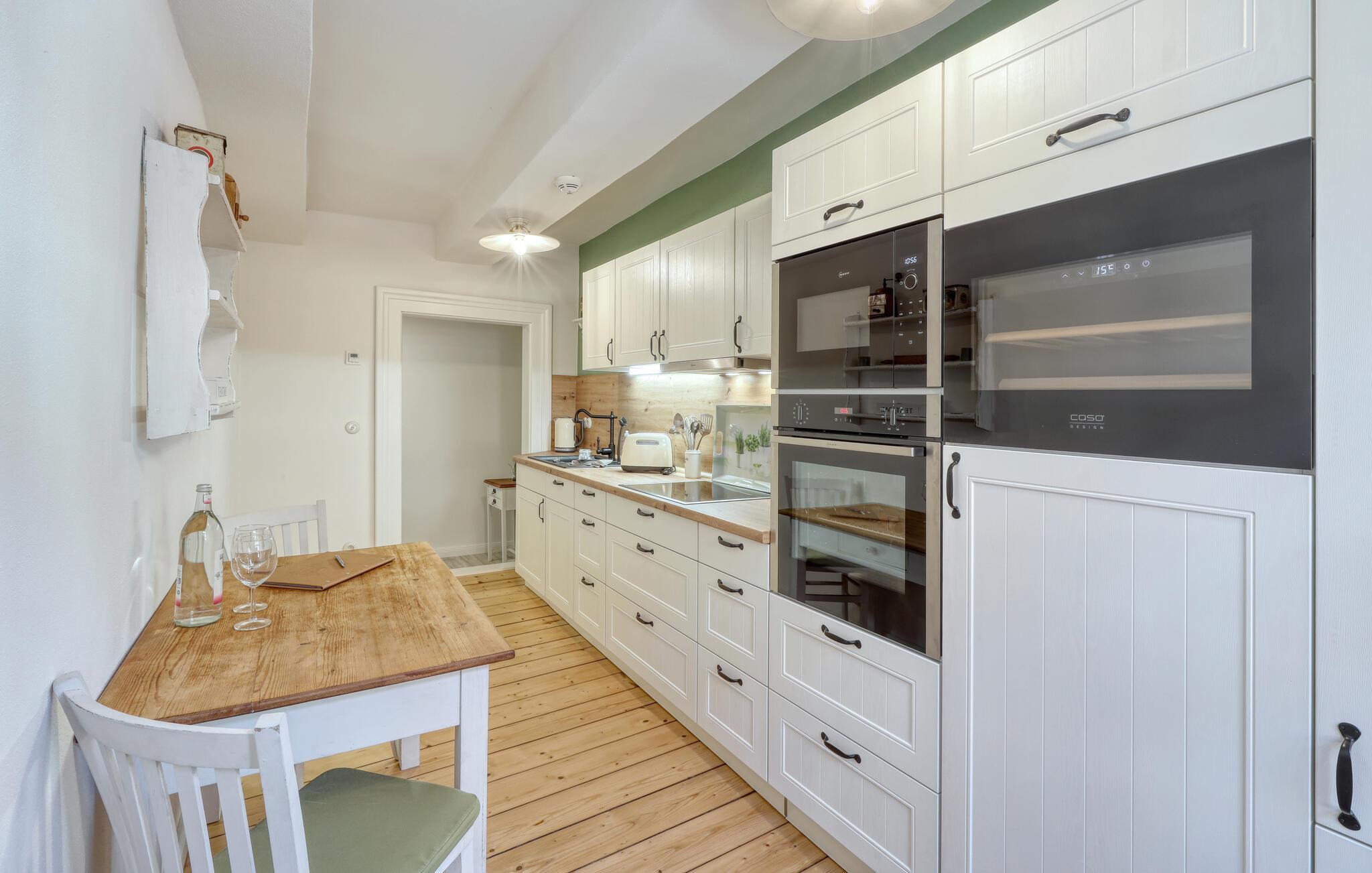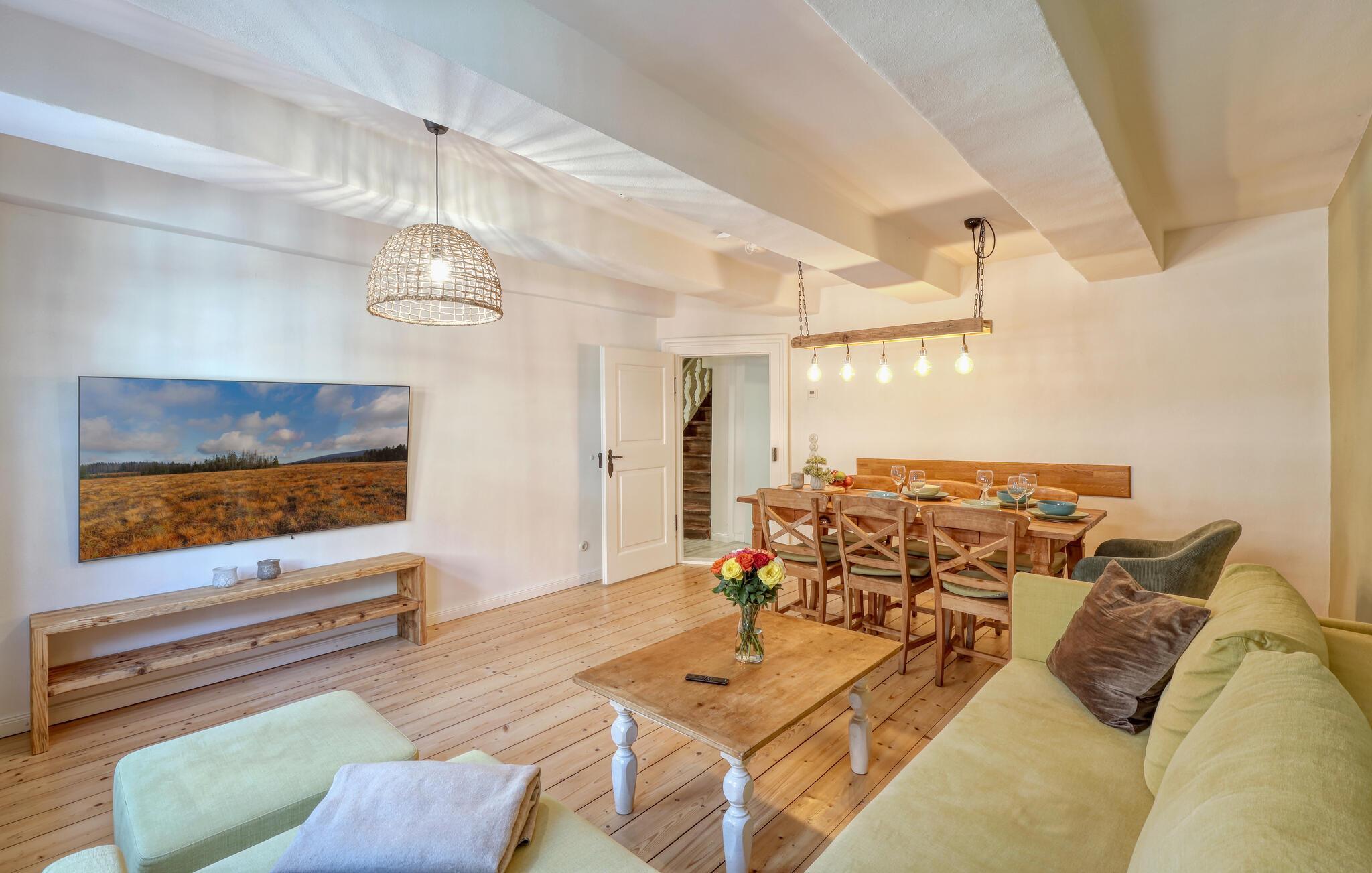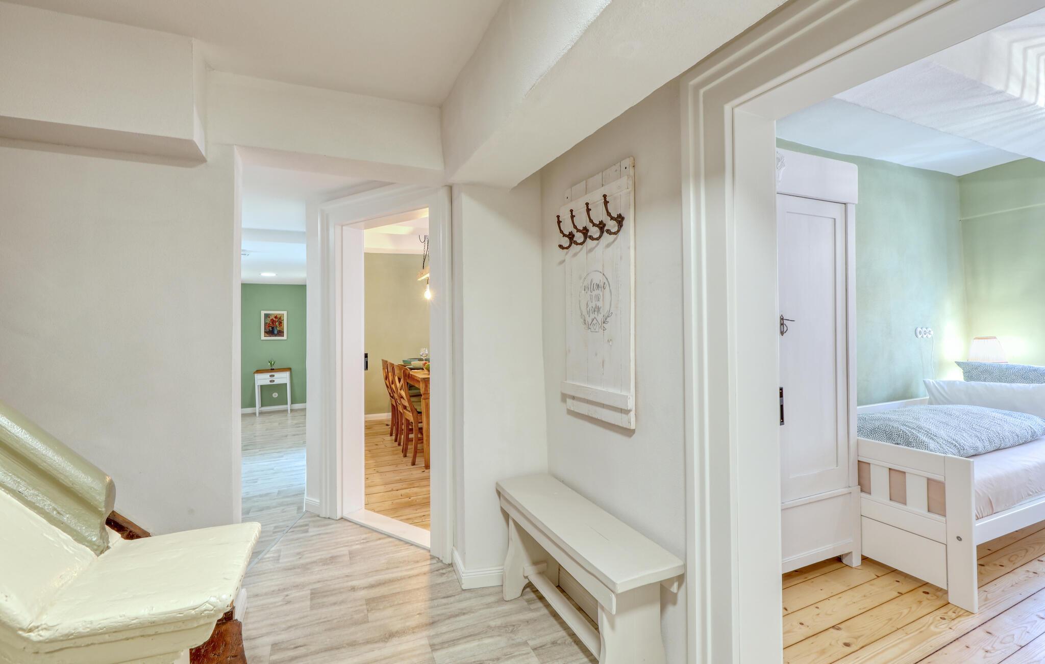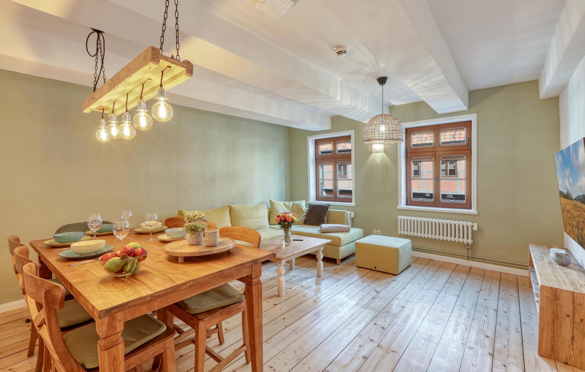 Velkommen til denne skønne lejlighed, som byder sine gæster velkommen med lyse, stilfuldt indrettede værelser i en historisk bygning, hvis lange historie ikke mindst viser sig i de dekorative træbjælker. Føl jer godt tilpas her med dine kære og nyd komforten og den smagfulde atmosfære. Slap af i saunaen, som deles med andre gæster, og hold jer i form selv på ferien med fitnessudstyret. Nyd din første kaffe og et par solstråler på terrassen, inden I begiver jer ud i dine aktiviteter.