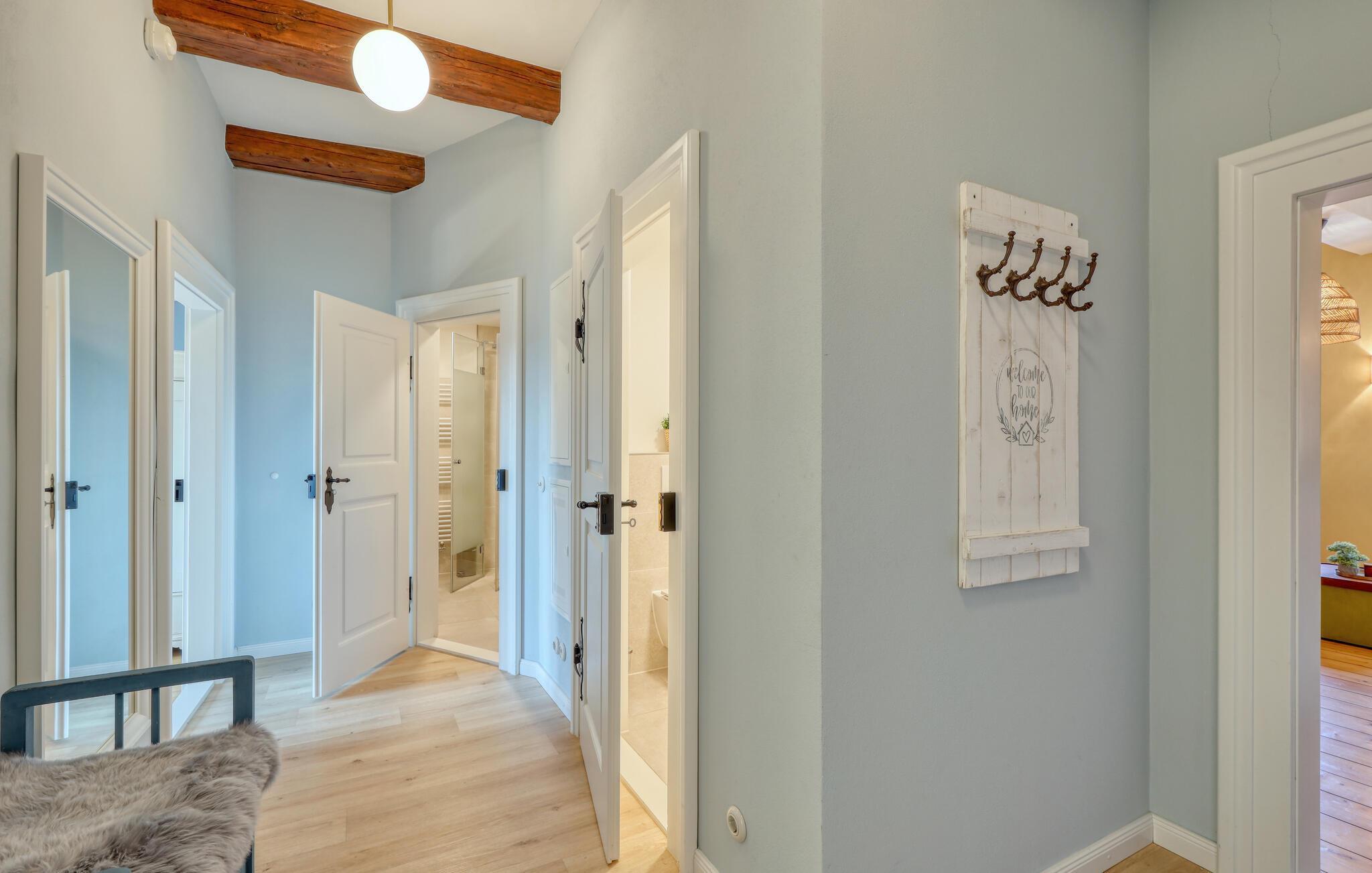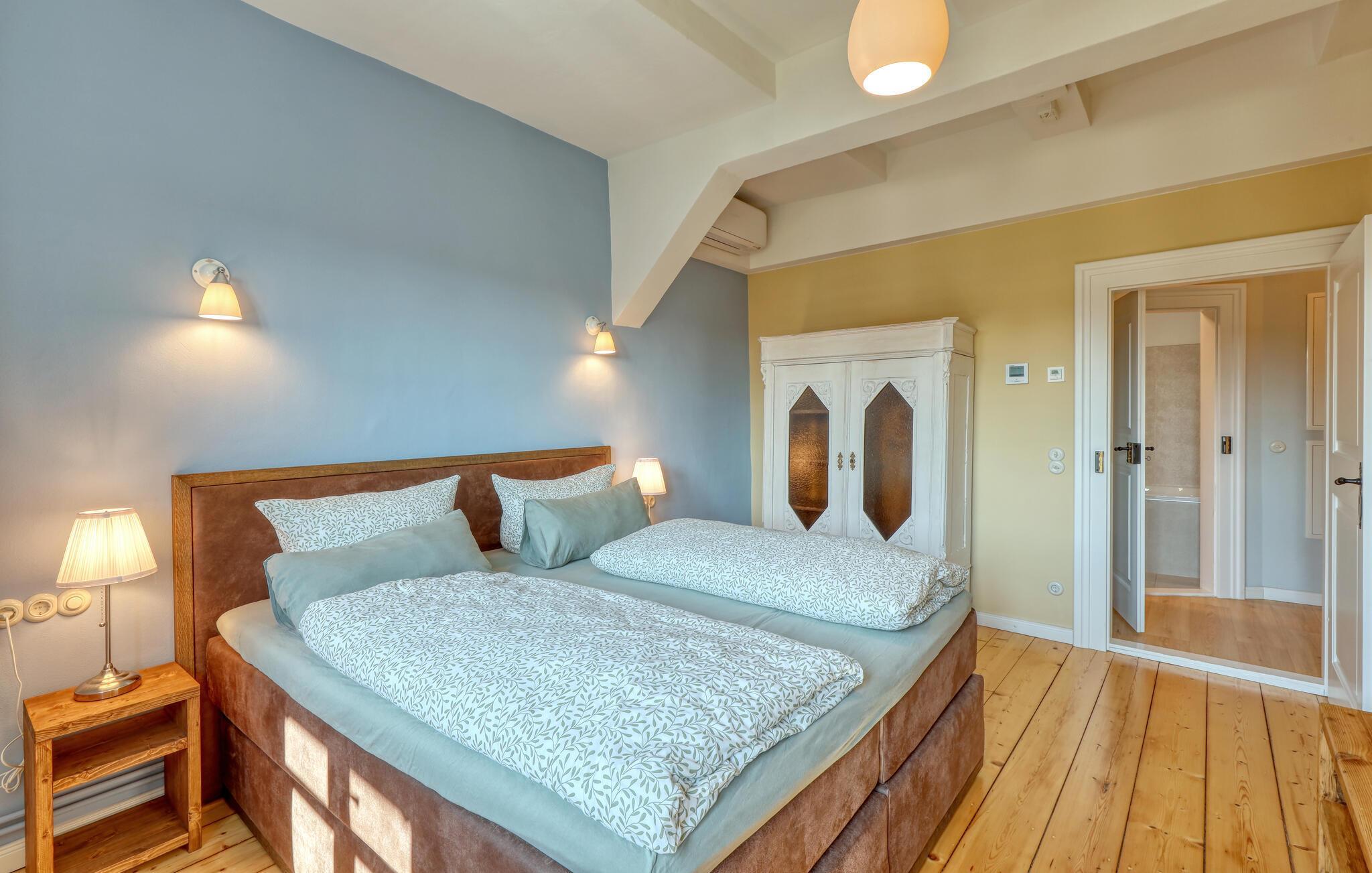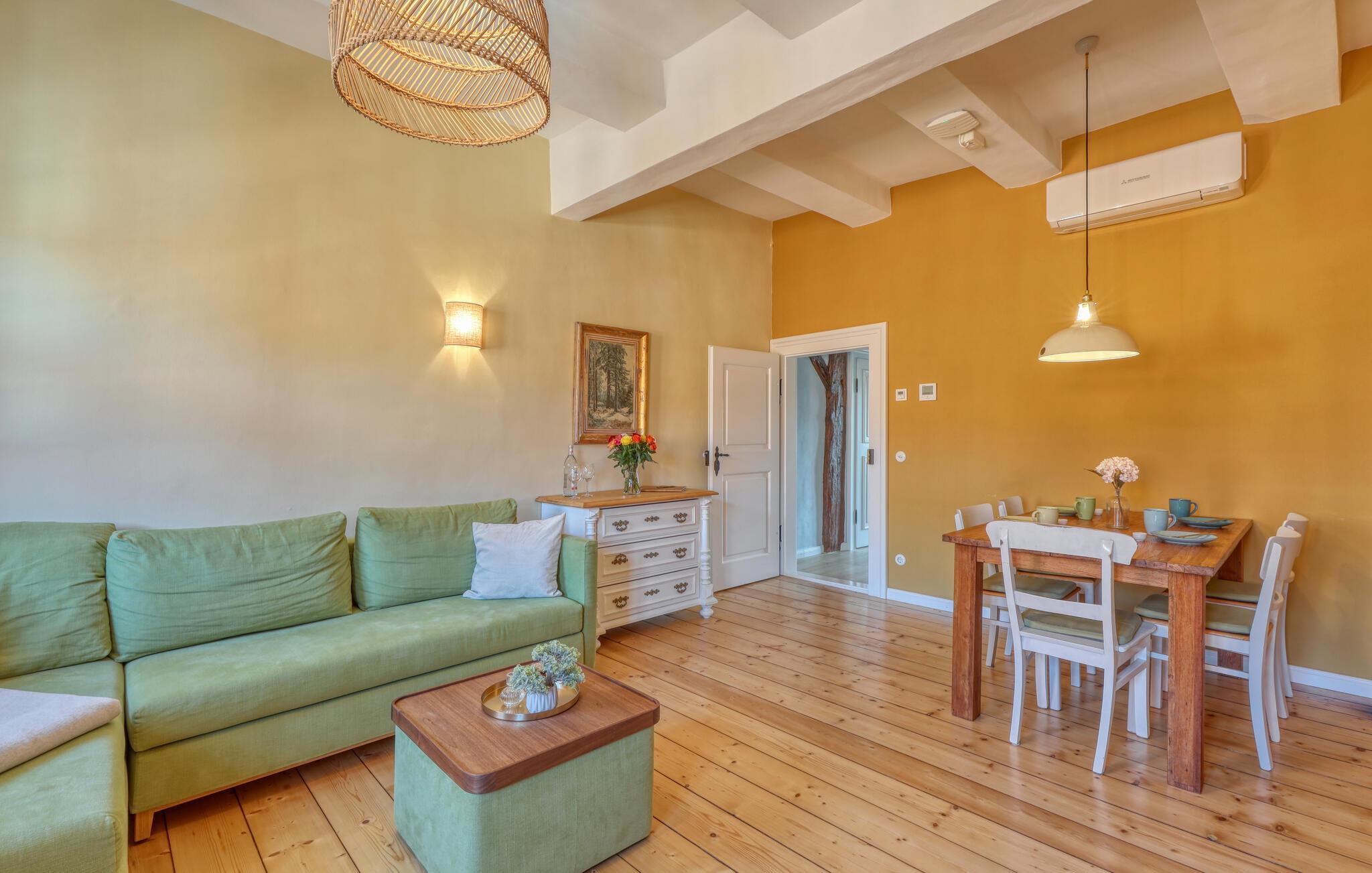 Velkommen til denne smukke lejlighed, der byder sine gæster velkommen med lyse, stilfuldt indrettede værelser i en historisk bygning. Føl jer godt tilpas her med dine kære og nyd komforten og den smagfulde atmosfære. Slap af i saunaen, som deles med andre gæster, og hold jer i form selv på ferien med fitnessudstyret. Nyd din første kaffe og et par solstråler på altanen eller terrassen, inden I begiver jer ud i dine aktiviteter.