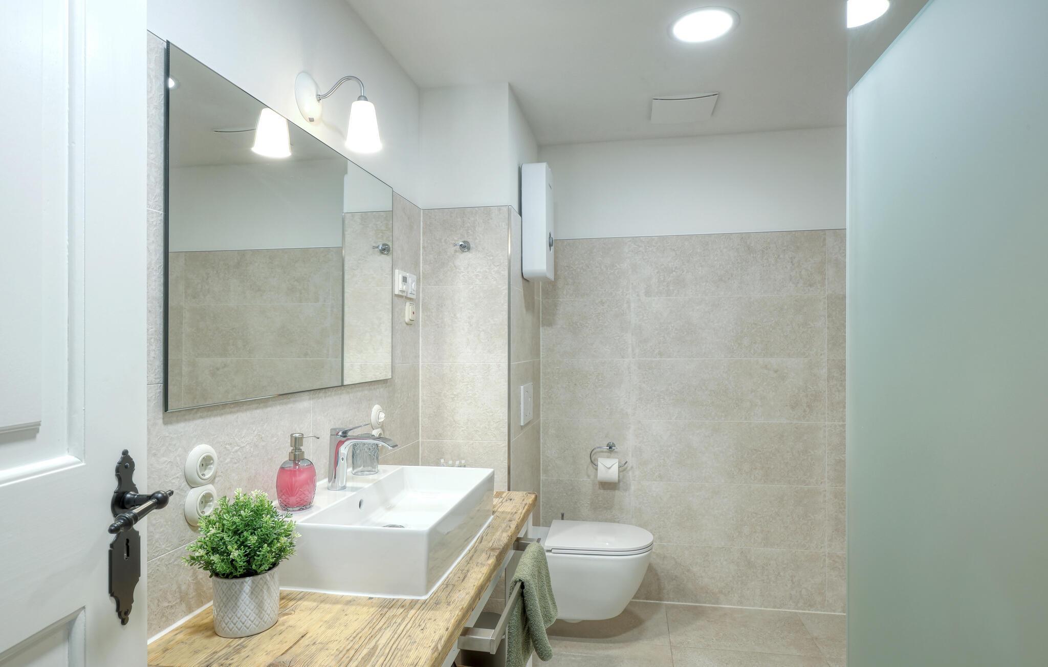 Badeværelse (nr. 1) - WC. Varmt og koldt vand. Bruser
