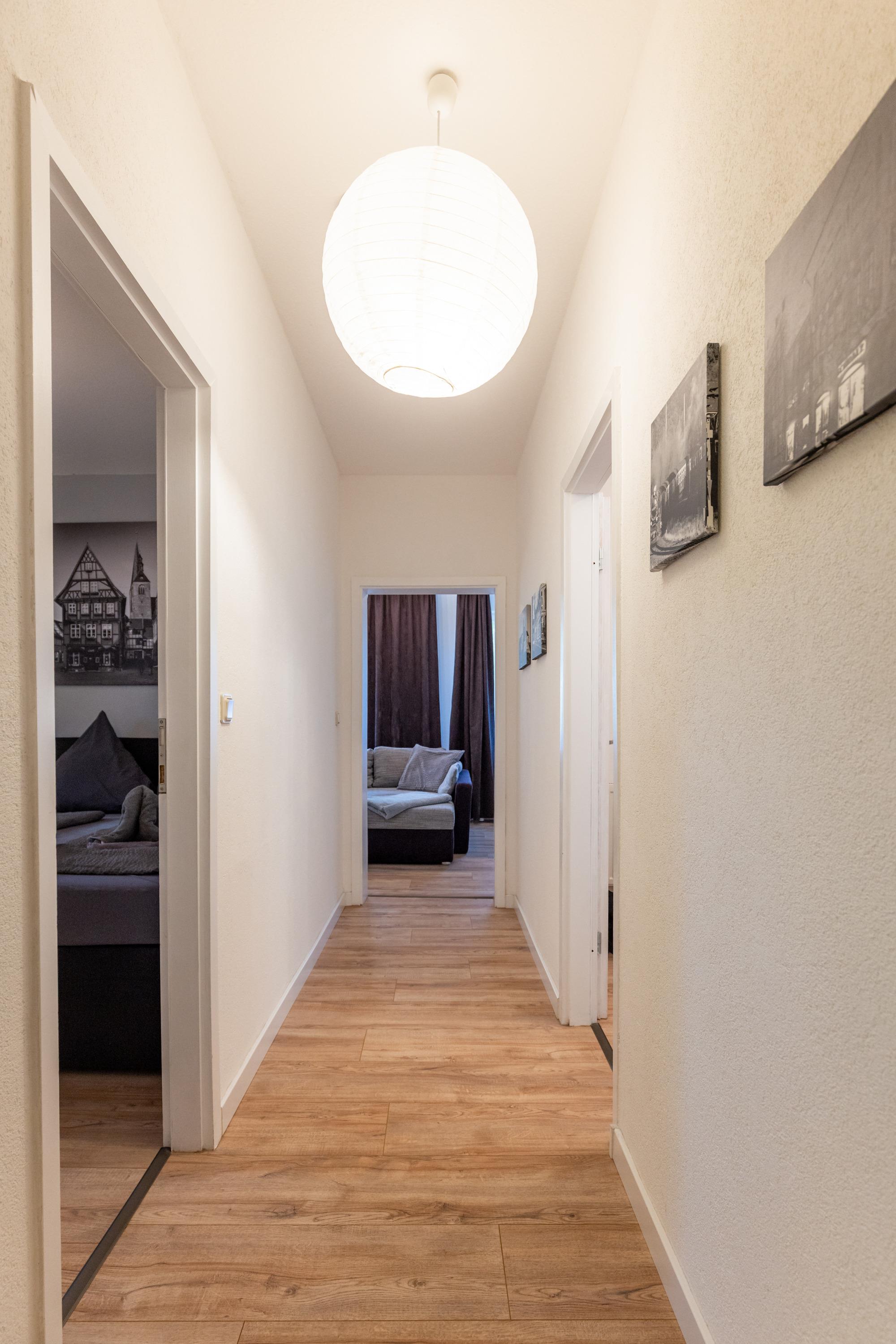 Unsere Ferienwohnung "Zum rost’gen Potte" ist zwar ein echtes Denkmal, trotzdem modern eingerichtet und wurde 2021 frisch renoviert. Im Schlafzimmer entspannen Sie auf einem breiten Boxspringbett - Ihr Gepäck verstauen Sie bequem im separaten Kleiderschrank. Im Wohnzimmer wartet eine moderne ausziehbare Wohnlandschaft auf Sie - genießen Sie Ihren Abend bei einem guten Glas Wein und einem Buch oder machen Sie sich einen gemütlichen Fernsehabend vor unserem Flachbild-TV! Die Wohnlandschaft kann bei Bedarf auch in eine zweite Schlafmöglichkeit mit einer Breite von ca. 1,40m verwandelt werden. Zusätzlich gibt es im Wohnzimmer einen separaten Eßbereich. Die modern eingerichtete Küche verfügt über einen Herd mit Ceranfeld, Backofen, Spülmaschine, Kühlschrank mit Tiefkühlfach, Wasserkocher, Kaffeemaschine und Toaster. Im Bad finden Sie Dusche, Waschbecken und WC. Die Ferienwohnung verfügt über kostenloses W-Lan. Fahrräder können in der Hofdurchfahrt sicher und überdacht abgestellt werden.