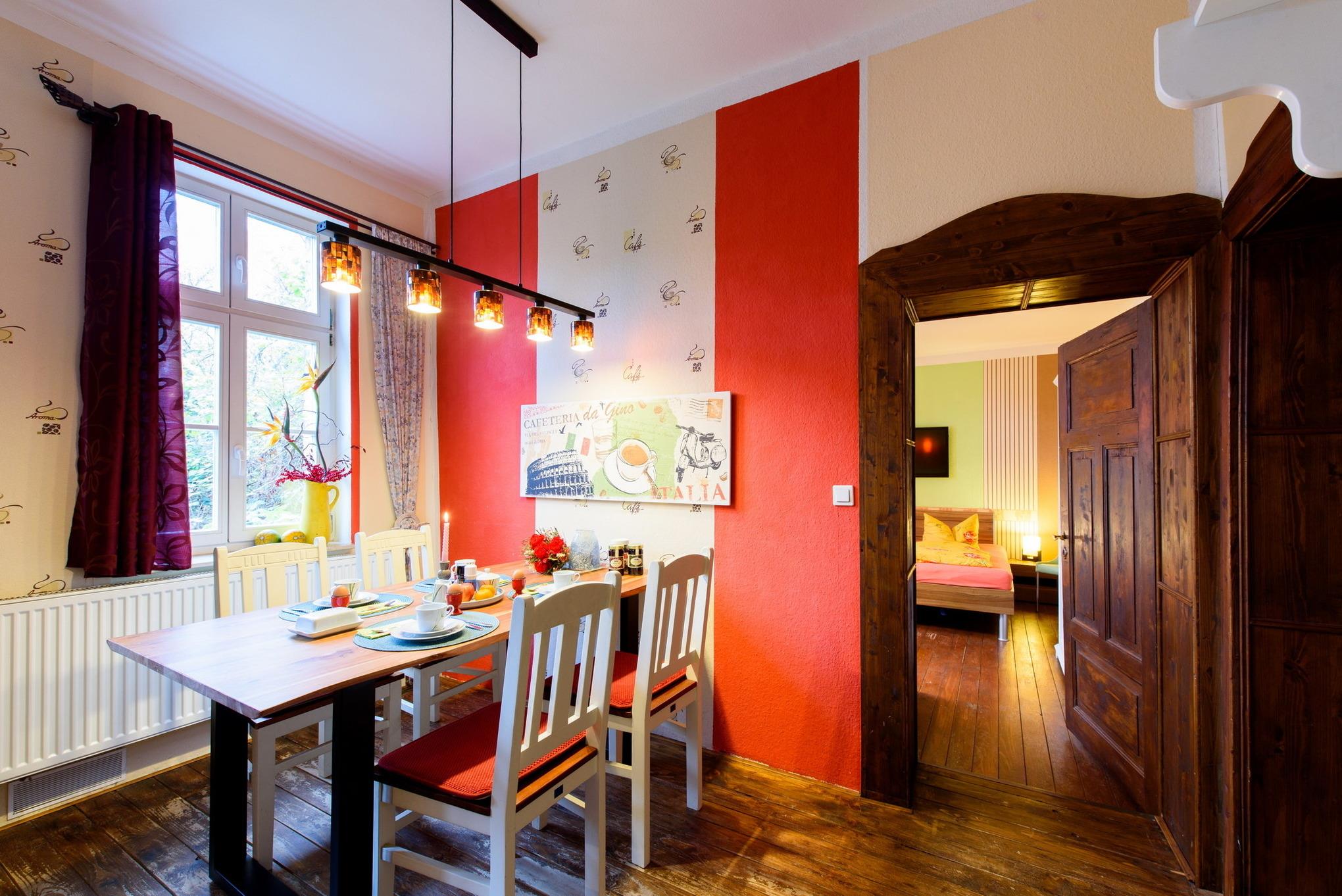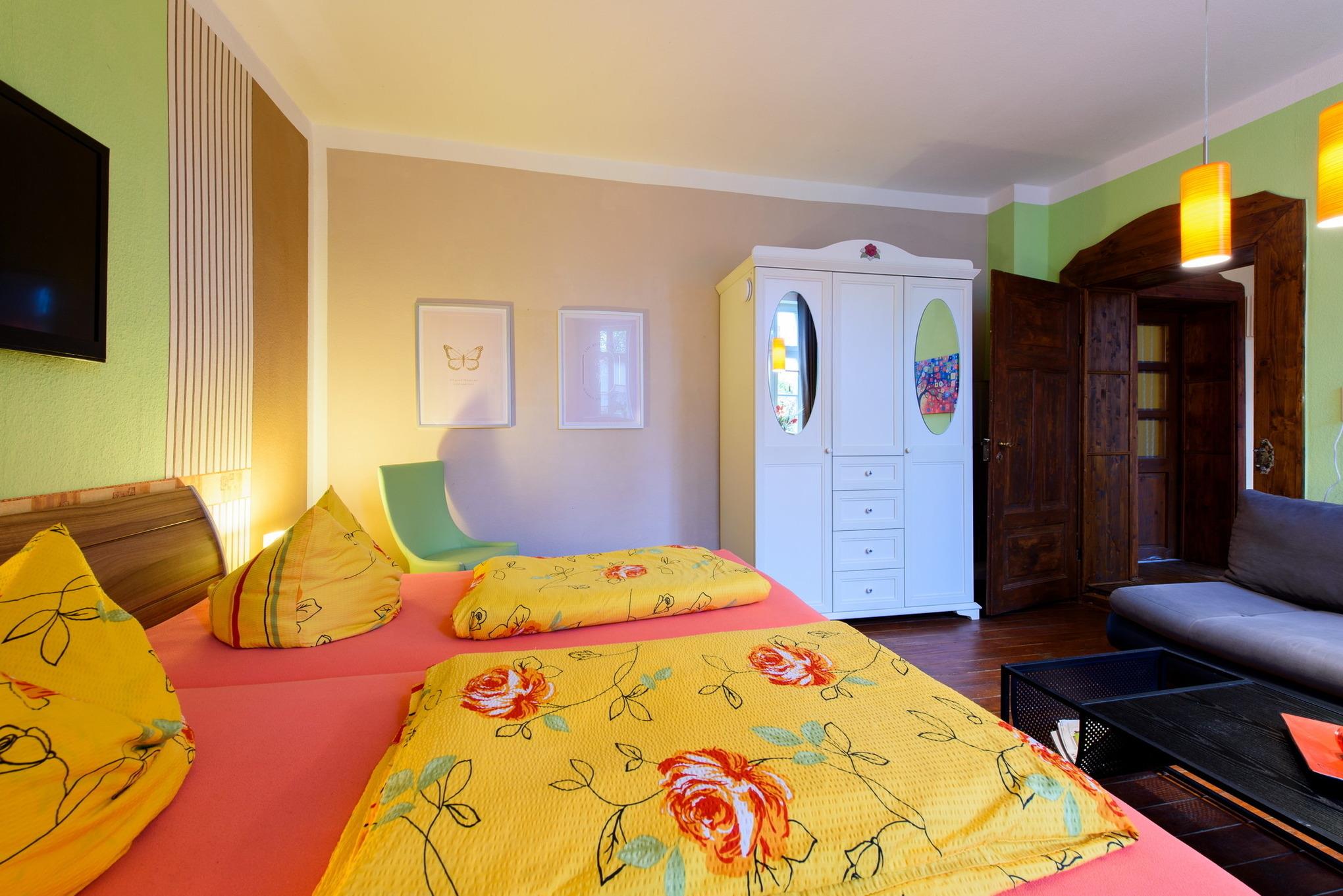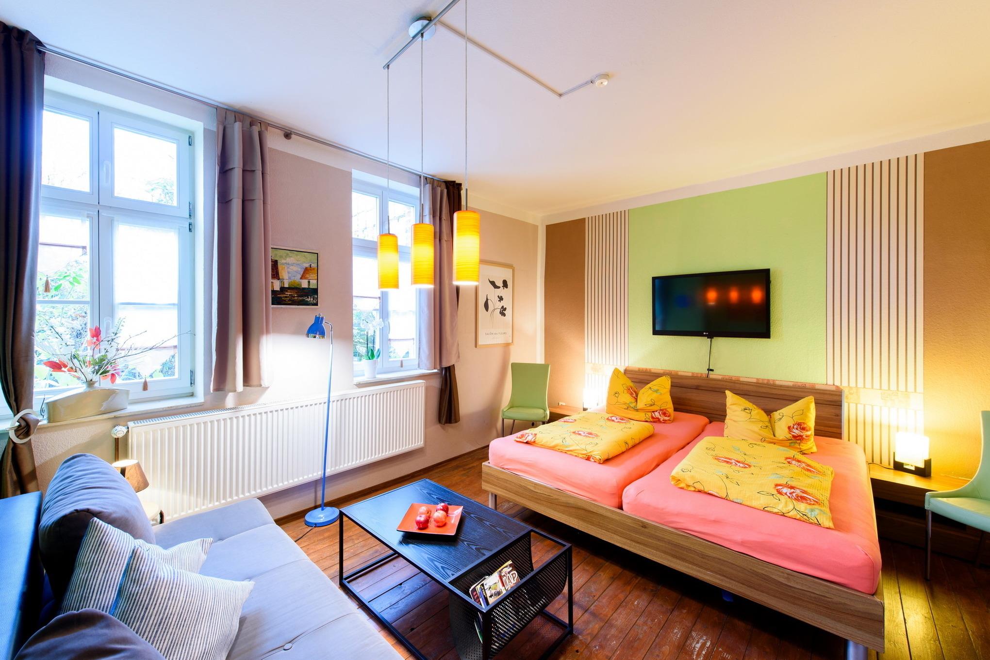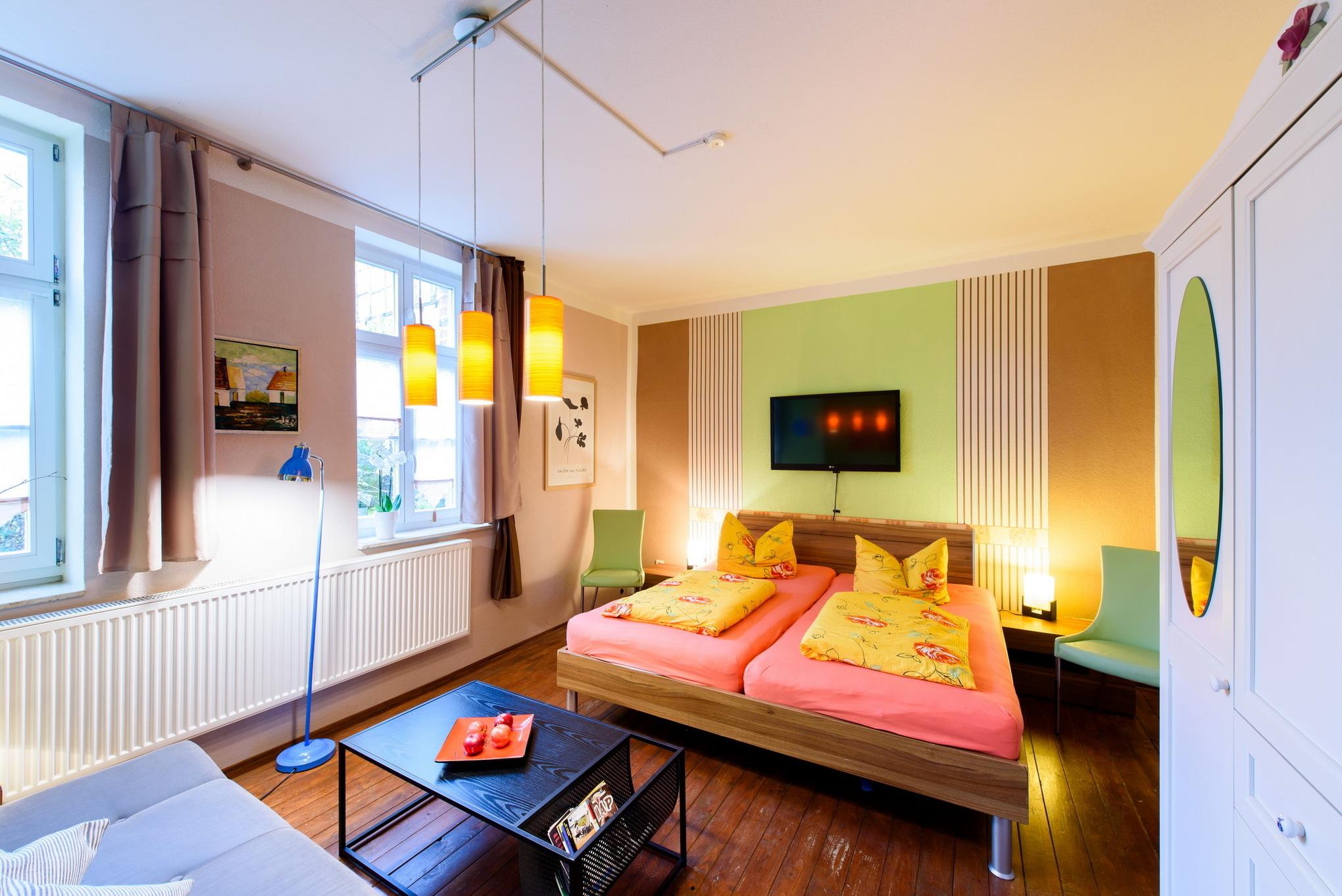 Es erwarten Sie eine Wohnungen, die entsprechend geprägt ist vom Ambiente der alten Zeit und dennoch allen Komfort unserer Neuzeit bieten. All unsere Zimmer strahlen eine farbenfrohe Freundlichkeit aus, die nicht vergessen lässt, dass man sich im Urlaub befindet. Wir wollen Ihnen nicht nur eine Herberge bieten, um unsere 1000-jährige Fachwerkstadt kennen zu lernen, sondern auch ein wohliges Gefühl an eine besondere und interessante Unterkunft vermitteln.