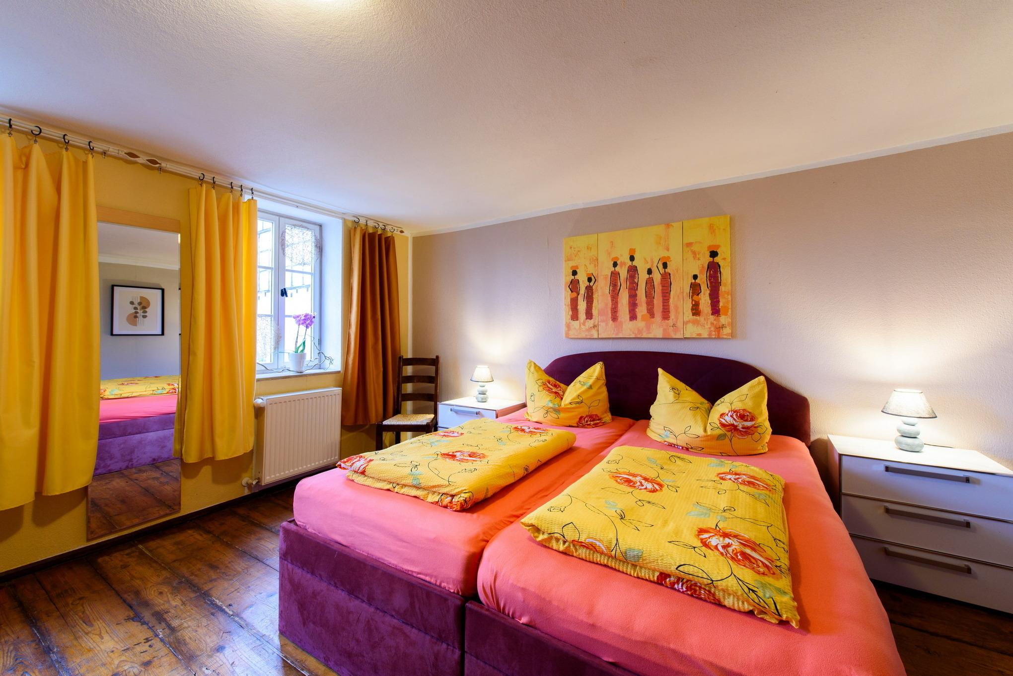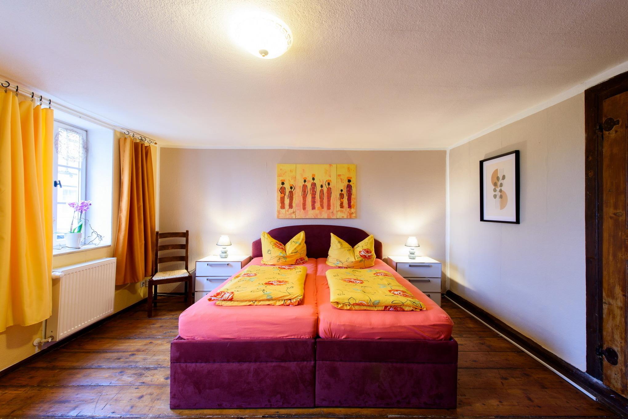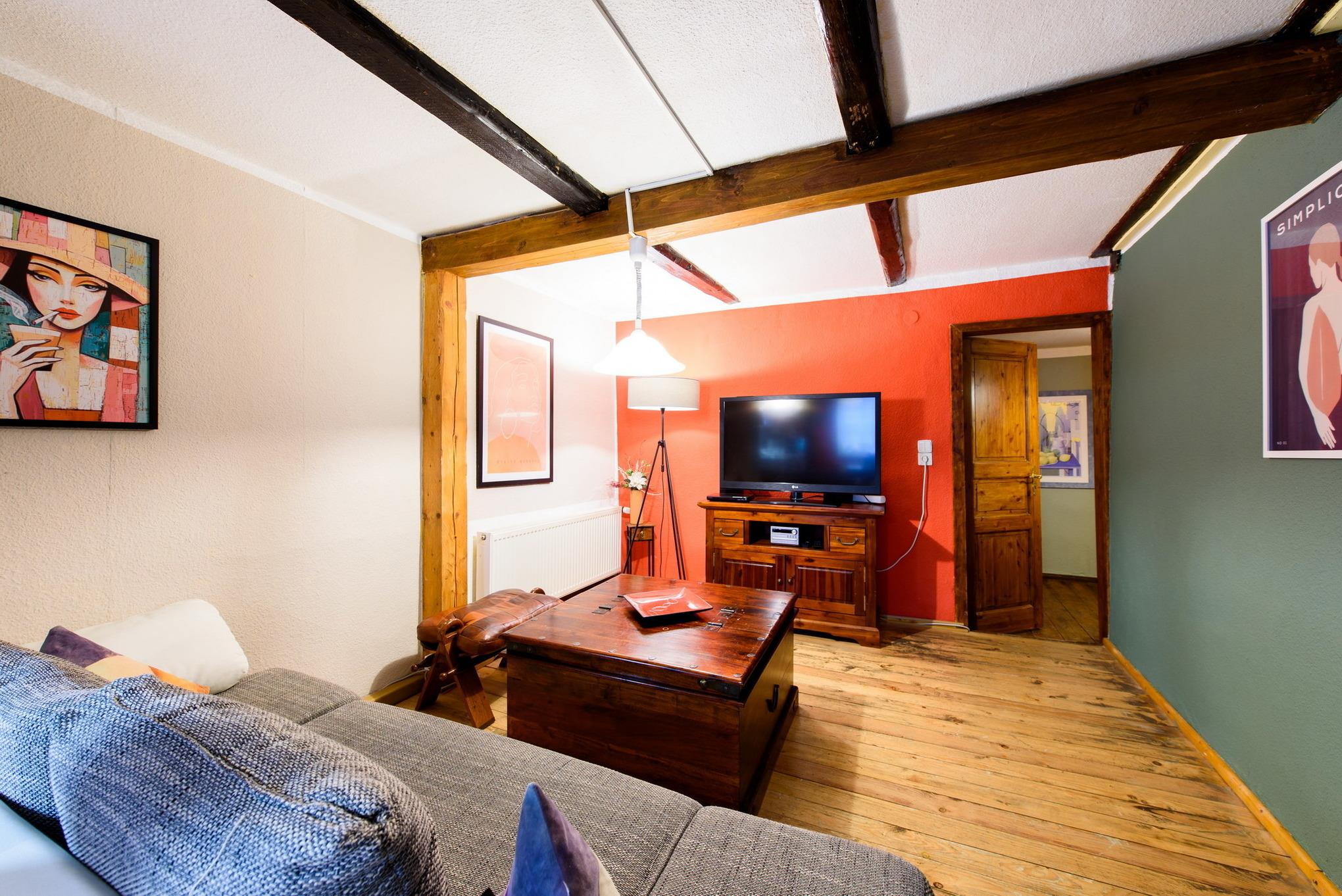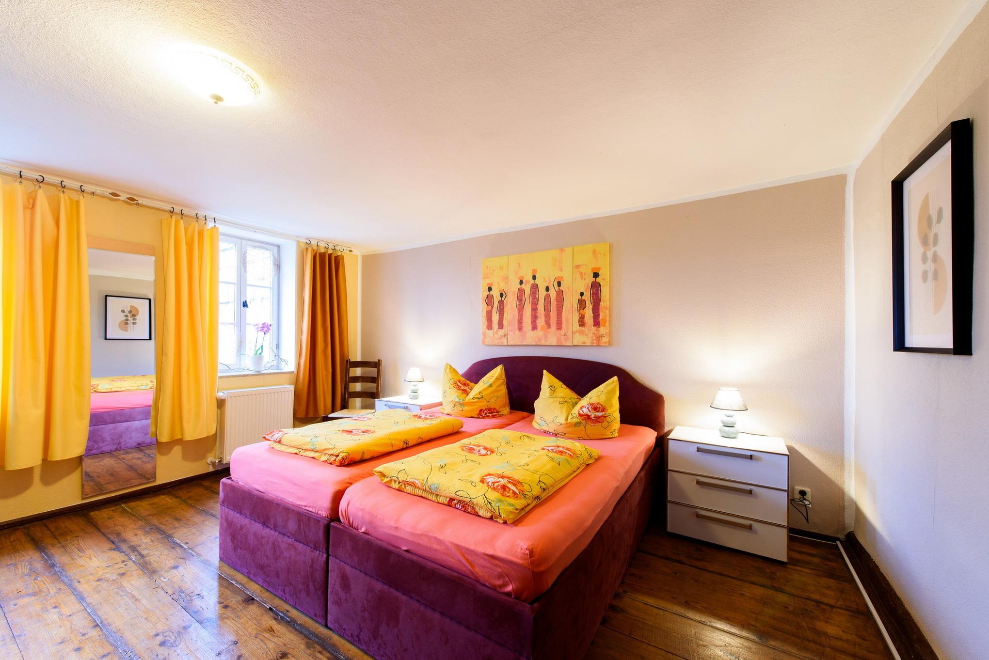 Es erwarten Sie eine Wohnungen, die entsprechend geprägt ist vom Ambiente der alten Zeit und dennoch allen Komfort unserer Neuzeit bieten. All unsere Zimmer strahlen eine farbenfrohe Freundlichkeit aus, die nicht vergessen lässt, dass man sich im Urlaub befindet. Wir wollen Ihnen nicht nur eine Herberge bieten, um unsere 1000-jährige Fachwerkstadt kennen zu lernen, sondern auch ein wohliges Gefühl an eine besondere und interessante Unterkunft vermitteln.