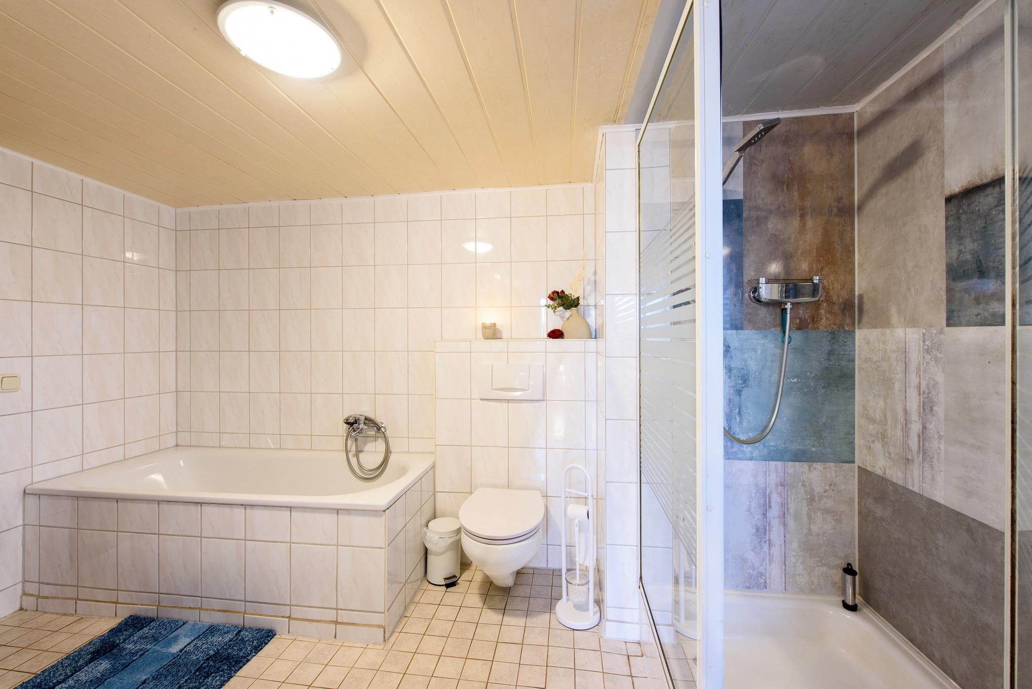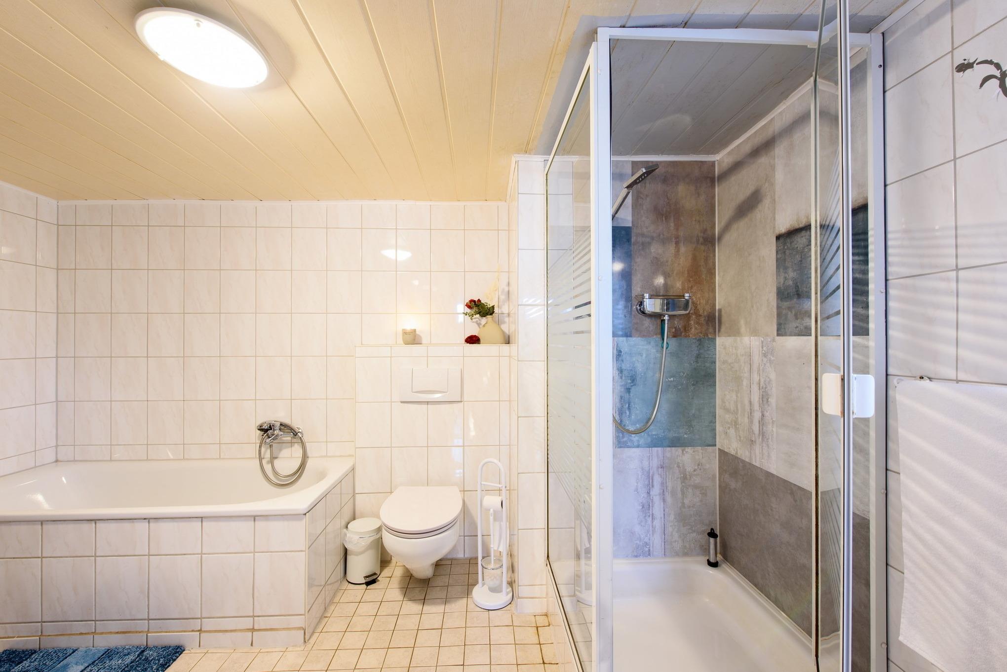 Badeværelse med bruser og badekar