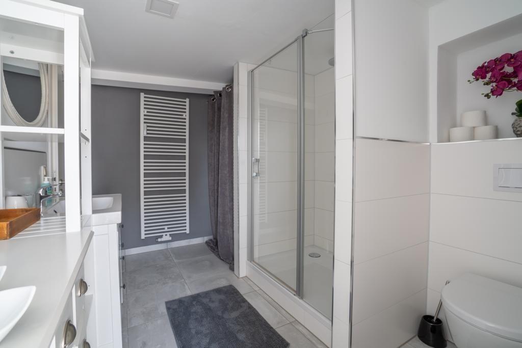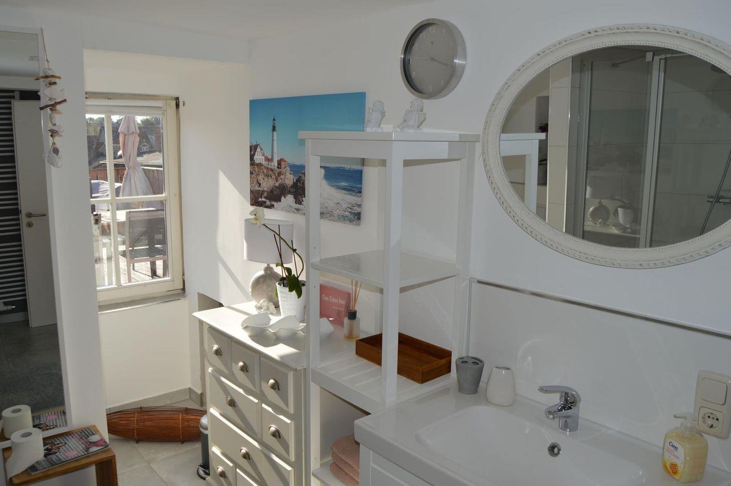 Das Badezimmer bietet Ihnen eine XXL Dusche, Fön, und einem Bügeleisen. Das Apartment hat insegesamt drei vollwertige Räume. Zwei abgeschlossene Schlafzimmer, 1. SZ mit einem Doppelbett und das 2. SZ mit zwei Einzelbetten.