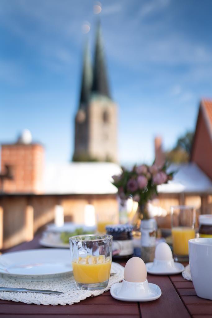 Die Dachterrasse ist himmlisch und lädt zum verweilen und entspannen ein, egal ob zum Frühstück oder zum Abendessen. Genießen Sie den Ausblick auf die Nikolaikirche und die Dächer der Quedlinburger Neustadt. Für die Mietdauer steht Ihnen selbstverständlich ein Stellplatz in unmittelbarer Umgebung zur Verfügung.