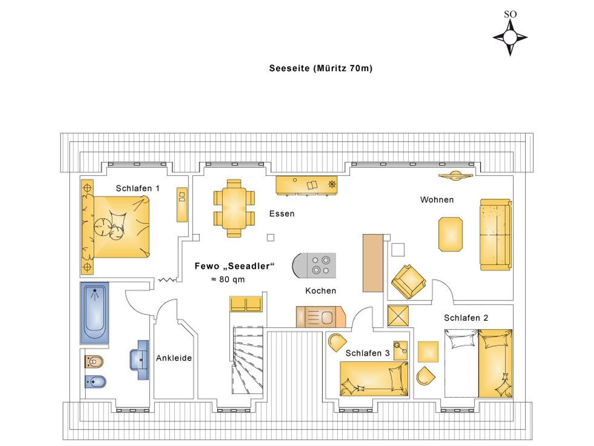 Haus Kleines Meehr - Ferienwohnungen an der Müritz, Ferienwohnung Seeadler