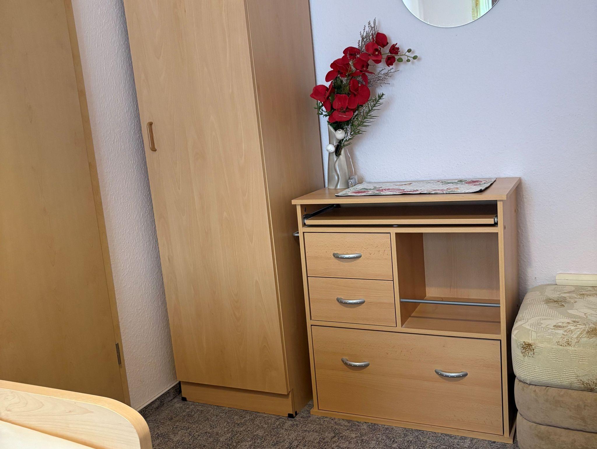 Unsere helle und freundliche Wohnung verfügt über einen kombinierten Wohn- und Küchenbereich, der dafür sorgt, dass Sie sich sofort wie zu Hause fühlen. Das Schlafzimmer ist mit getrennten Betten ausgestattet, sodass Sie erholsame Nächte genießen können. Das moderne Badezimmer mit Dusche und WC rundet das Angebot ab.
