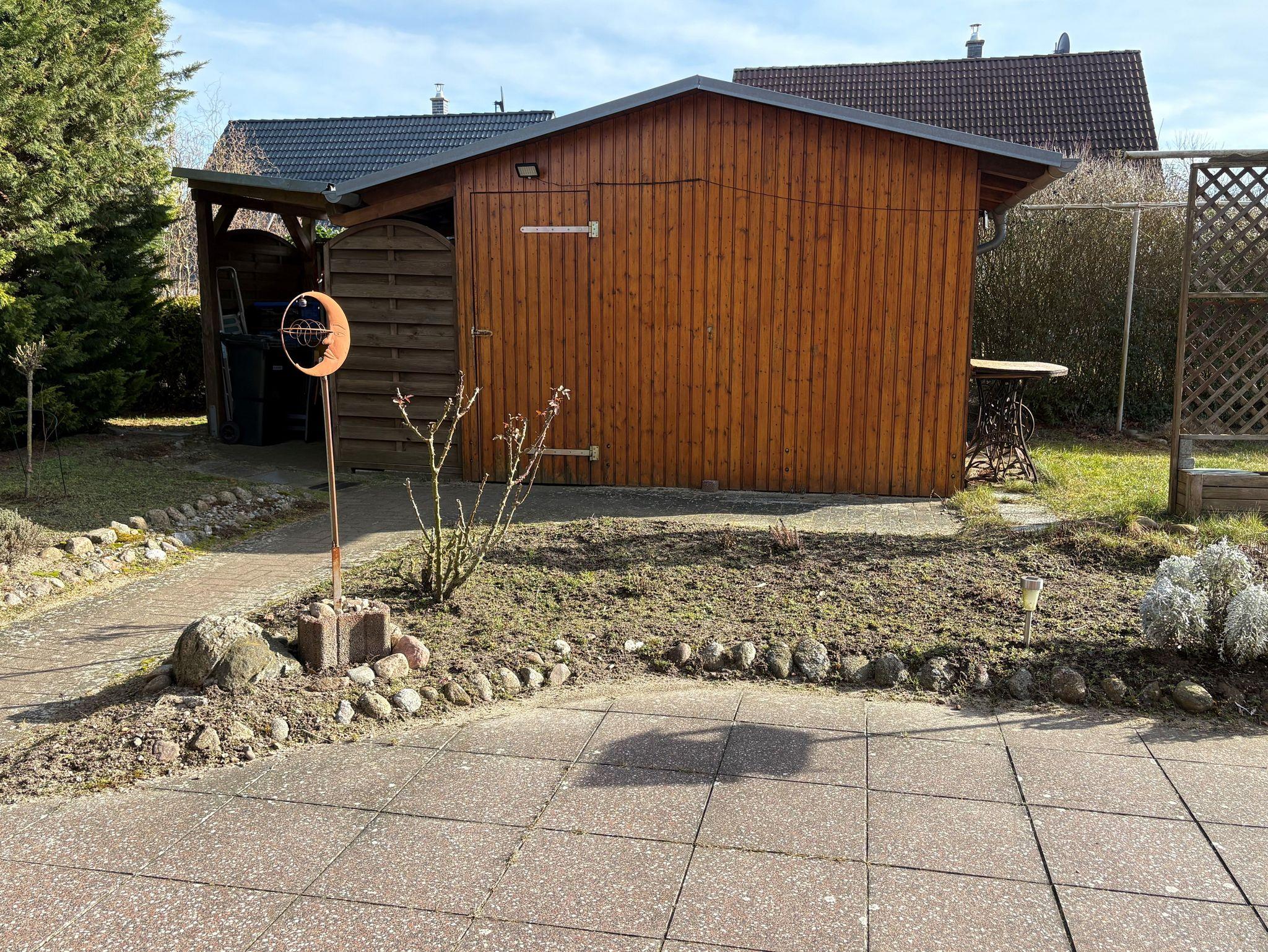 Die ruhige Ferienwohnung ist voll ausgestattet. Sie verfügt über eine Terasse mit Blick in den Garten. Sie können einen Carport nutzen zum abstellen ihres PKWs und die Fahrräder in einen abschließbaren Schuppen unterstellen und dort bei Bedarf auch mit Strom aufladen.
