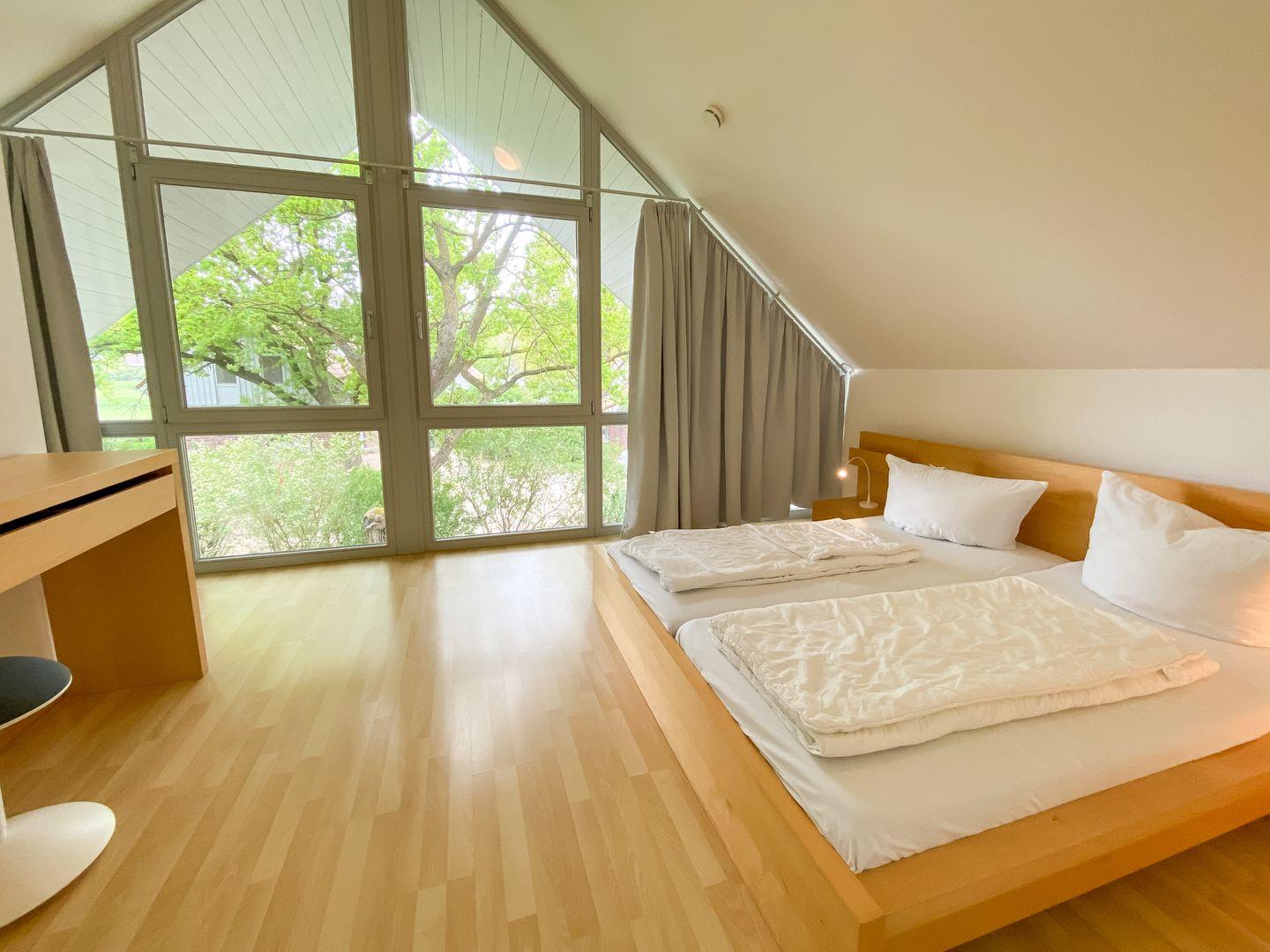 Im Obergeschoss befinden sich 3 Schlafzimmer, die jeweils mit einem Doppelbett ausgestattet sind und ein weiteres Duschbad.
