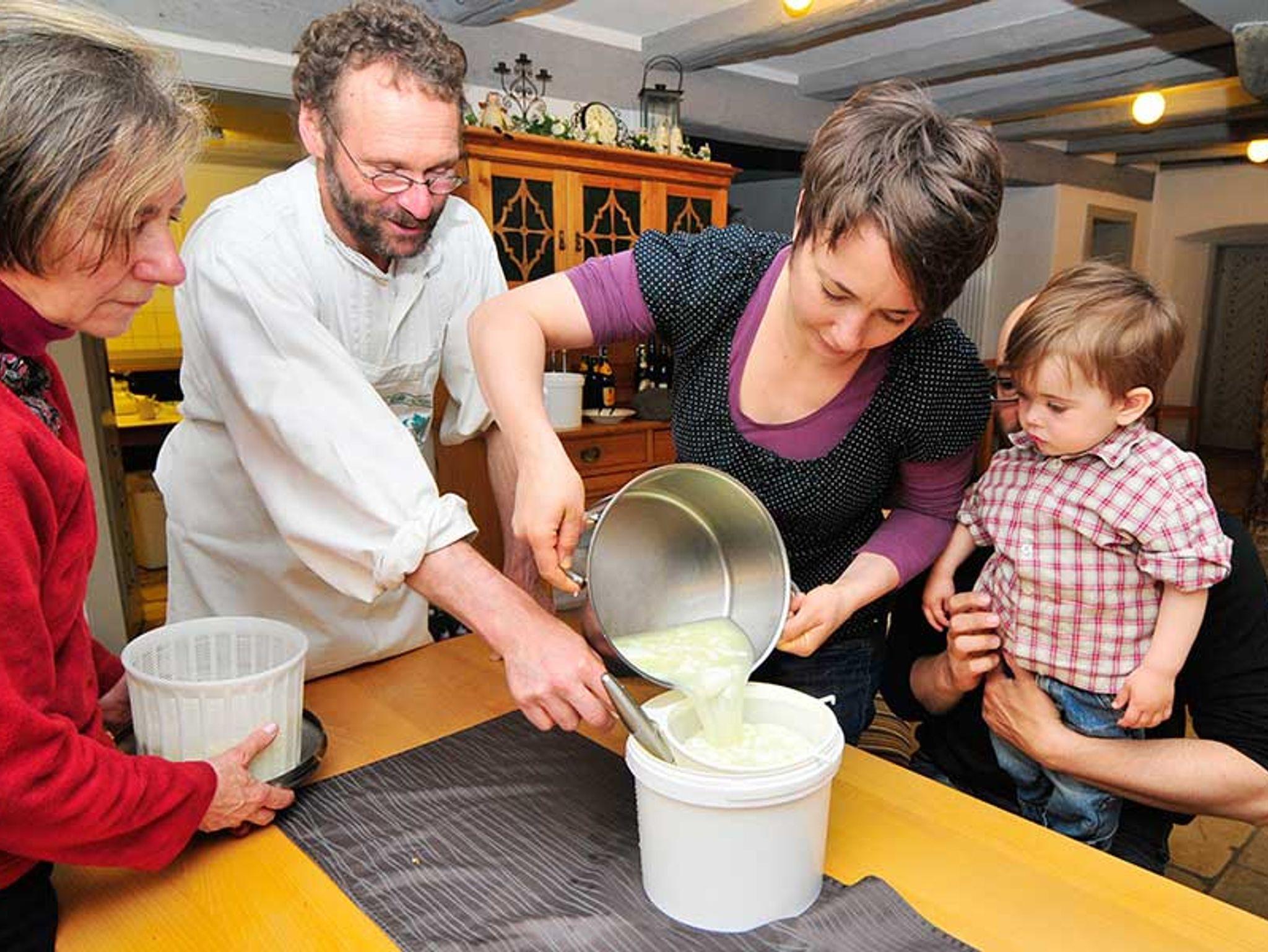 Wir sind ein landwirtschaftlicher Familienbetrieb am Fuße des Hesselbergs. Die Milch unserer 16 Kühe verarbeiten wir auf dem Hof zu verschiedenen Käsesorten. Bei unserem Käseseminar weihen wir Sie in die Geheimnisse des Käsemachens ein.