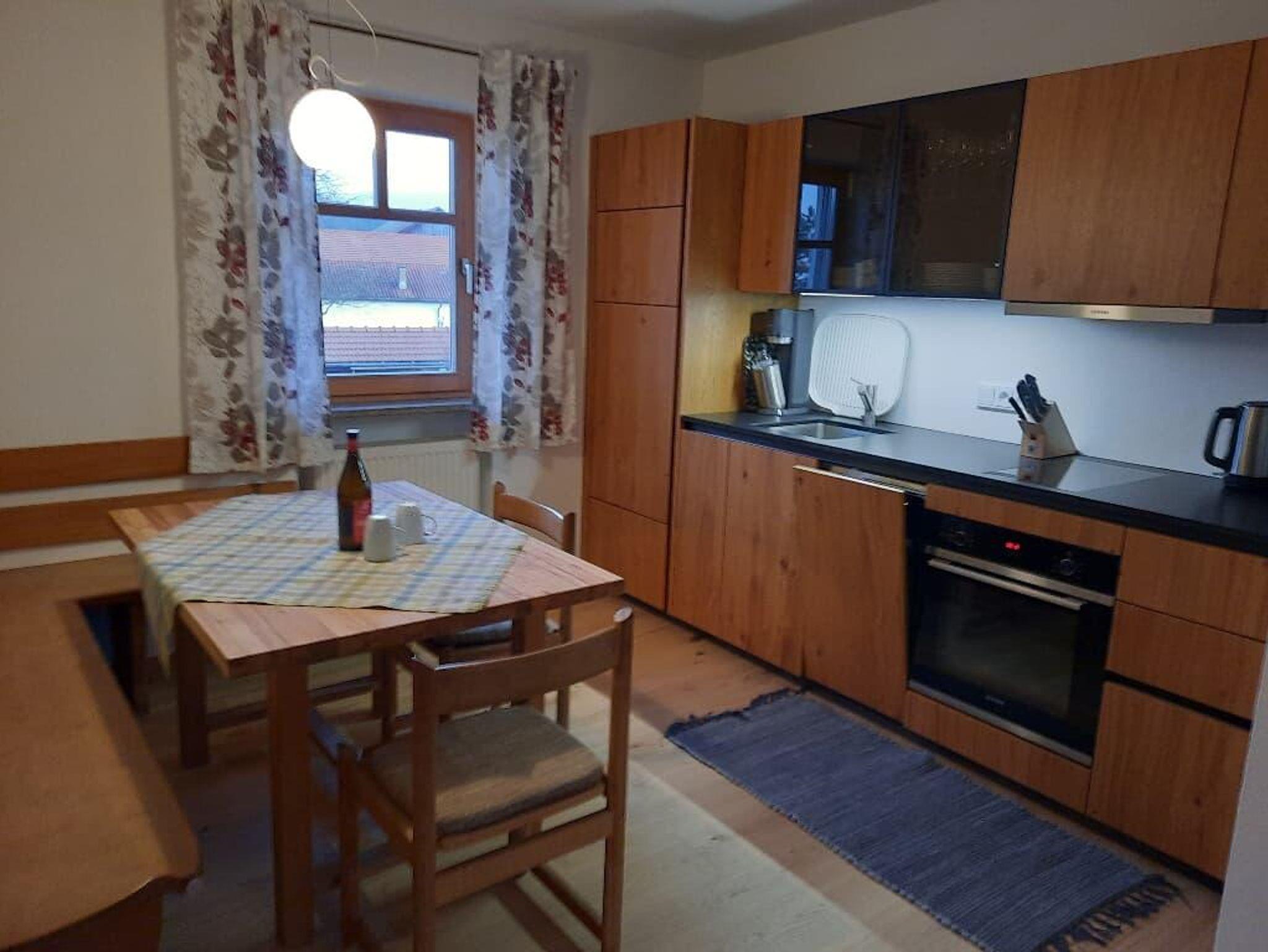Die neu renovierte 4* Wohnung Waldblick im 1.Geschoss hat 65 qm mit zwei getrennten Schafzimmer, Dusche und WC getrennt und einen großen Wohnraum mit Küche - Eckbank mit Tisch und zwei Stühle. Die Wohnung wurde mit Vollholzmöbel vom Schreiner ausgestattet. Die Küche verfügt über eine Spülmaschine, Toaster, Kaffeemaschine, Kühl-Gefrierkombi und Wasserkocher .Zusätzlich haben Sie eine Sitz- und Essmöglichkeit am Balkon. Gerne können Sie aber auch mal im Innenhof grillen und die Sitzgelegenheit im Innenhof nutzen. Eine Parkmöglichkeit haben Sie direkt vorm Haus. Mitgebrachte Fahrräder können Sie gerne direkt nebenan unterstellen. Die Kinder haben rund um den Hof viel Platz zum toben, zum Fussball spielen, im Sandkasten eine Burg zu bauen oder einfach den Tieren zu sehen. Die Schlafzimmer verfügen über zwei Doppelbetten 1x 200x200 cm und 1x 180x200 cm. In der Wohnung befinden sich zwei TV Geräte - einen im Wohnraum und einen im Schlafraum! Gerne können Sie gegen Gebühr die Waschmaschine bzw. den Trockner nutzen.