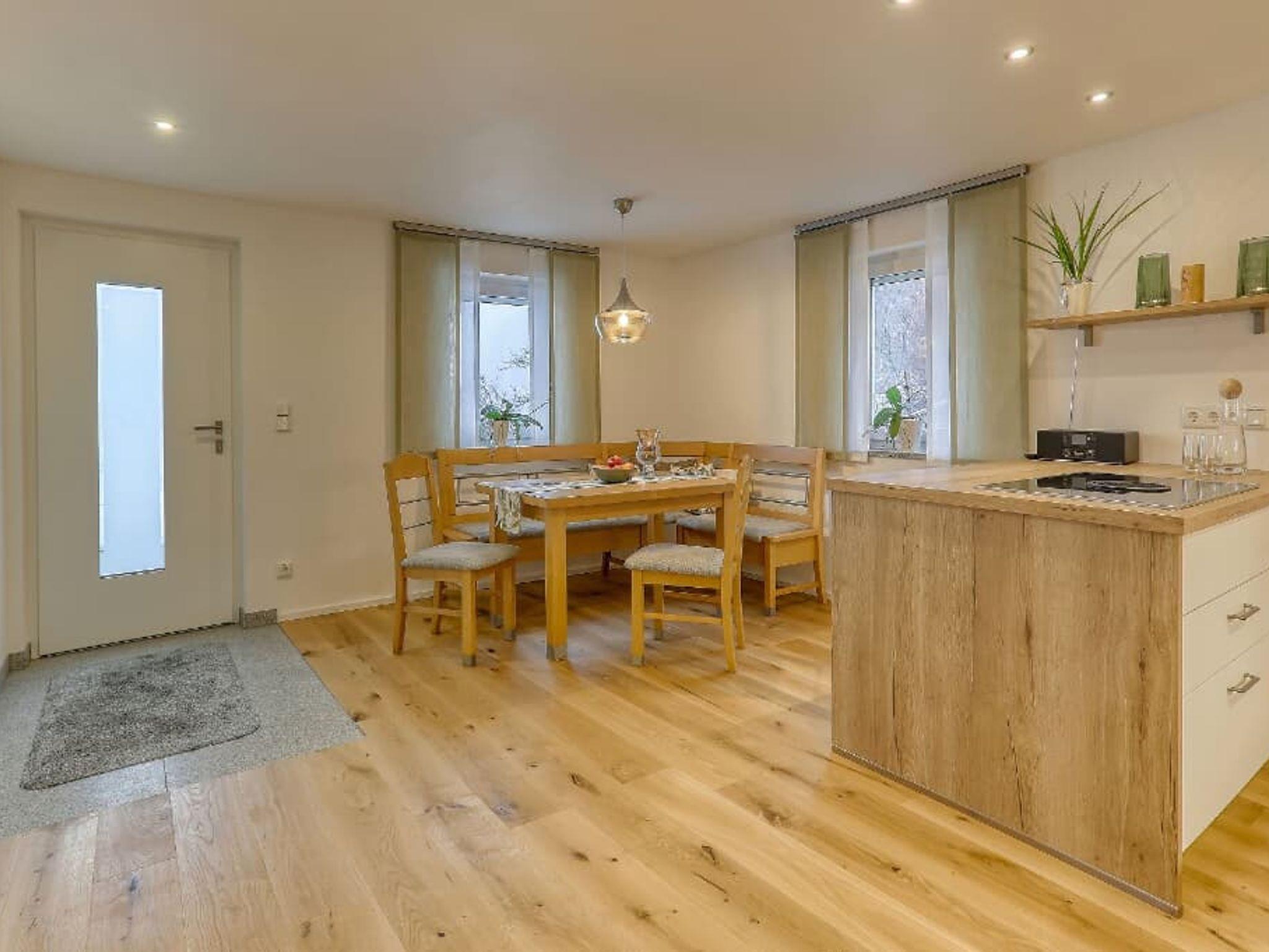 Die komplett neu und modern renovierte Ferienwohnung (Nichtraucherwohnung) im Erdgeschoss verfügt über ein Schlafzimmer mit Doppelbett, ein Wohnzimmer, ein Wohlfühlbadezimmer und eine Küche mit Essbereich. Die hochwertige Ausstattung, teils mit Massivholzmöbel und in ruhiger Lage laden zum Entspannen ein. Die Ferienwohnung mit einer Größe von 65qm verfügt über einen separaten Eingang mit großer Terrasse und direktem Zugang zum weitläufigen Garten. Alle Räume sind mit Fußbodenheizung und z.T. Eichenholzböden ausgestattet.Das Badezimmer verfügt über eine begehbare Regenschauerdusche sowie einen Kosmetikspiegel und einen Fön. Auch Handtücher stehen zur Verfügung.Die großzügige Küche mit Essbereich ist mit Geschirrspüler, Kühlschrank mit Gefrierfach, Kochinsel mit E-Herd, Cerankochfeld und Bora-Dunstabzug, Kaffeemaschine mit integrierter Senseo-Brüheinheit, Toaster, Wasserkocher sowie Gläser, Kaffee- und Speiseservice, Besteck und vielen weiteren Kochutensilien ausgestattet. Das Wohnzimmer mit großer Couch und Flachbildschirm bietet einen direkten Zugang zur Terrasse sowie zum steht ein kostenloser Außenstellplatz zur Verfügung.Anreise von 14 Uhr bis 22 Uhr, Abreise bis 10 Uhr. Individuelle Absprachen sind jedoch möglich. Haustiere sind nicht erlaubt. Kurbeitrag der Gemeinde beträgt ab 16 Jahren 1,50 Euro pro Person und Tag. Im Preis sind alle Nebenkosten wie Bettwäsche, Handtücher, Strom, Wasser und Endreinigung enthalten.Stockwerk Etage: Erdgeschoss Ausstattung: 1 Schlafraum mit Doppelbett (Bettwäsche vorhanden) 1 Wohnzimmer mit Couch und Flachbildschirm, Satelliten TV, WLAN im Zimmer, Terrasse am Zimmer, Küche mit Essbereich, Kaffeemaschine, Kühlschrank, Toaster, DAB-Radio, Essecke (Küchenwäsche vorhanden) Sanitär: Bad mit WC und begehbarer Regenschauerdusche Lage: Gartenseite